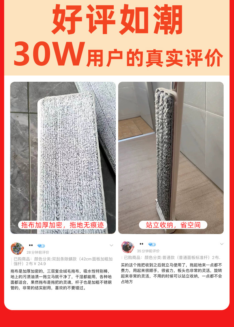 [Плоская швабра 36 см] + усиленный стержень + 2 куска ткани