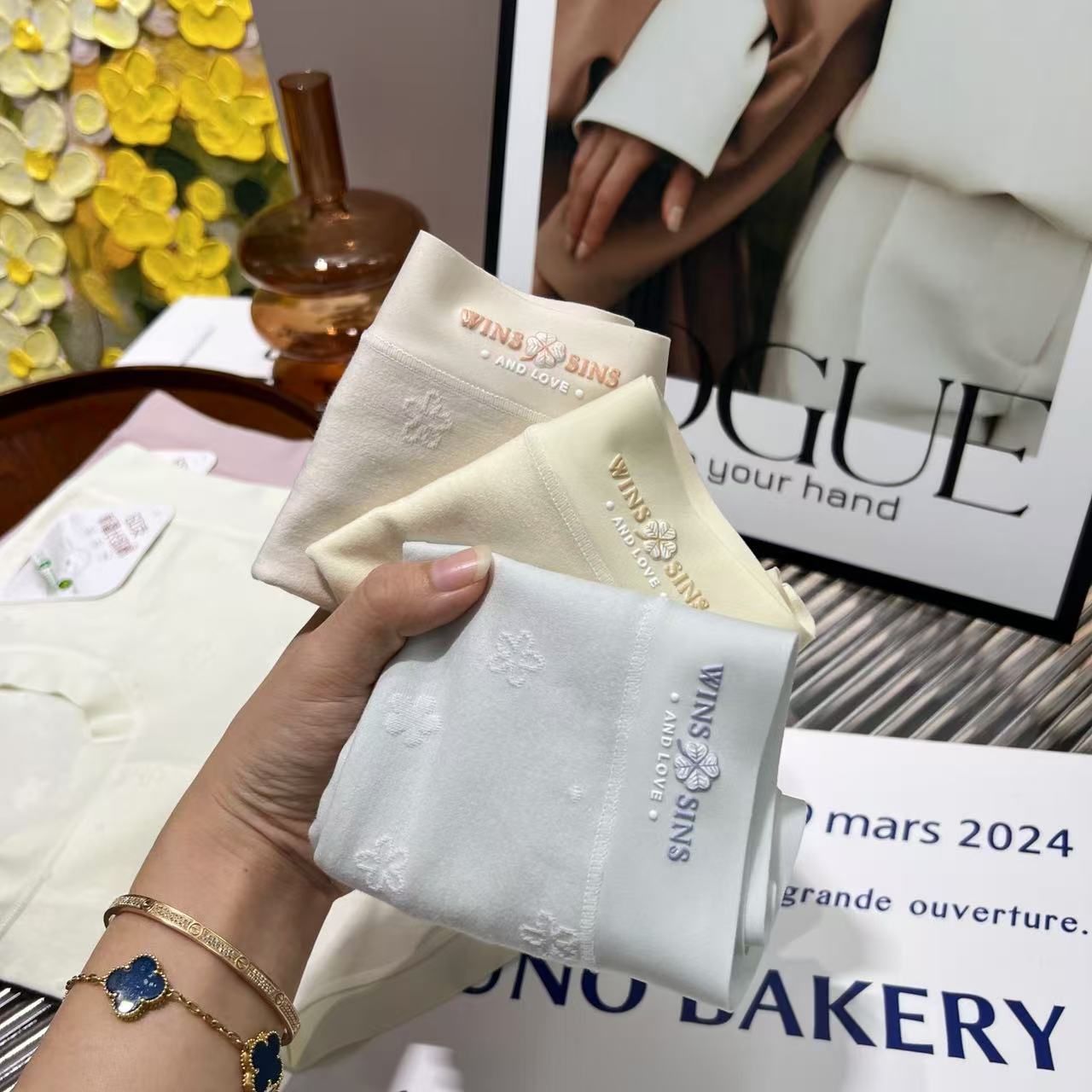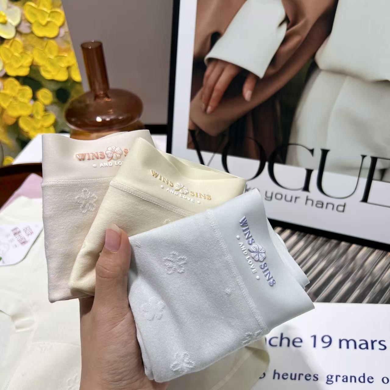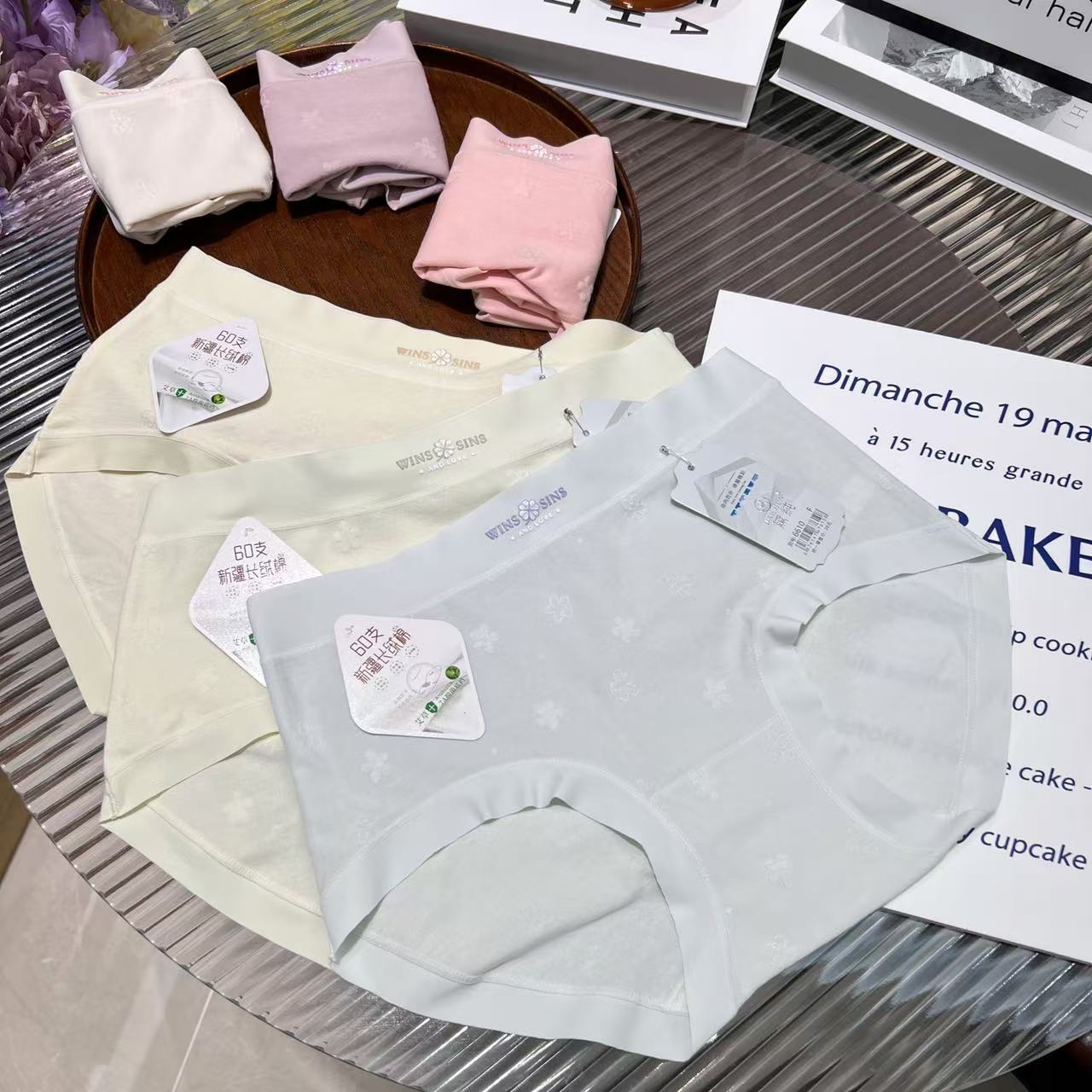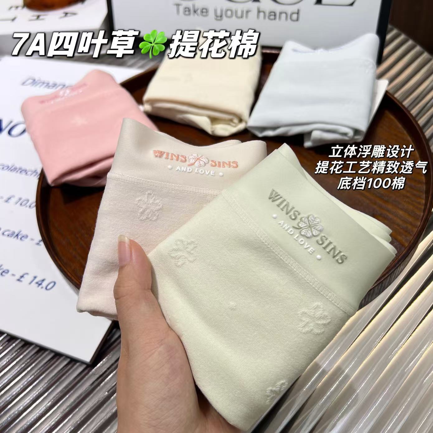 Женское нижнее белье из чистого хлопка с четырьмя листами клевера, средняя талия, 60 нитей, длинноволокнистый хлопок, стерео жаккард, дышащие антибактериальные трусы 7А