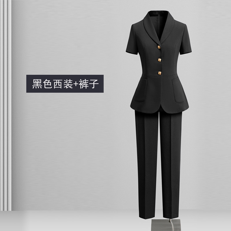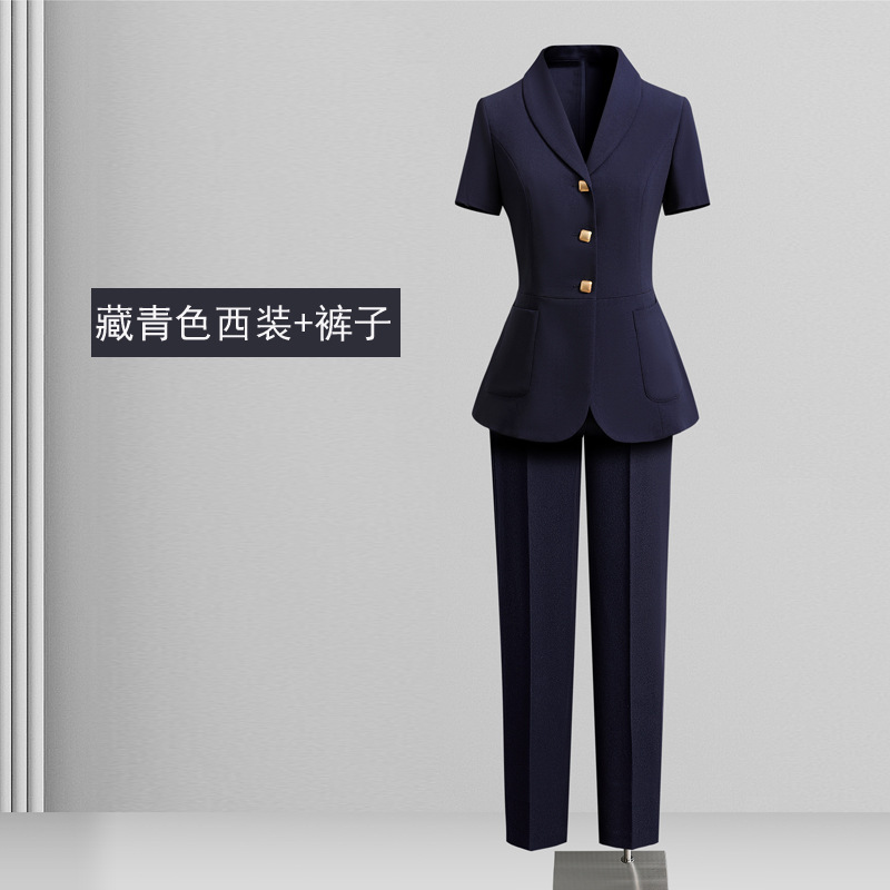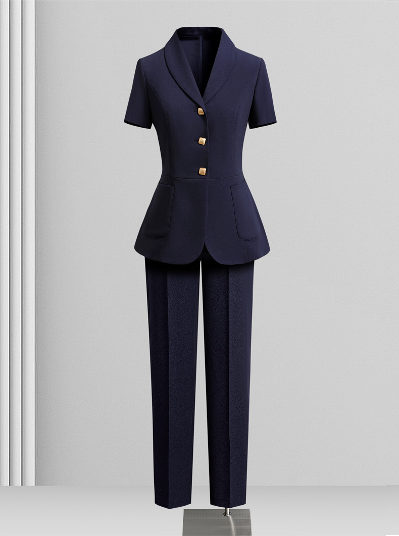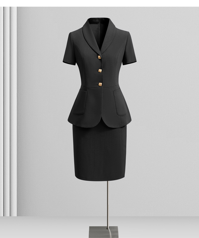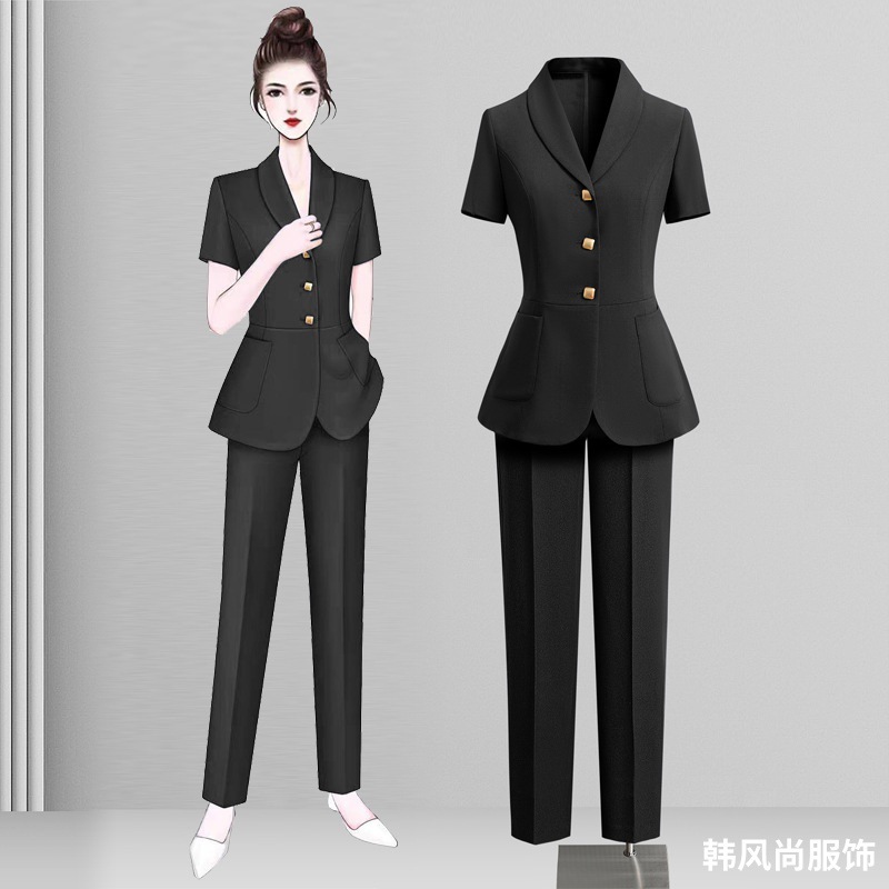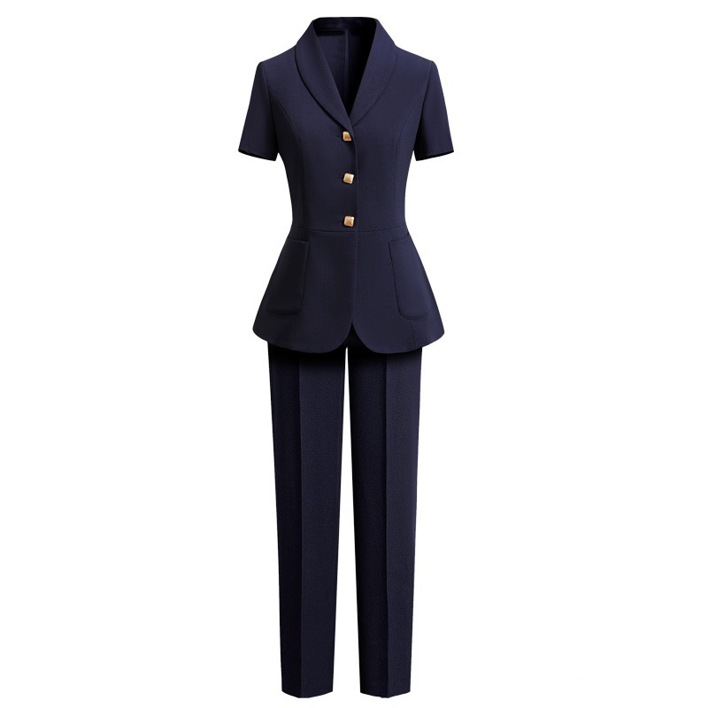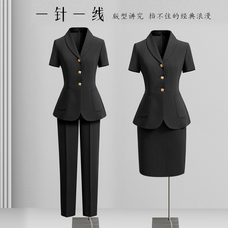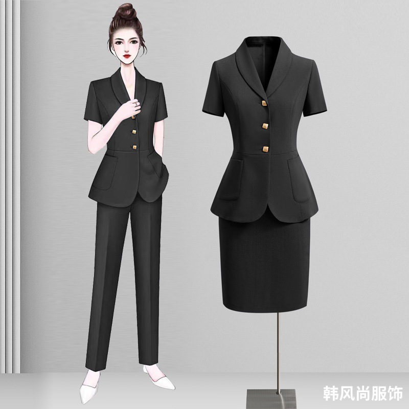 Черный костюм с короткими рукавами; Черный с короткими рукавами (костюм + юбка); Черный с короткими рукавами (костюм + брюки); Костюм темно-синего цвета с короткими рукавами; Темно-синий с короткими рукавами (костюм + юбка); Темно-синий с короткими рукавами (костюм + брюки)