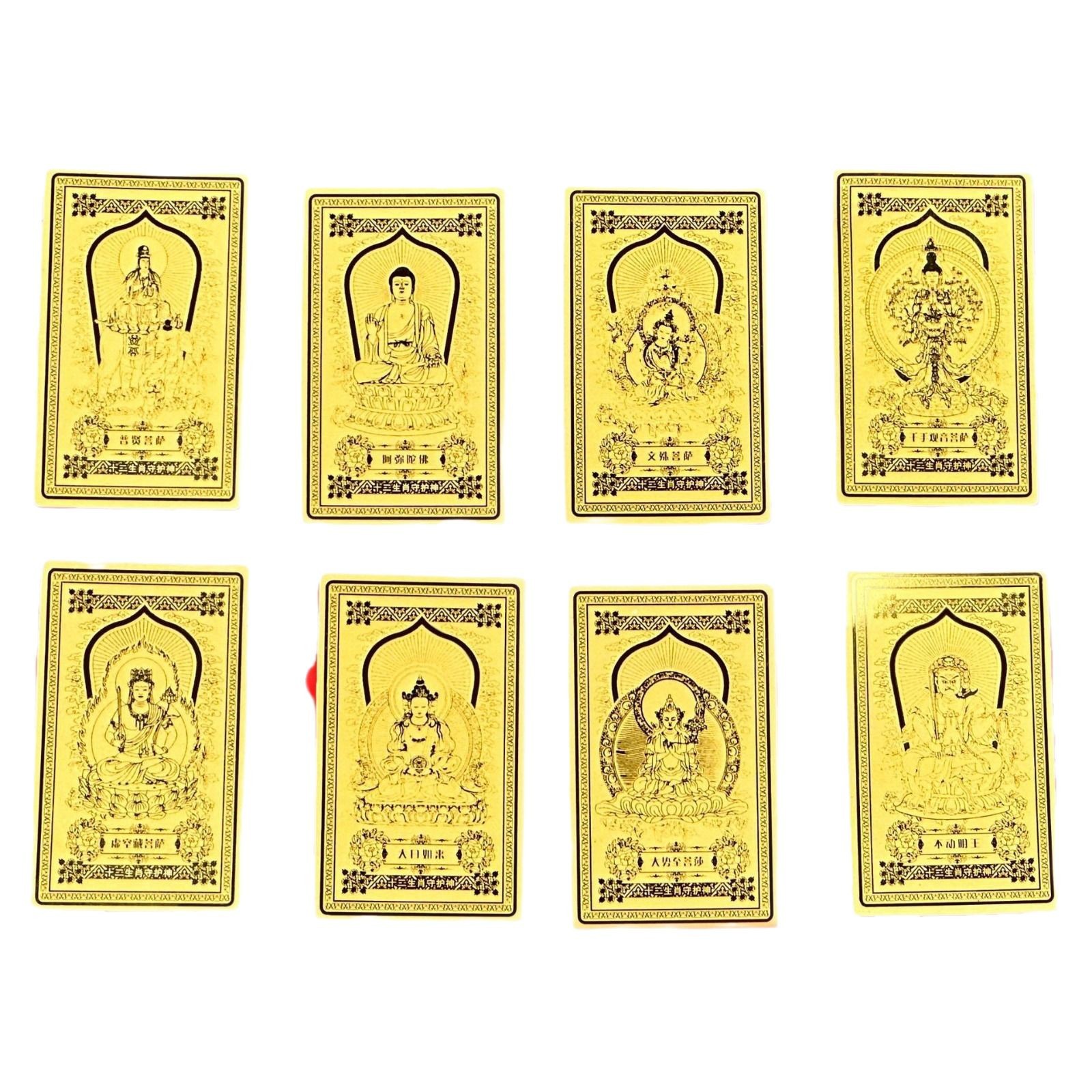 Бодхисаттва Гуаньинь Тысячи Рук [Крыса]; Бодхисаттва Пустоты [Ниу Тигр]; Манжушри Бодхисаттва [Кролик]; Самантабхадра Бодхисаттва [Дракон-Змея]; Махастамапрапта Бодхисаттва [Конь]; Бодхисаттва Великого Солнца Татхагата [Овца и обезьяна]; Фудо Мёо Бодхисаттва [Курица]; Амитабха Бодхисаттва [Свинья и собака]