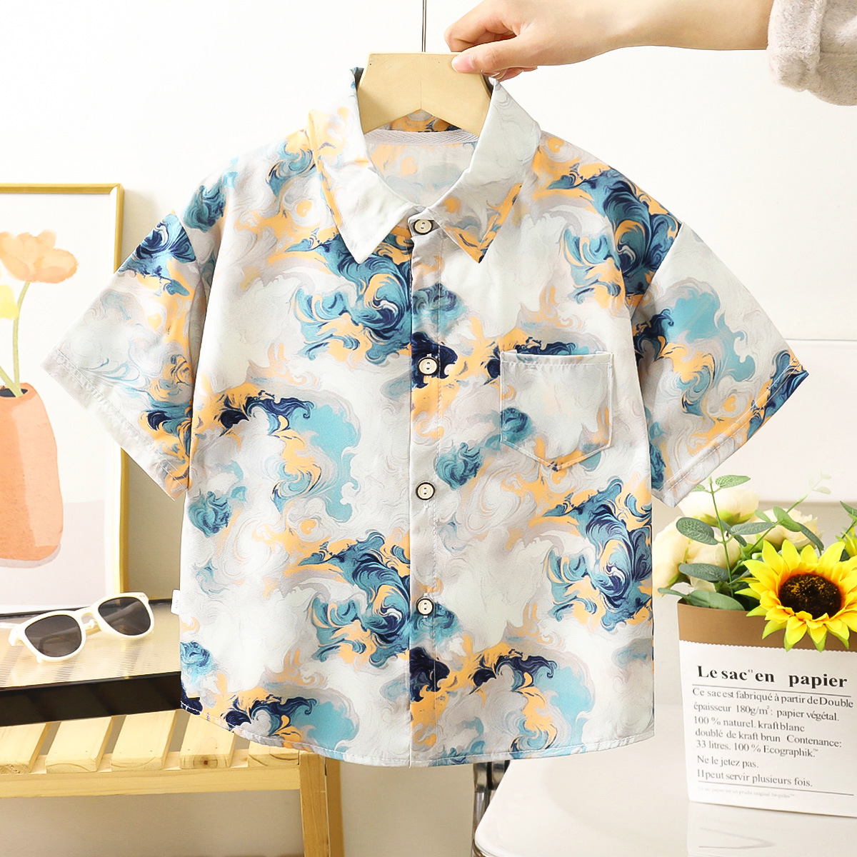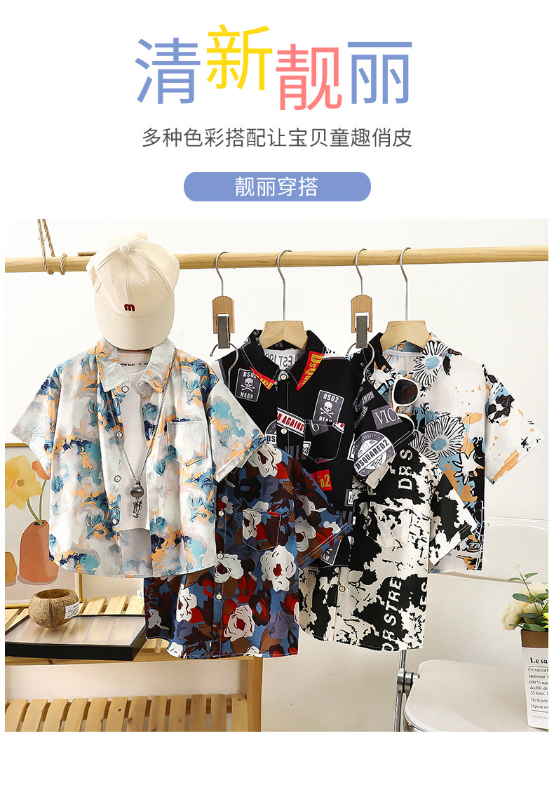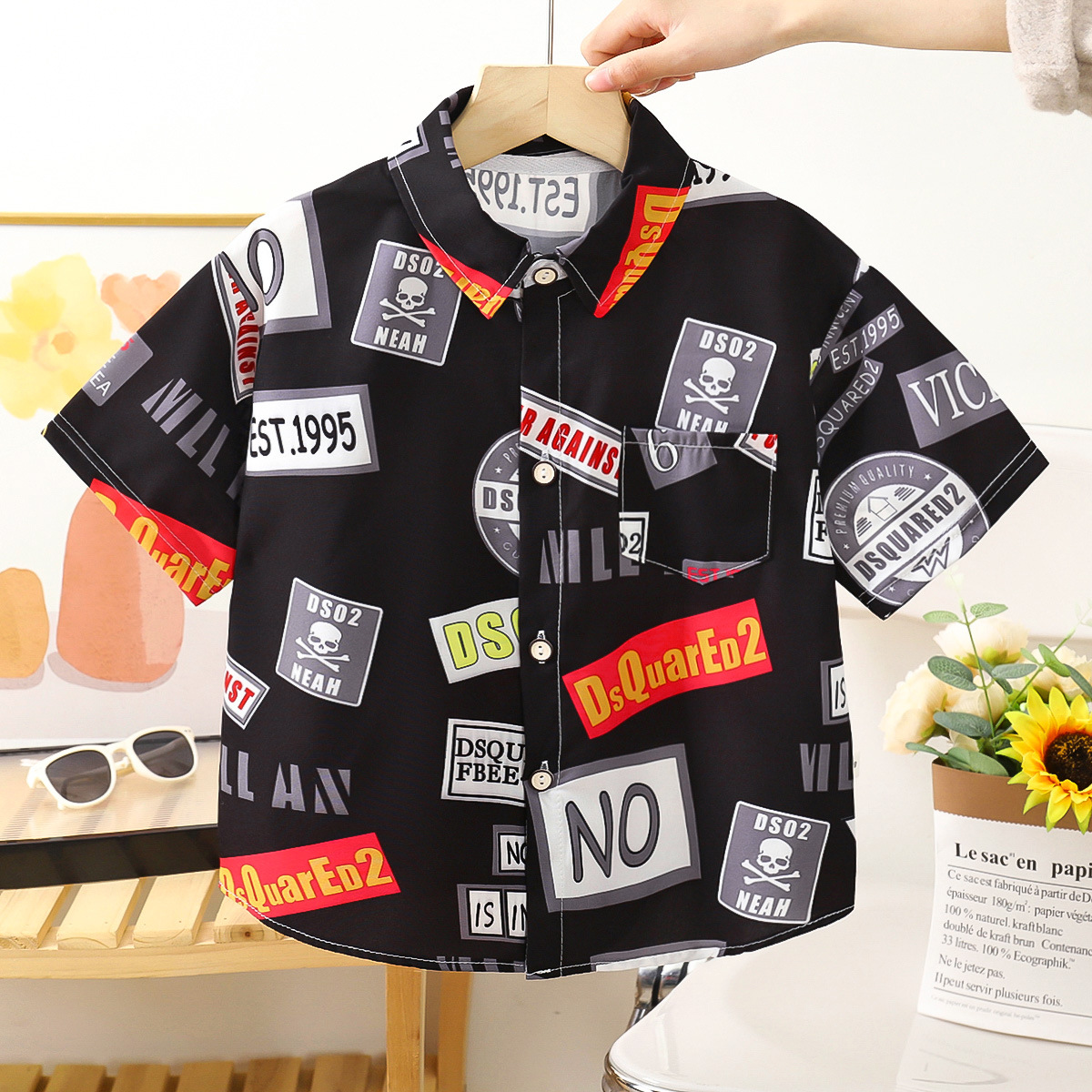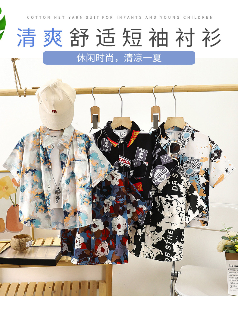 Детская рубашка с короткими рукавами летняя корейская рубашка для мальчиков топ детское пальто детская одежда Гонконг стиль повседневная тенденция оптом