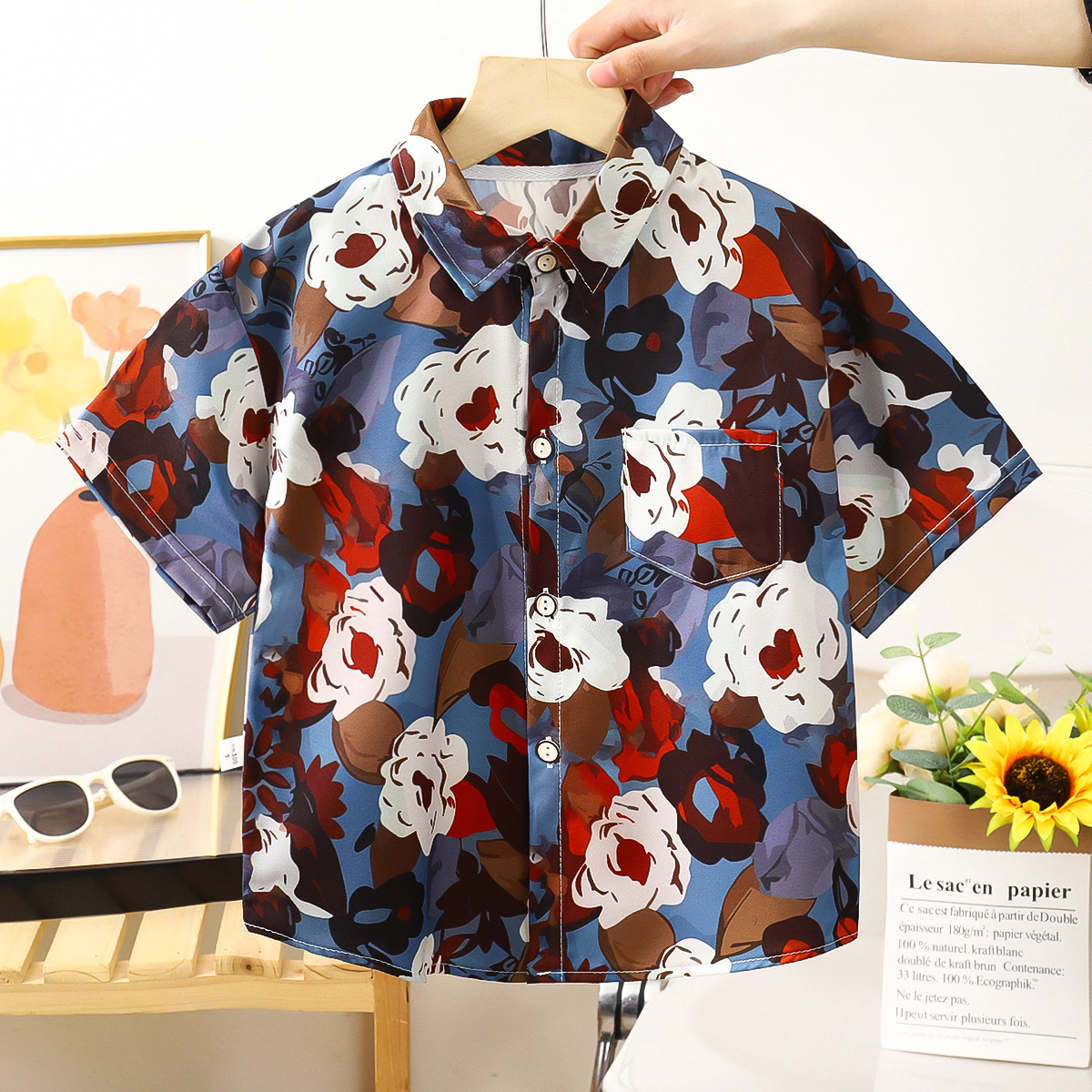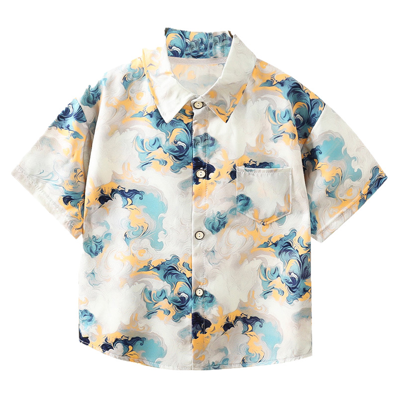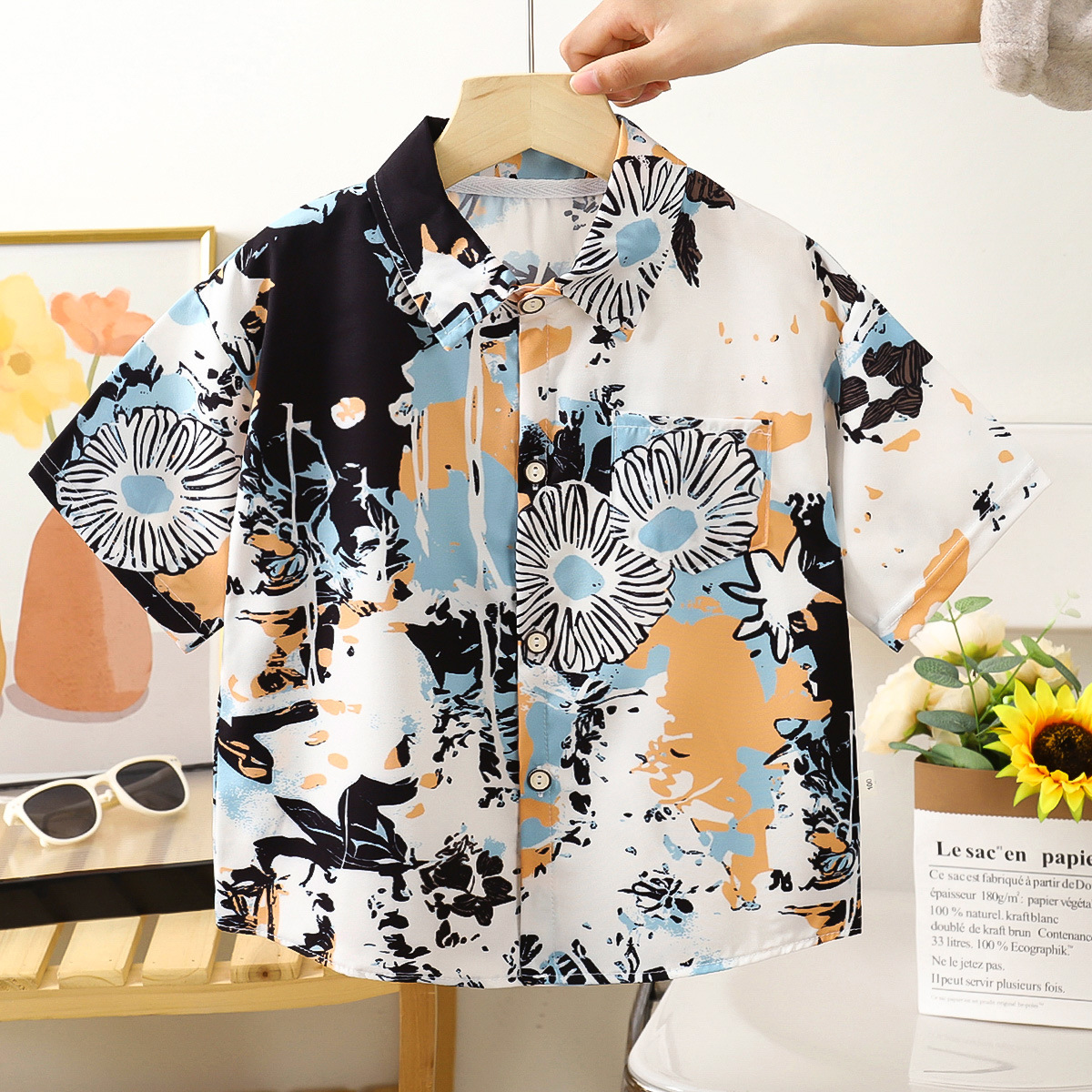 Детская рубашка с короткими рукавами летняя корейская рубашка для мальчиков топ детское пальто детская одежда Гонконг стиль повседневная тенденция оптом