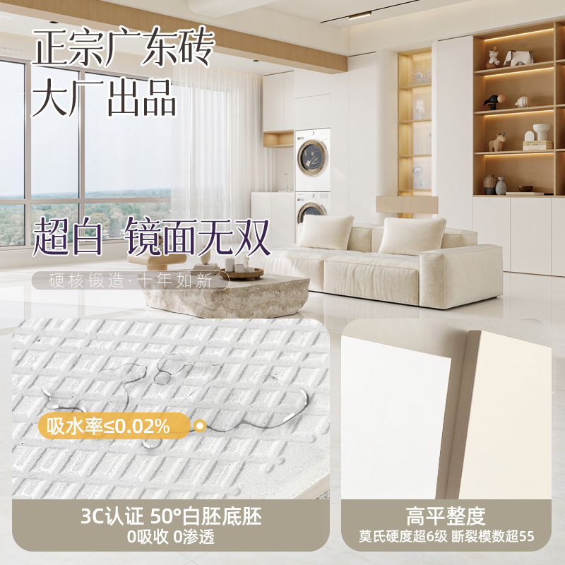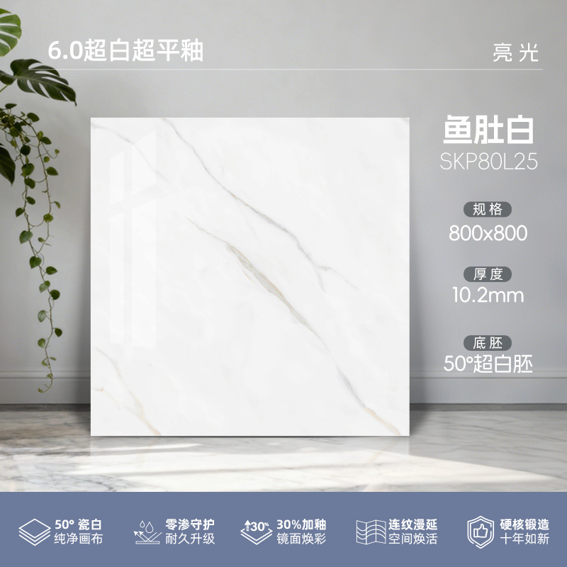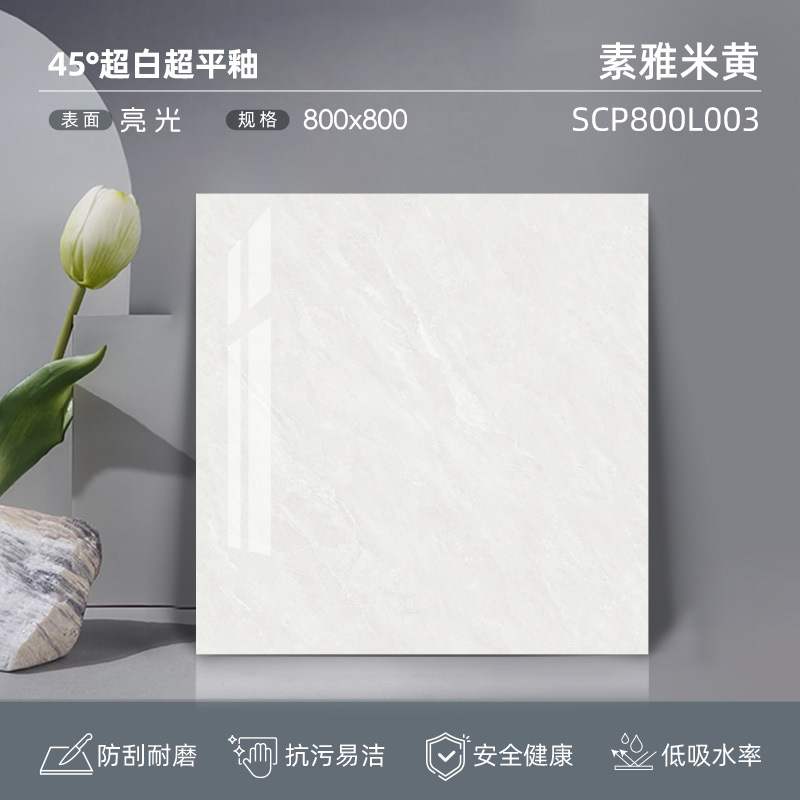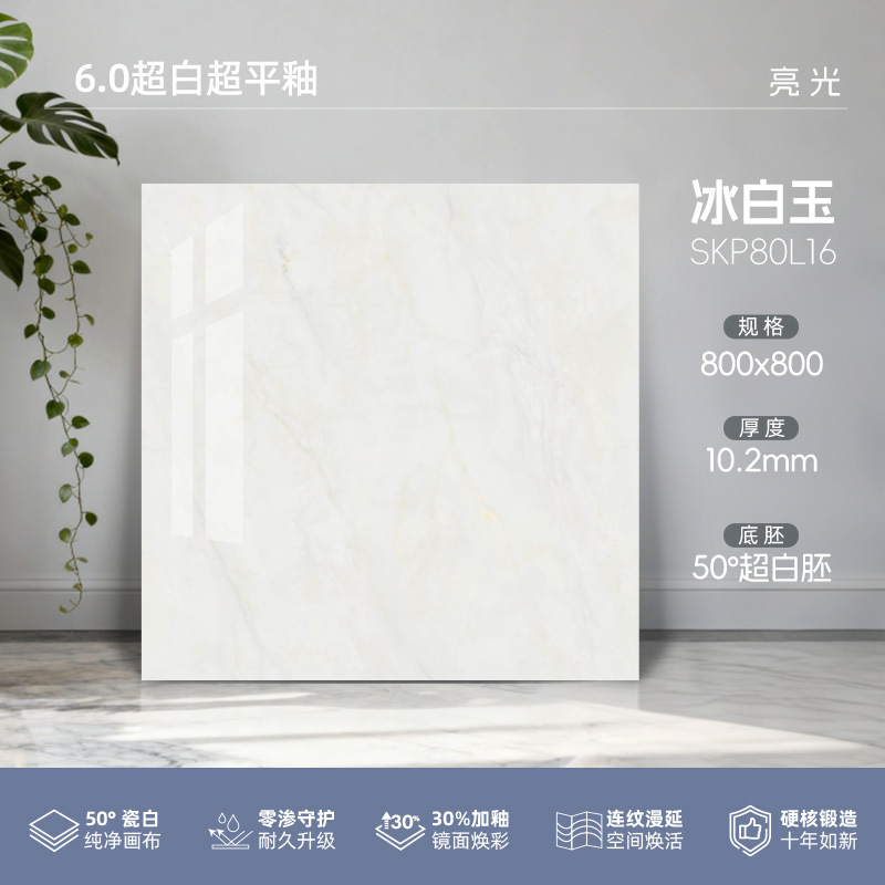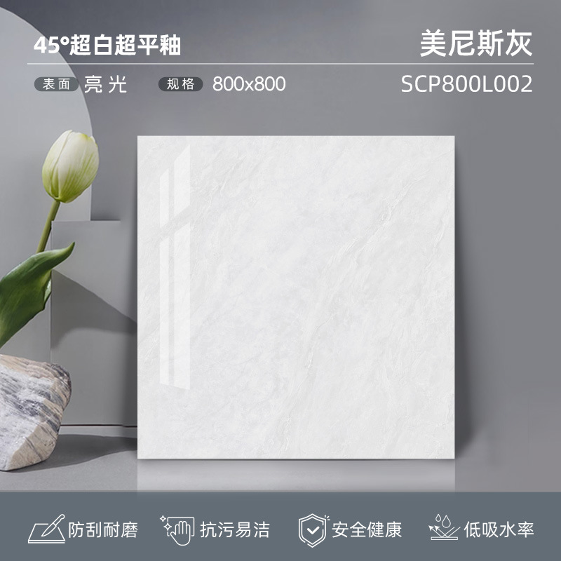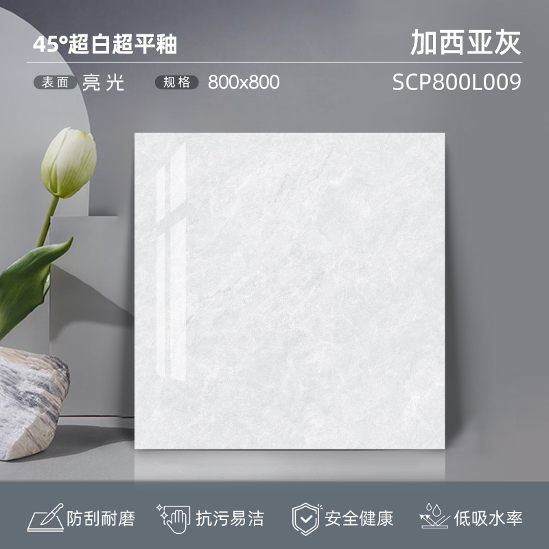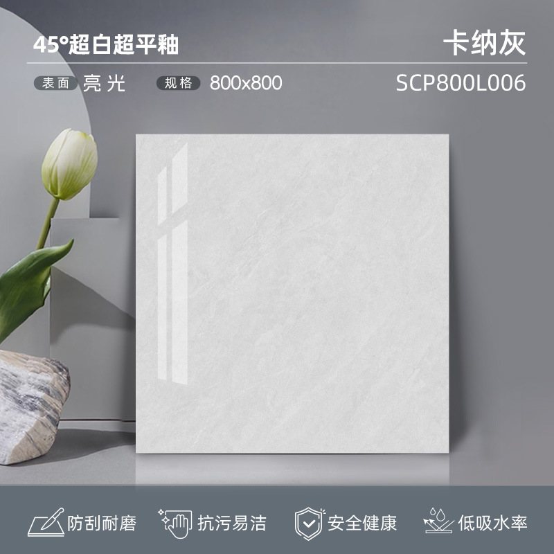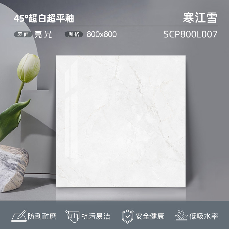 Керамическая глянцевая напольная плитка Saint Carlo Foshan 800x800, ультрабелая, без рисунка, ультраплоская, глазурованная, для гостиной, нескользящая.
