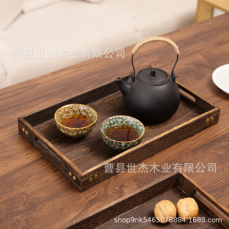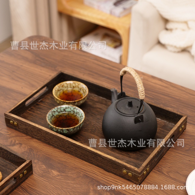 Деревянный поднос для чая в ретро-стиле, поднос для хранения для домашней чайной церемонии кунг-фу, настольный поднос для хранения чашек для воды, деревянный поднос