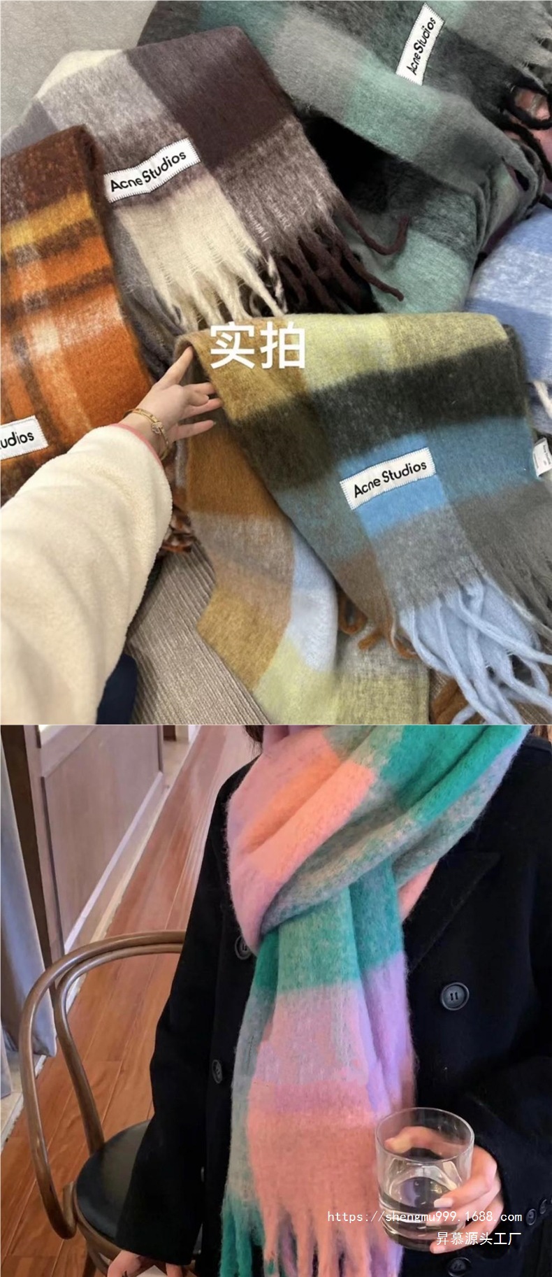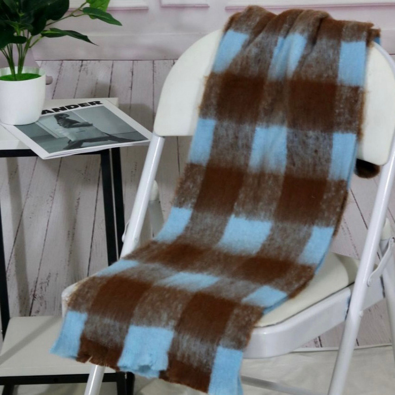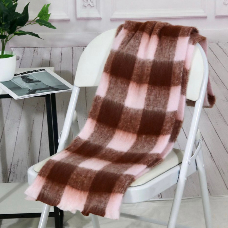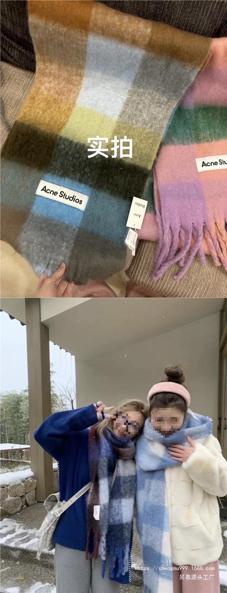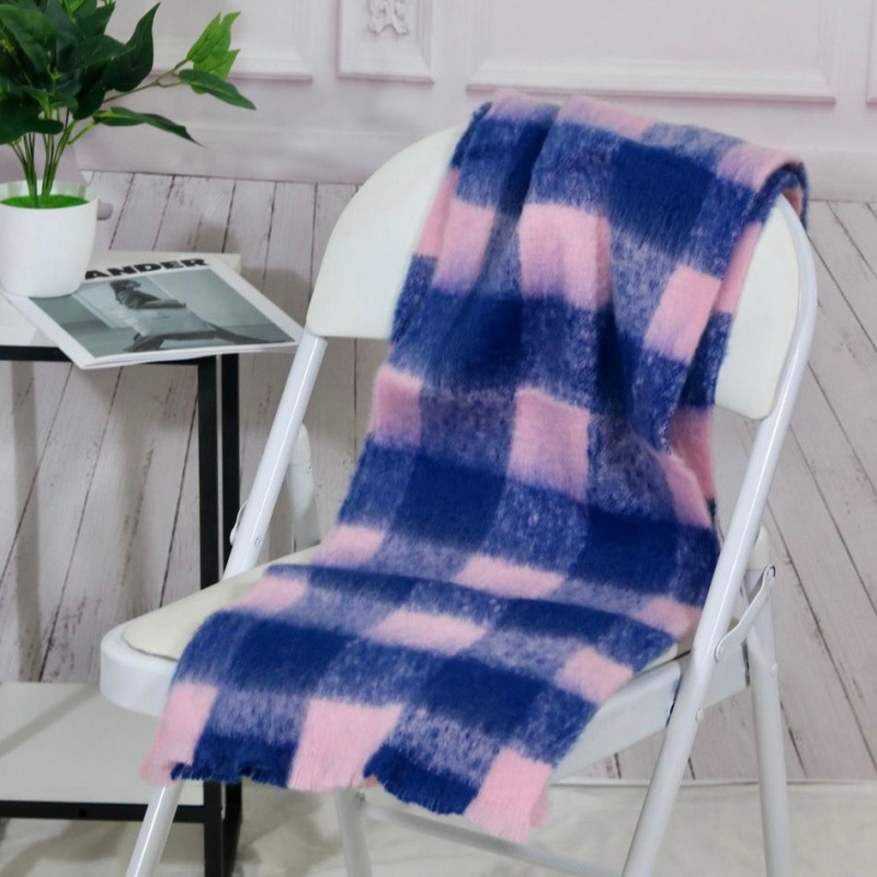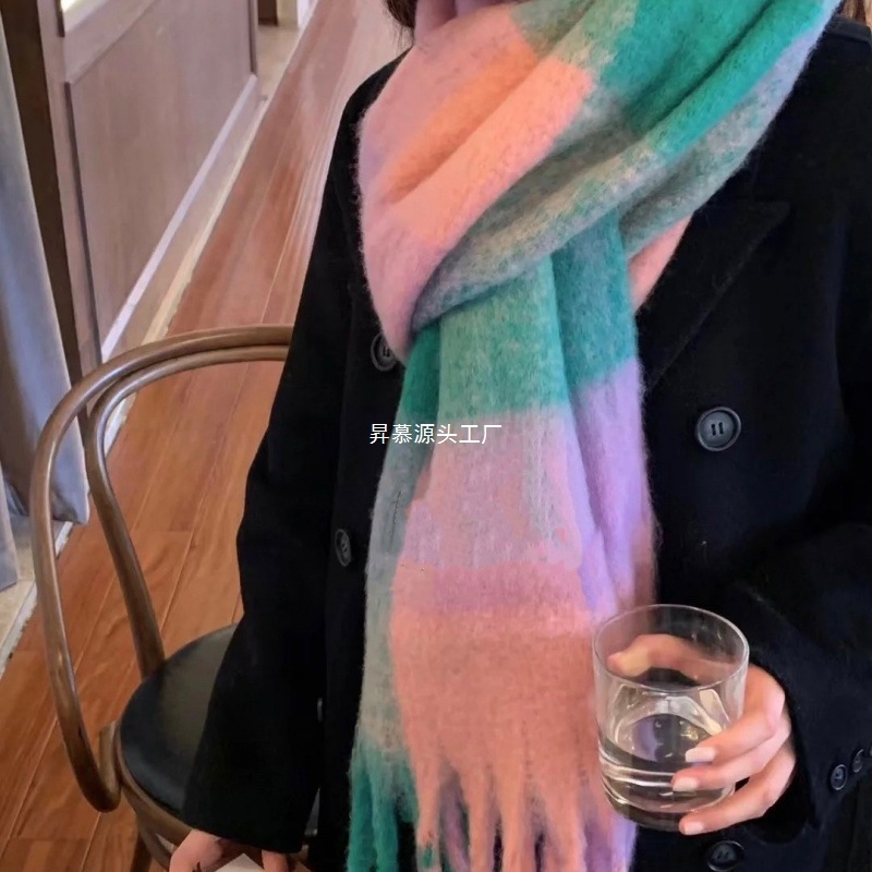 Новый осенне-зимний утолщенный теплый шарф в радужную клетку из европейской и американской пряжи с толстыми кисточками и цветными блоками.