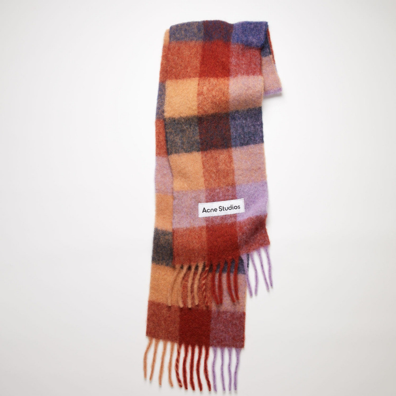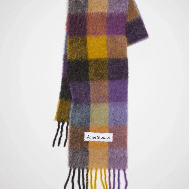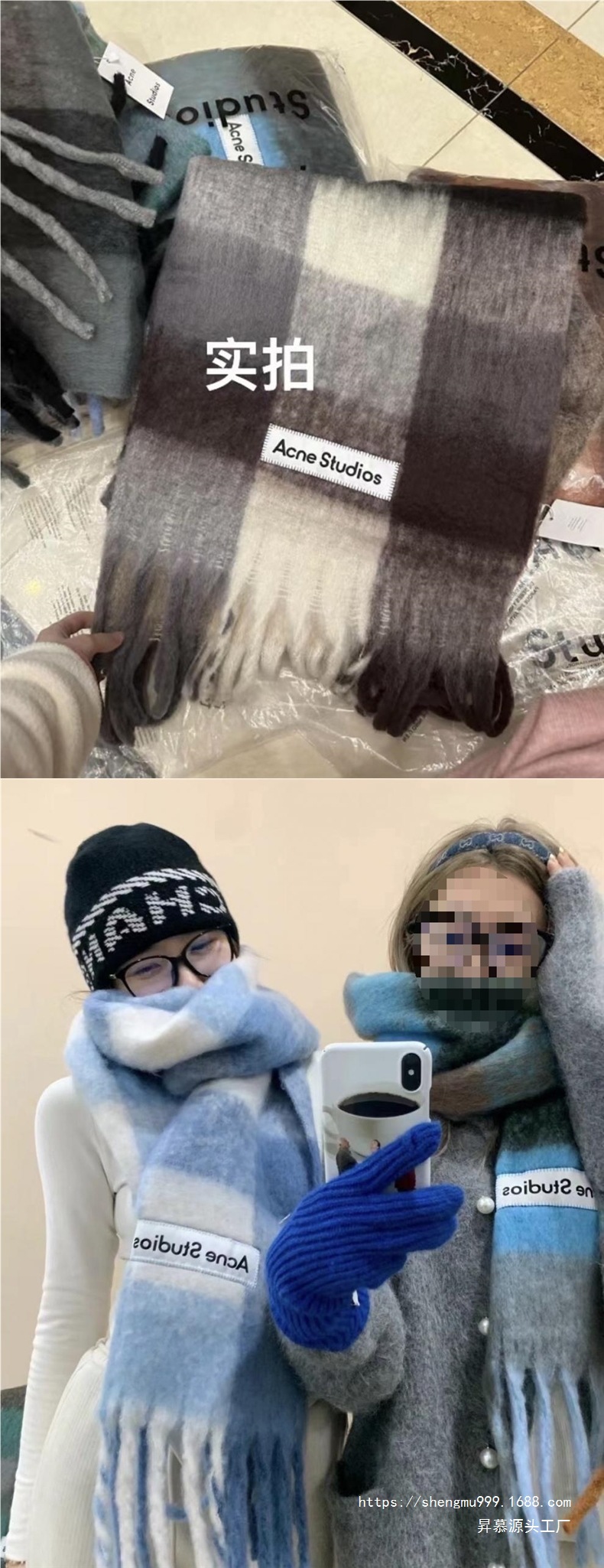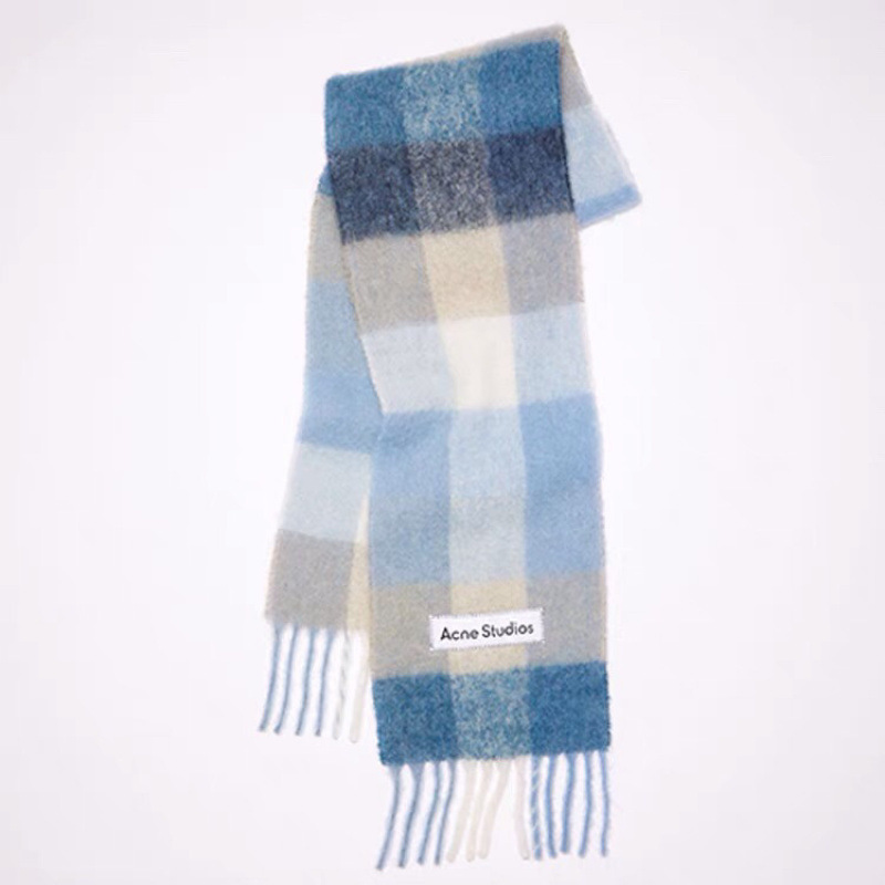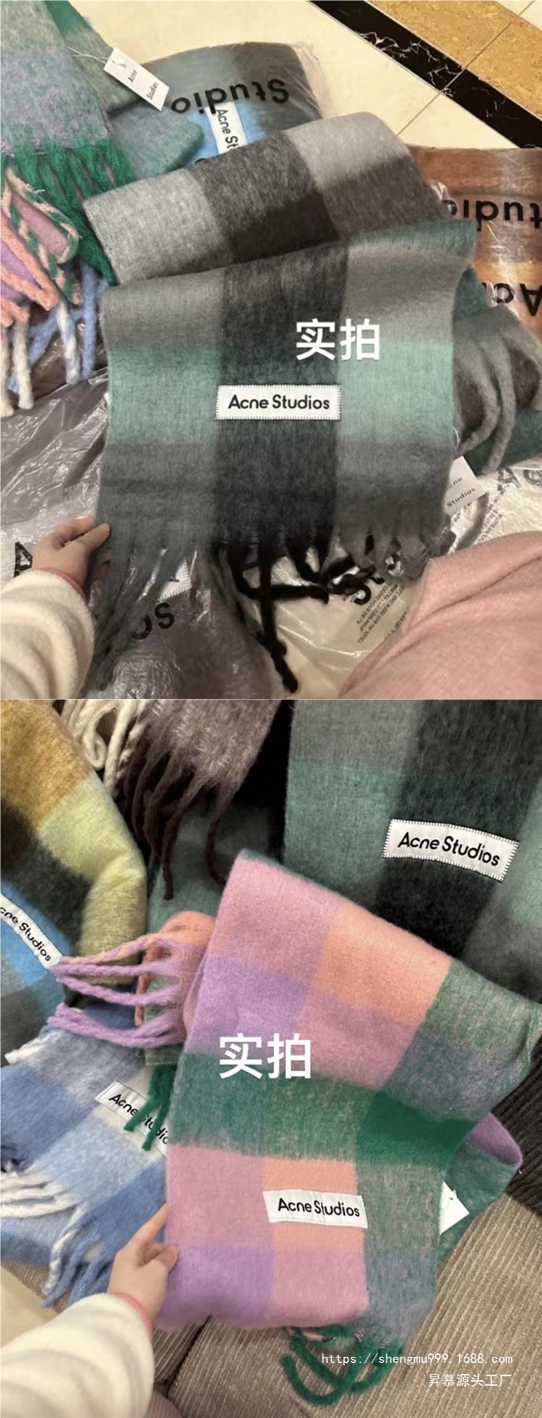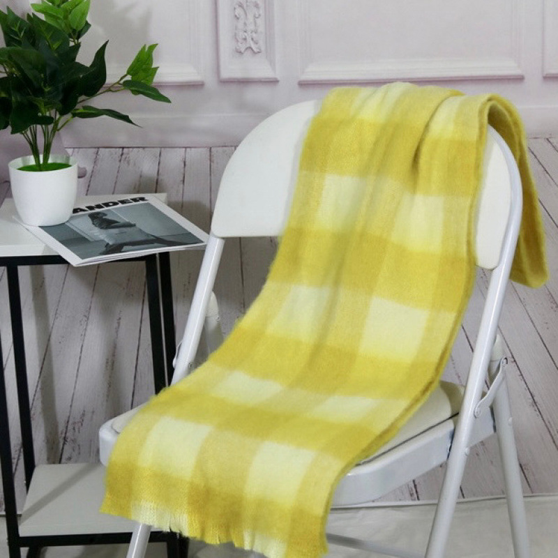 Новый осенне-зимний утолщенный теплый шарф в радужную клетку из европейской и американской пряжи с толстыми кисточками и цветными блоками.