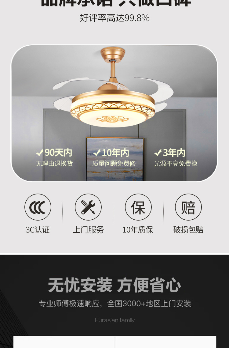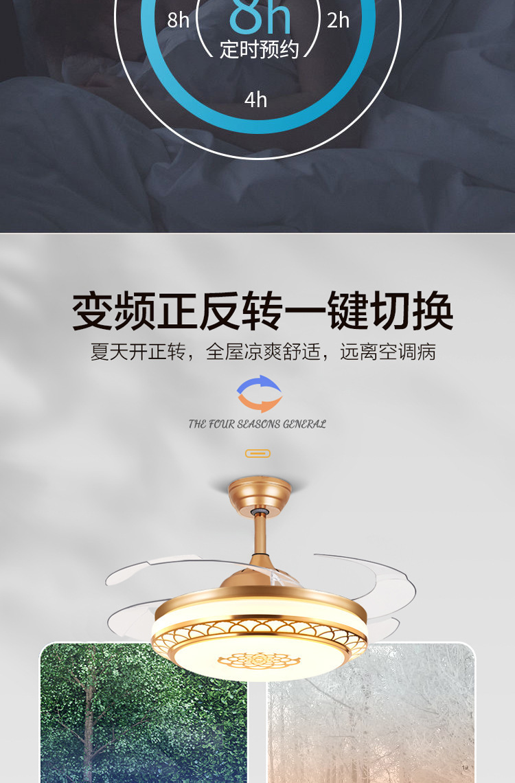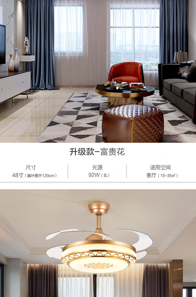 2024 новый стиль гостиная потолочный вентилятор большой ветер энергосберегающий невидимый дом спальня столовая вентилятор вентилятор встроенные электрические люстры