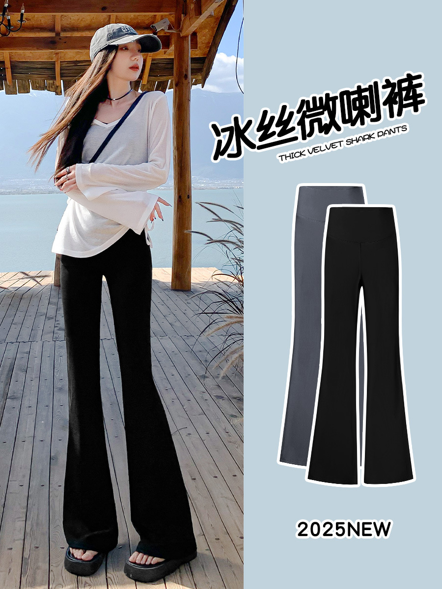 Wei La акулы брюки женские с высокой талией и тонкими и подковыми брюками тонкие леггинсы весенние и осенние расклешенные брюки