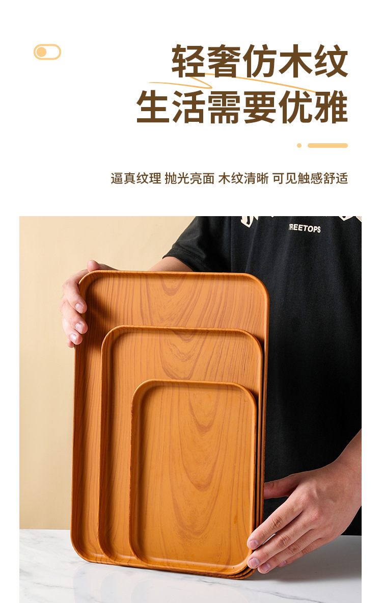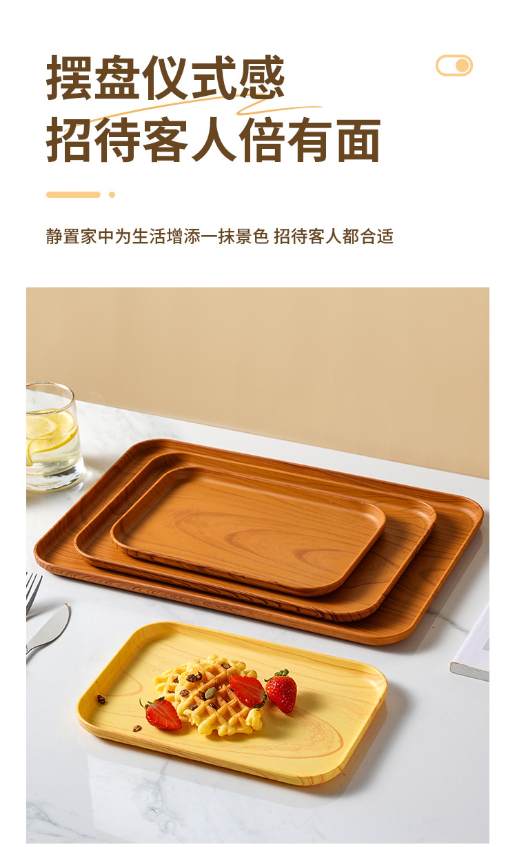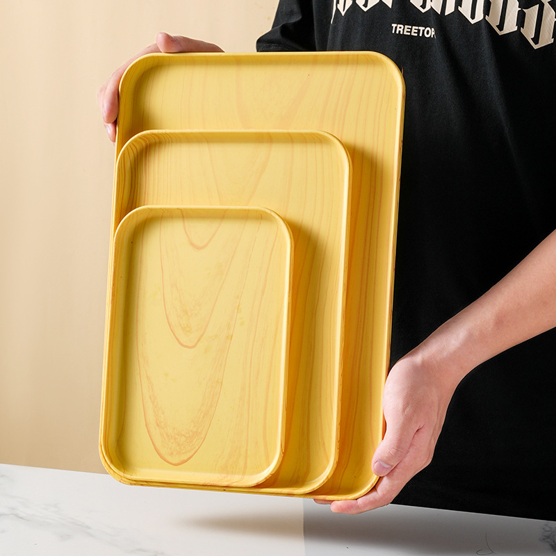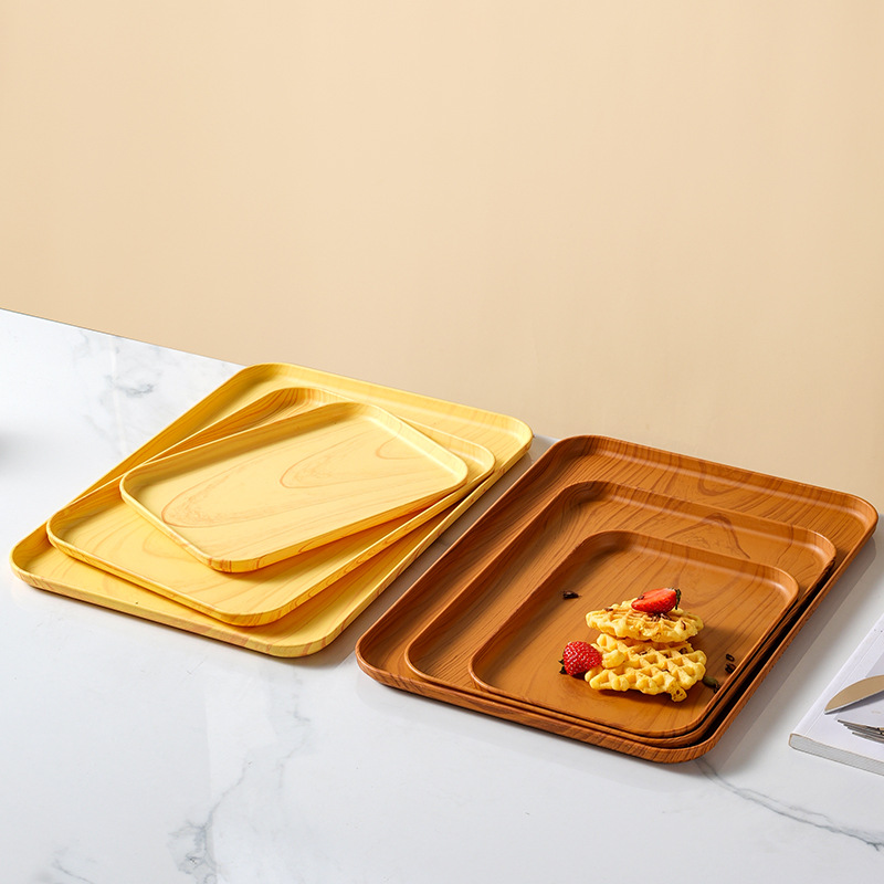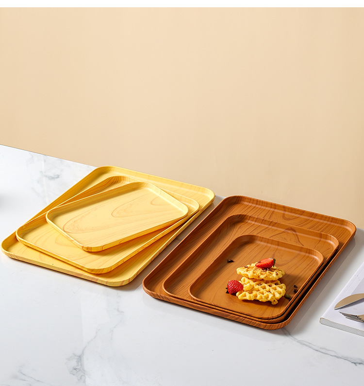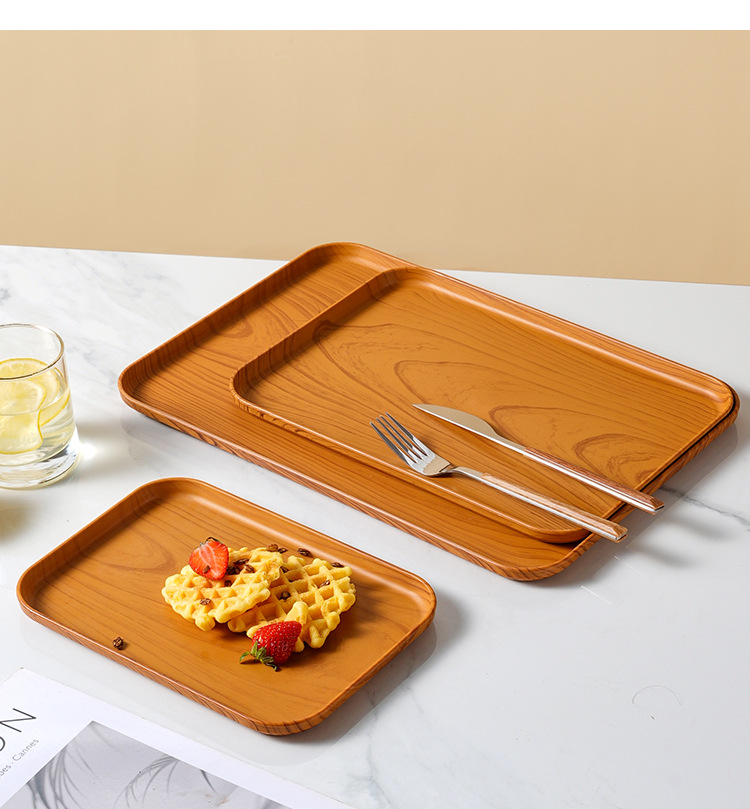 Пластиковый поднос с имитацией древесины, прямоугольный поднос для чая, обеденный поднос, бытовой поднос для хранения чашек с водой, деревянный поднос для кафе, торта