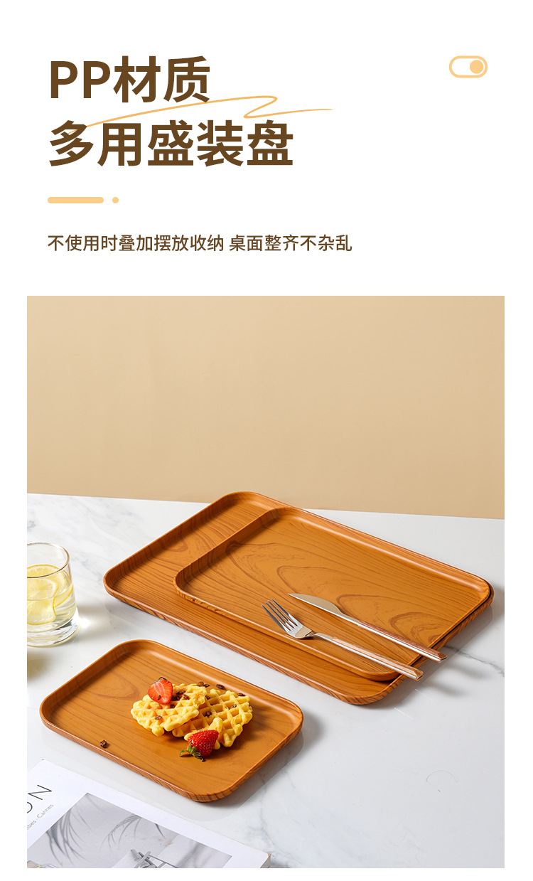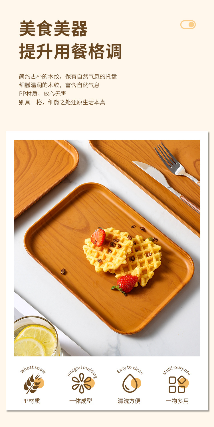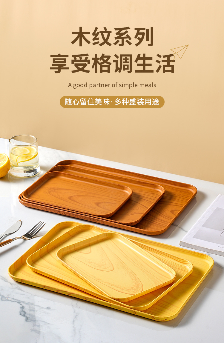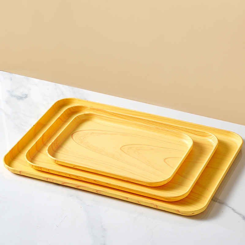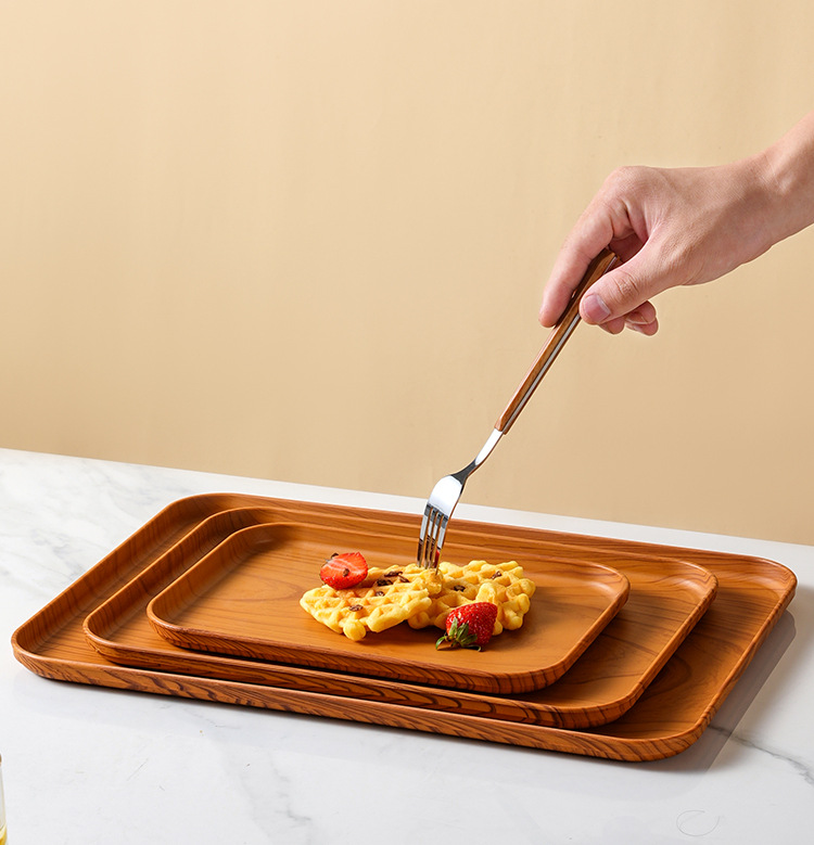 Пластиковый поднос с имитацией древесины, прямоугольный поднос для чая, обеденный поднос, бытовой поднос для хранения чашек с водой, деревянный поднос для кафе, торта