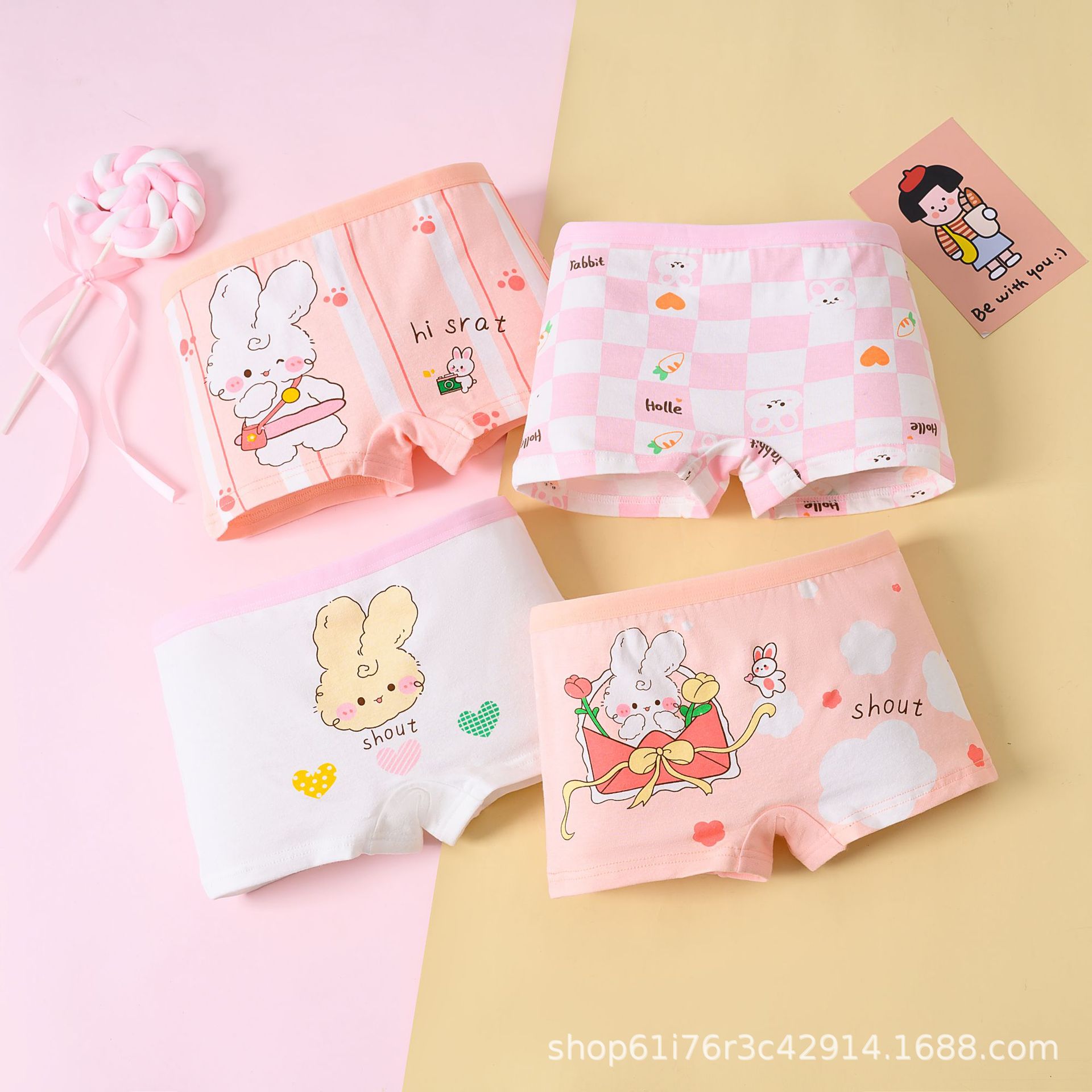 Мультяшный кролик плоский угол для девочек трусики для девочек нижнее белье для девочек