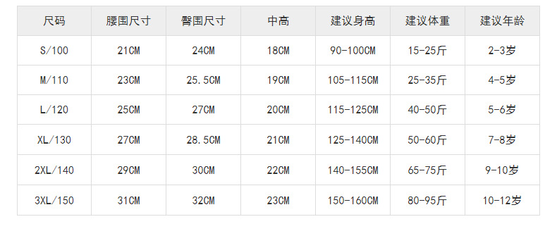 С/100【 7.5-12.5kg 】; М/110【 12.5-17.5kg 】; Л/120【 20-25kg 】; XL/130【 25-30kg 】