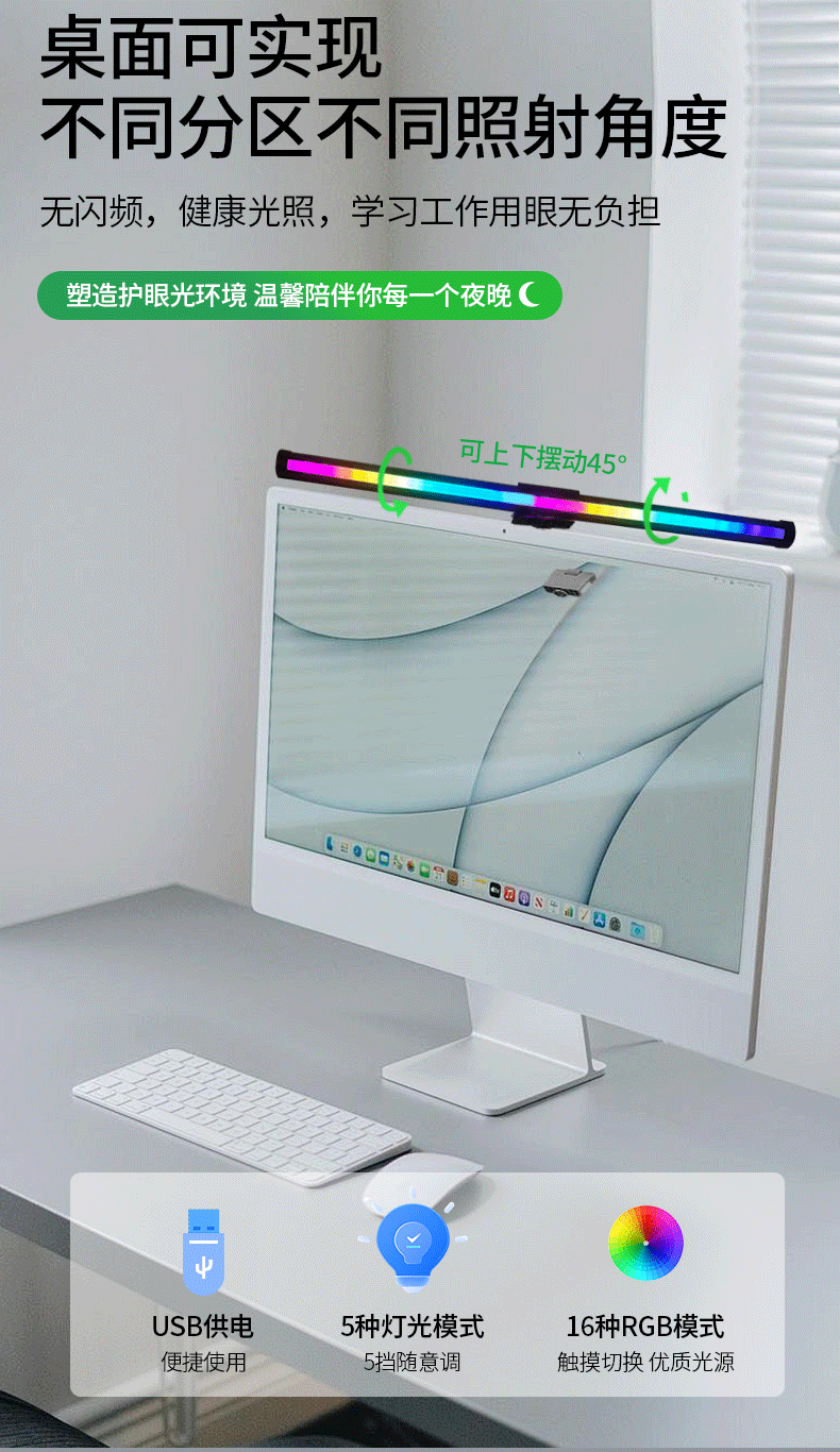 Настольная лампа для чтения (учеба, защита глаз) Экран лампы для защиты глаз Монитор окружающего света Экран компьютера окружающий свет Световая полоса Полоса окружающего света