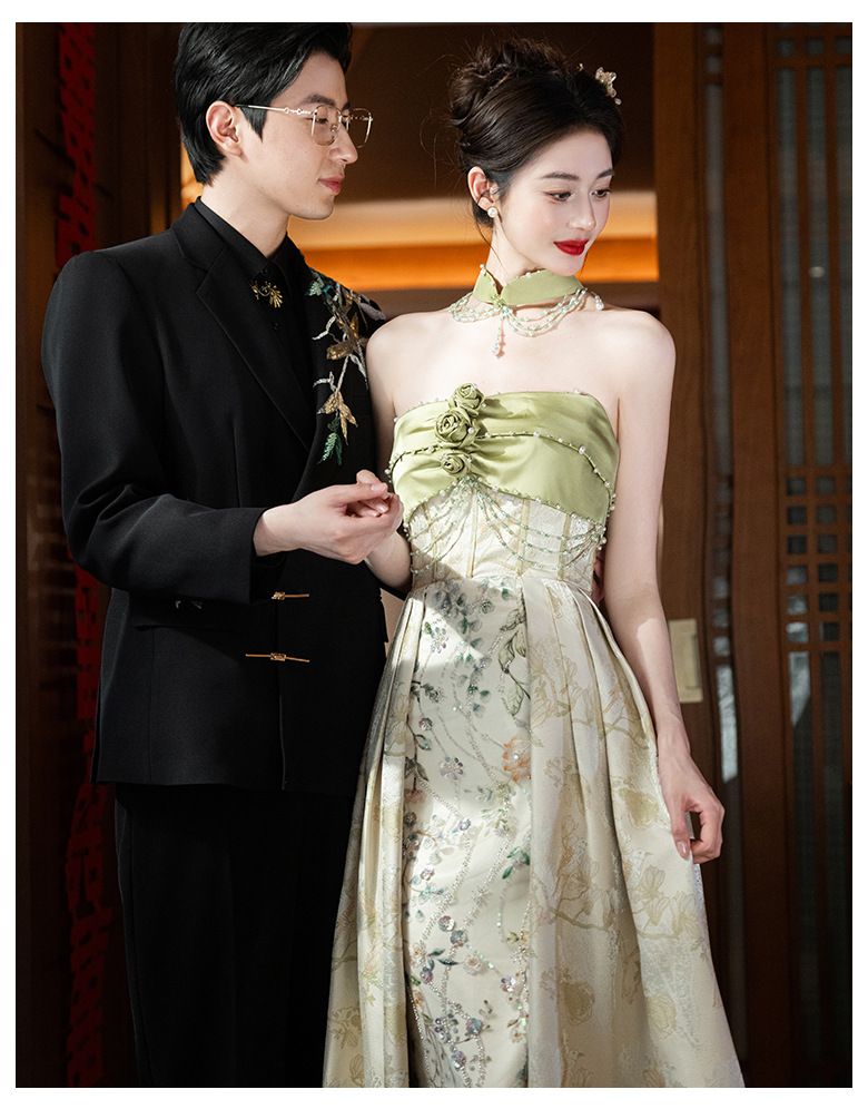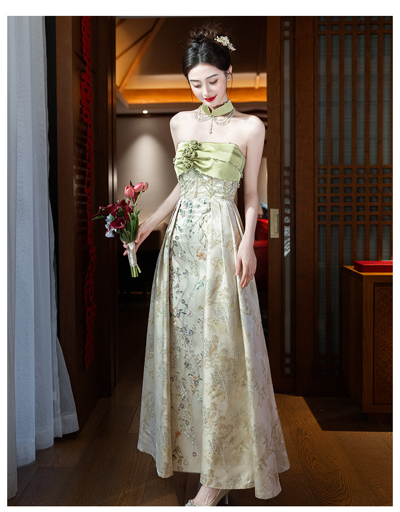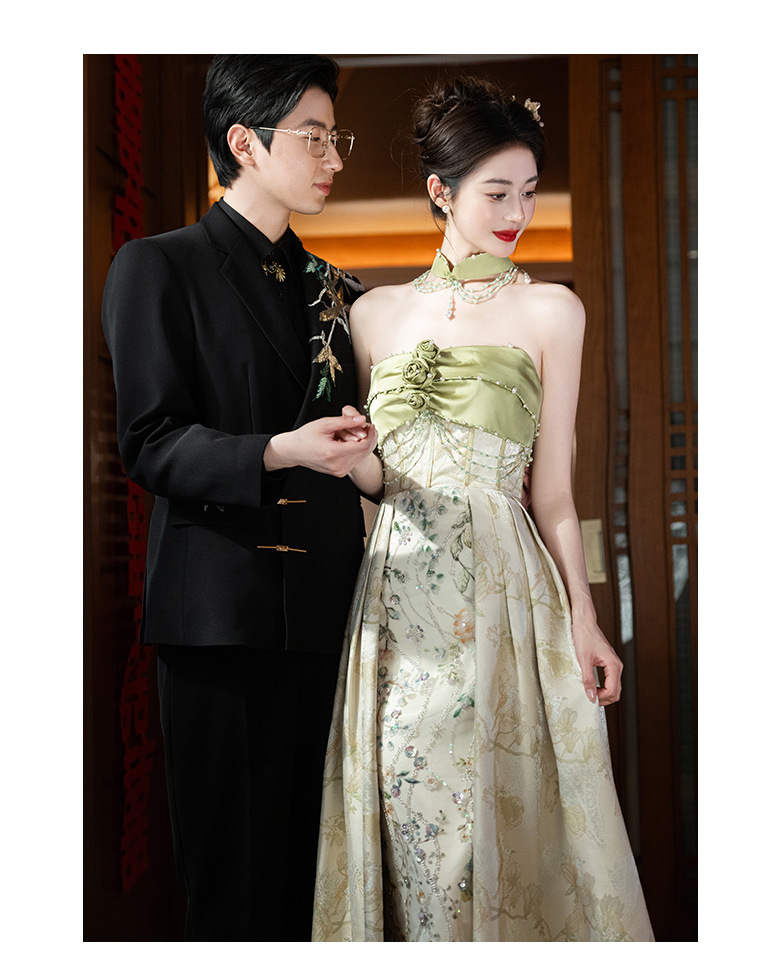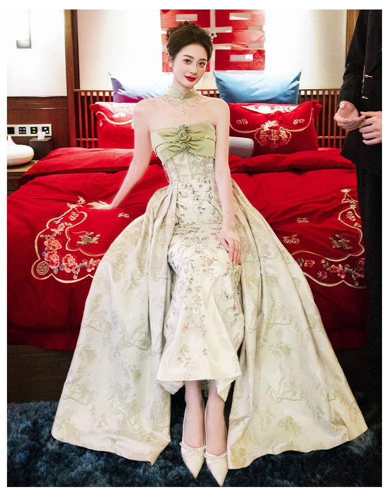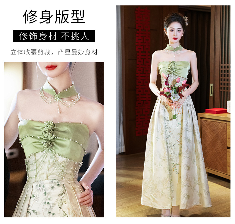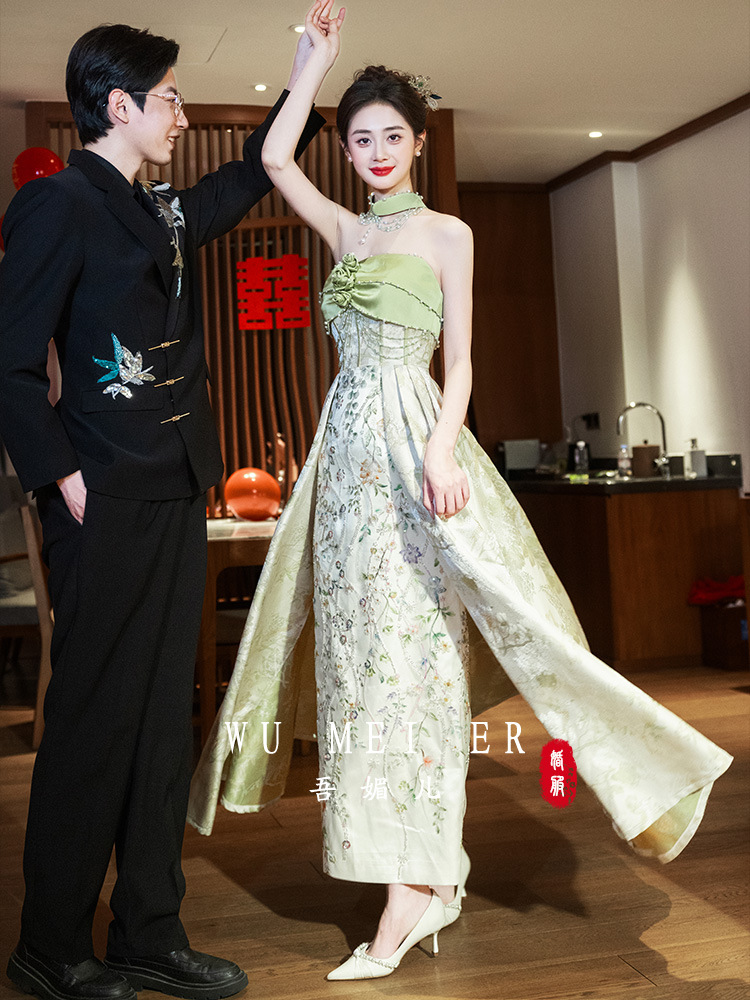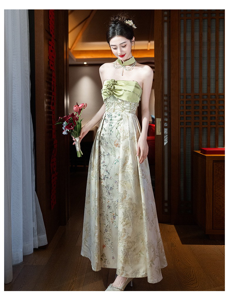 Новые китайские помолвки платья 2025 новые легкие роскошные нишевые невесты тост тонкое платье назад