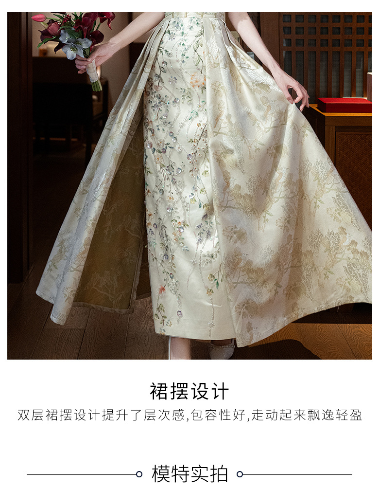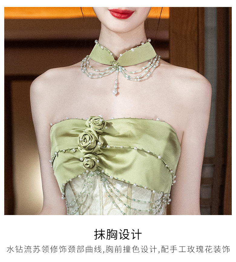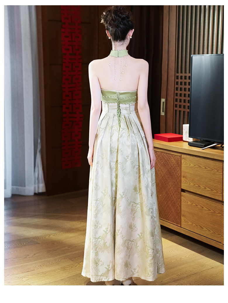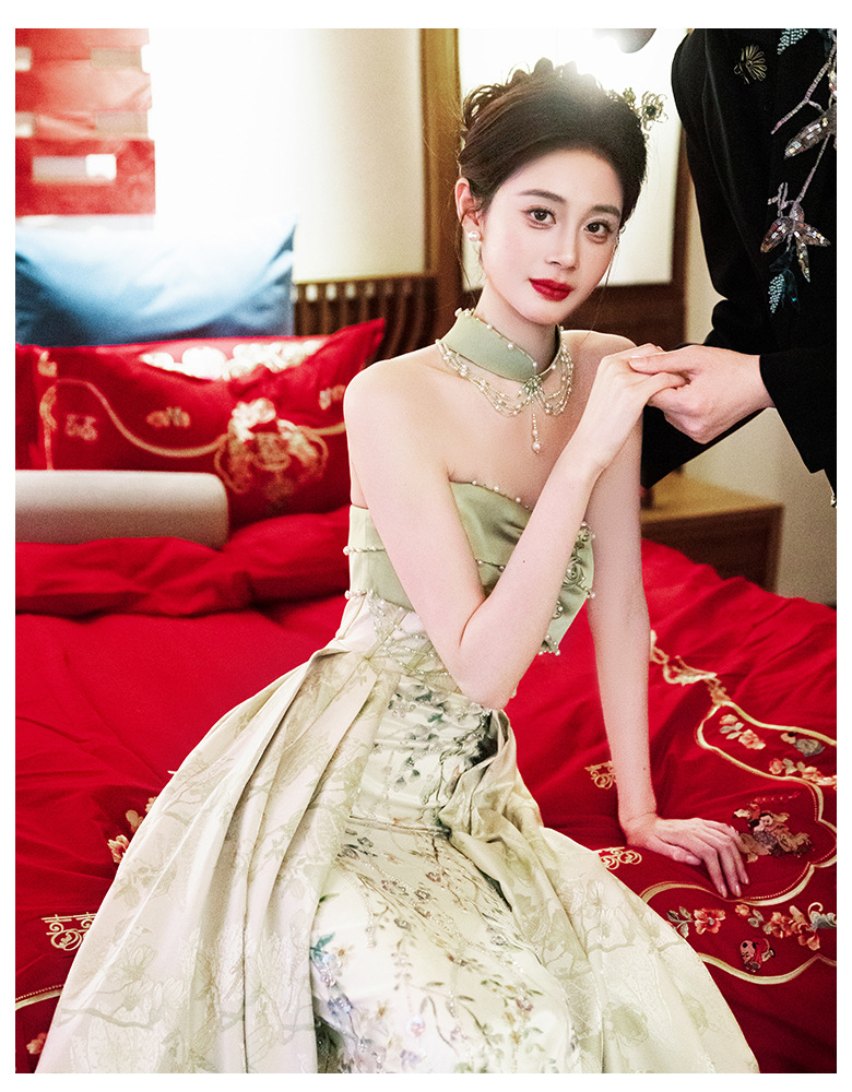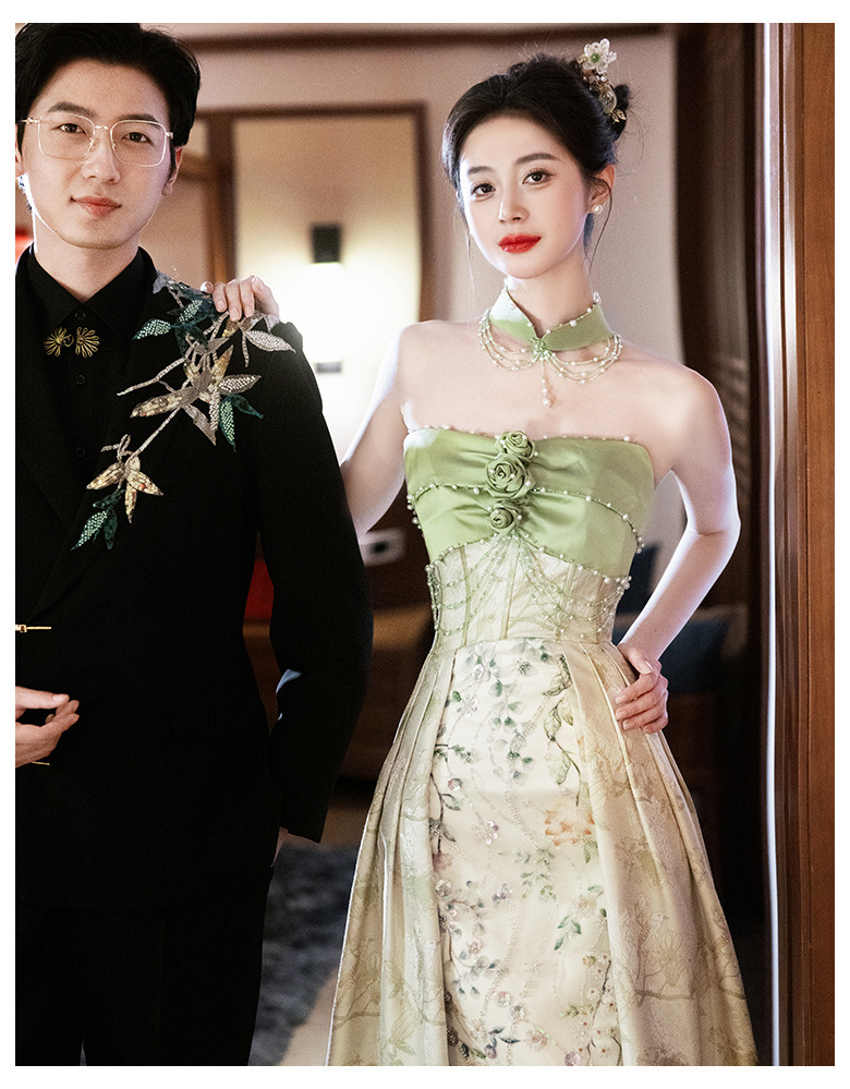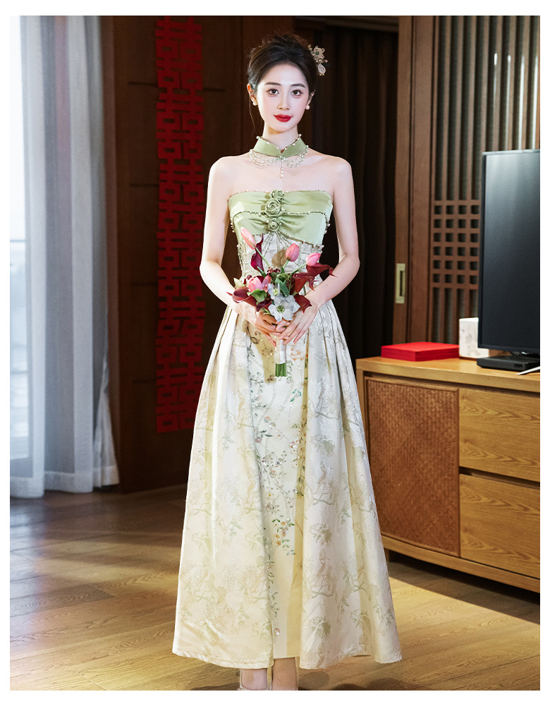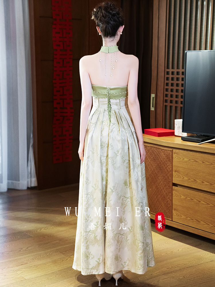 Новые китайские помолвки платья 2025 новые легкие роскошные нишевые невесты тост тонкое платье назад