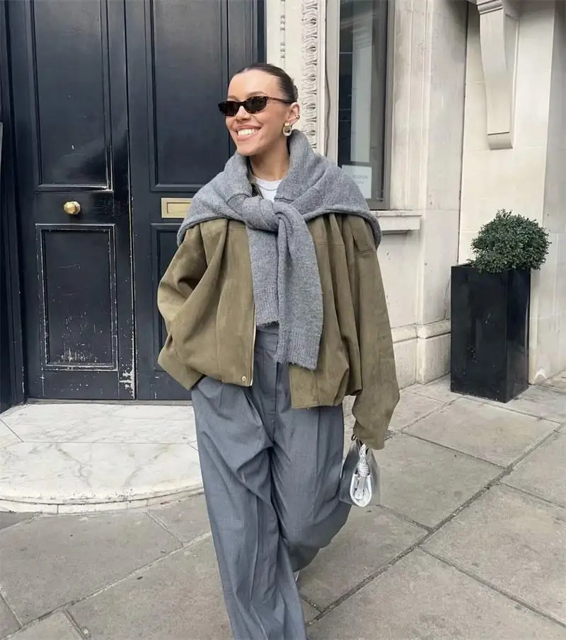 Производитель спот внешней торговли женской одежды оптом 2025 весна новая мода летчик летучая мышь рукава куртка на молнии топ
