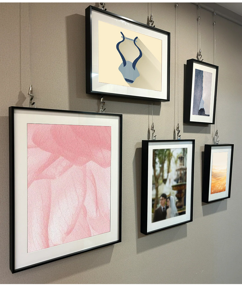 Маленькая квадратная подвесная рамка для масляных картин, регулируемые подвесные крючки и пазы для рельс для демонстрации в галерее.