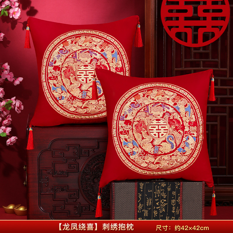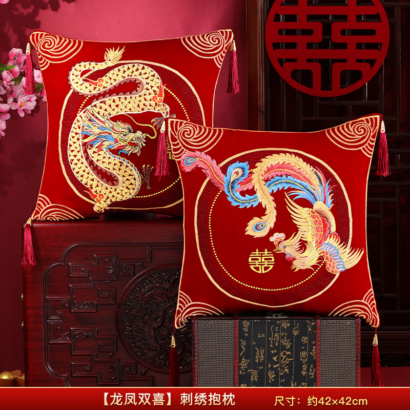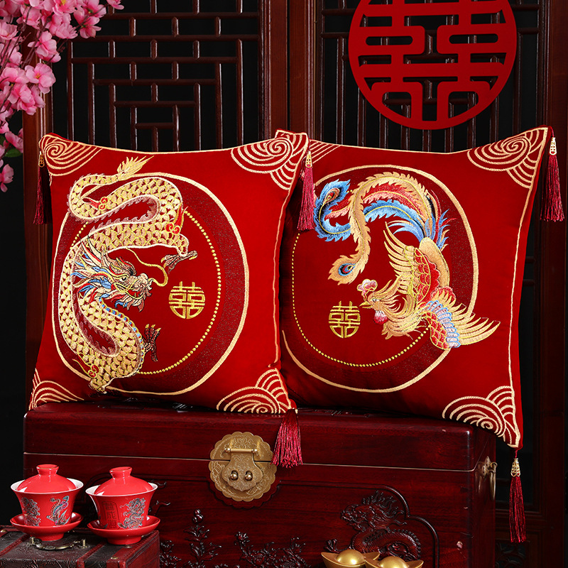 Свадебные подушки с вышивкой дракона и феникса, пара высококачественных свадебных подушек, подушки для свадебной комнаты, гостиной, дивана, прикроватные подушки, свадебные принадлежности