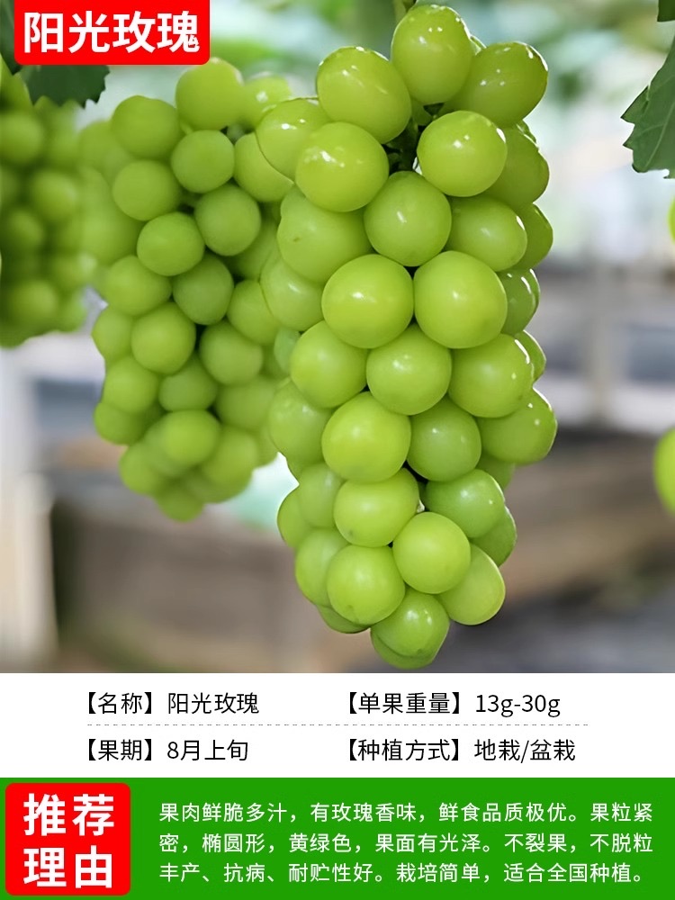 Саженцы винограда «Саншайн Роуз», без косточек, сорт Кёхо, для посадки в грунт и горшках, для двора, северо-южные сорта, живые растения.