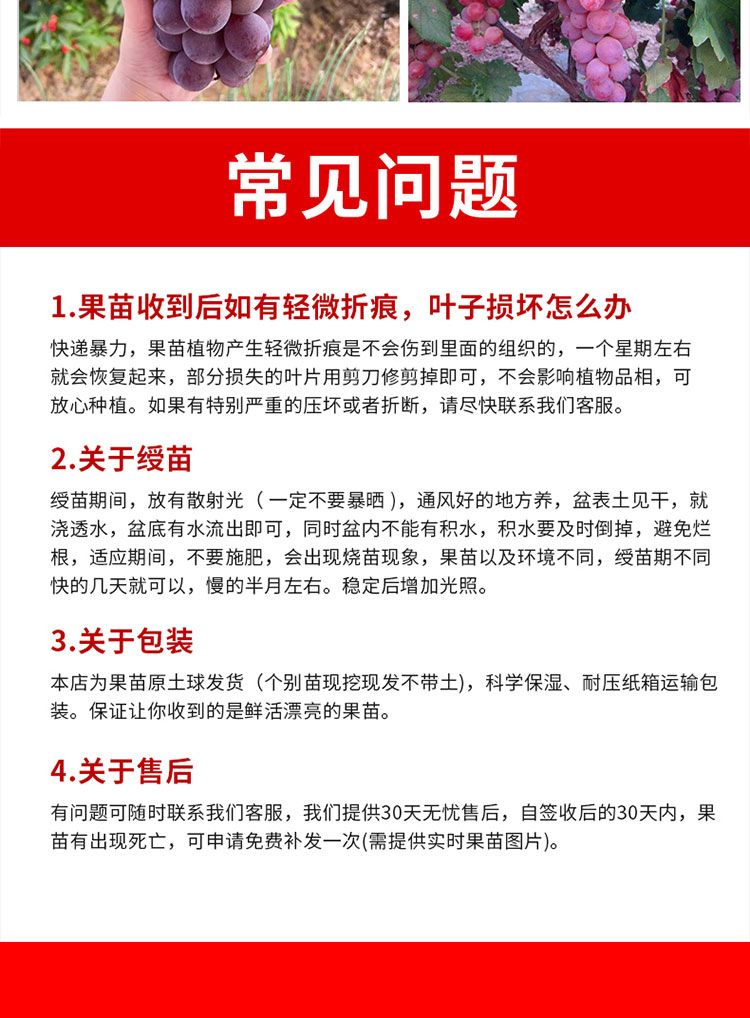 Саженцы винограда Sunshine Rose (результаты года) 3cm Толщина-90см (включительно)-99см (включительно); Саженцы сапфирового винограда (результаты года) 3cm Толщина-90см (включительно)-99см (включительно); Саженцы винограда викторианского (результаты года) 3cm Толщина-90см (включительно)-99см (включительно); Романтические саженцы красного винограда (результаты года) 3cm Толщина-90см (включительно)-99см (включительно); Саженцы винограда Кёхо (результаты года) 3cm Толщина-90см (включительно)-99см (включительно); Саженцы винограда конского молока (результаты года) 3cm Толщина-90см (включительно)-99см (включительно); Саженцы винограда Beauty Finger (результаты года) 3cm Толщина-90см (включительно)-99см (включительно); Саженцы винограда «Золотой палец» (результаты года) 3cm Толщина-90см (включительно)-99см (включительно); Саженцы красного винограда (результаты года) 3cm Толщина-90см (включительно)-99см (включительно); Летние черные виноградные саженцы (результаты года) 3cm Толщина-90см (включительно)-99см (включительно); 4cm саженцев винограда (примечания к сорту) с множеством плодов - 90см (включительно) - 99см (включительно); 5cm саженца винограда (примечания к сорту) имеют лучшую форму дерева и большую результативность - 90см (включительно) - 99см (включительно); 6cm саженцев винограда (примечания к сорту) с множеством плодов - 90см (включительно) - 99см (включительно); 7cm саженца винограда (примечания к сорту) полны результатов - 90см (включительно) - 99см (включительно); 8cm саженца винограда (примечания к сорту) дадут бесконечные результаты - 90см (включительно) - 99см (включительно); 10cm саженцев винограда (красивая форма дерева, выдерживают 25kg саженца)-90см (включительно)-99см (включительно); 12cm крупных саженца винограда (рекомендуется для дворов) могут достигать высоты около 30-35kg -90 см (включительно) -99 см (включительно).