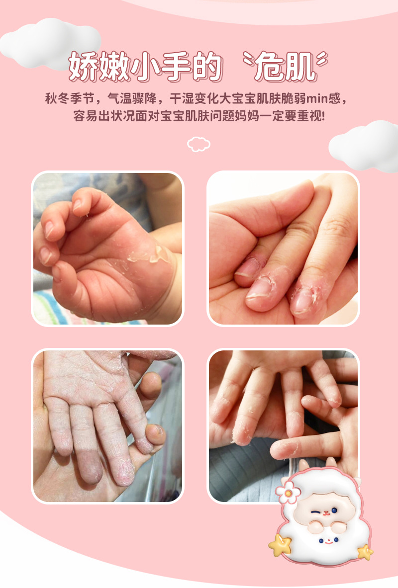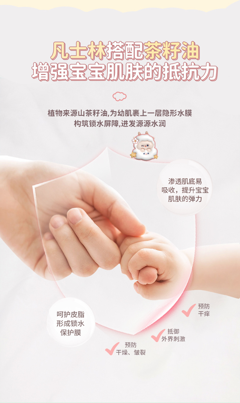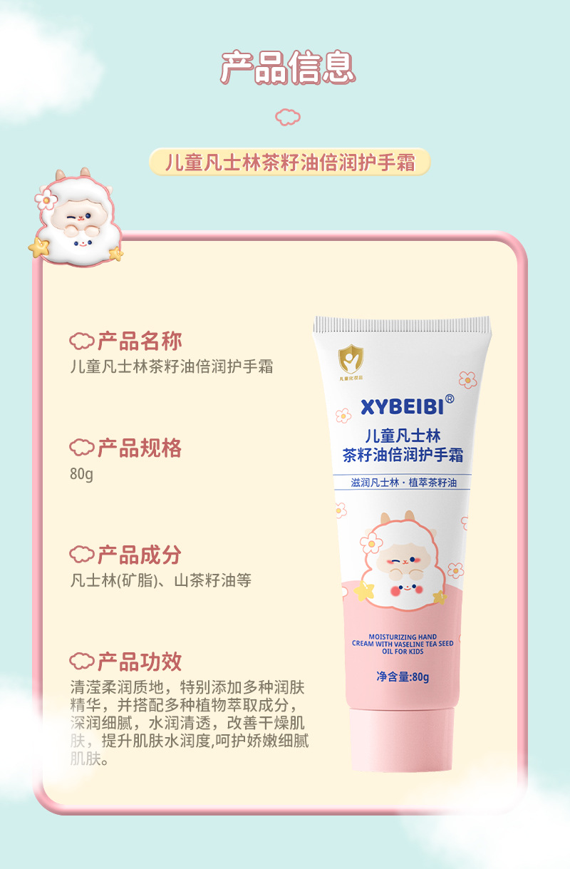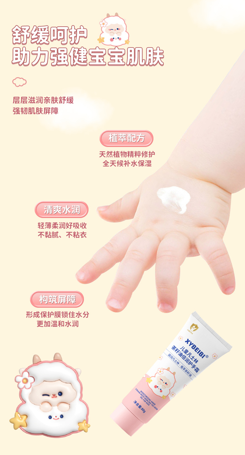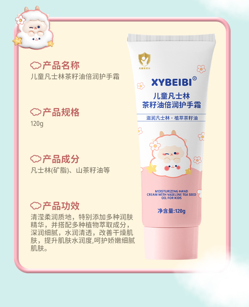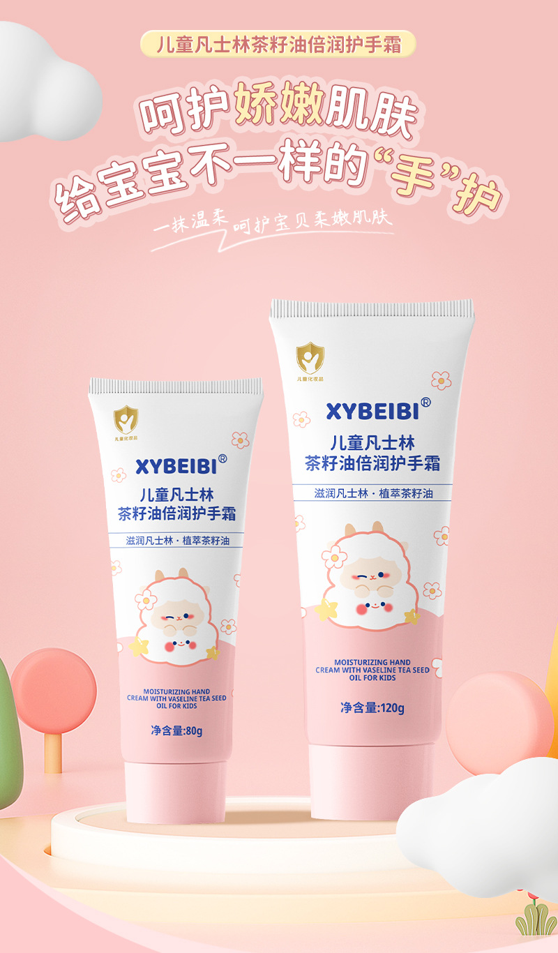 Формула с растительными экстрактами легко впитывается, нелипкая, увлажняет и увлажняет осенне-зимний детский крем для рук с вазелином и маслом чайных семян.