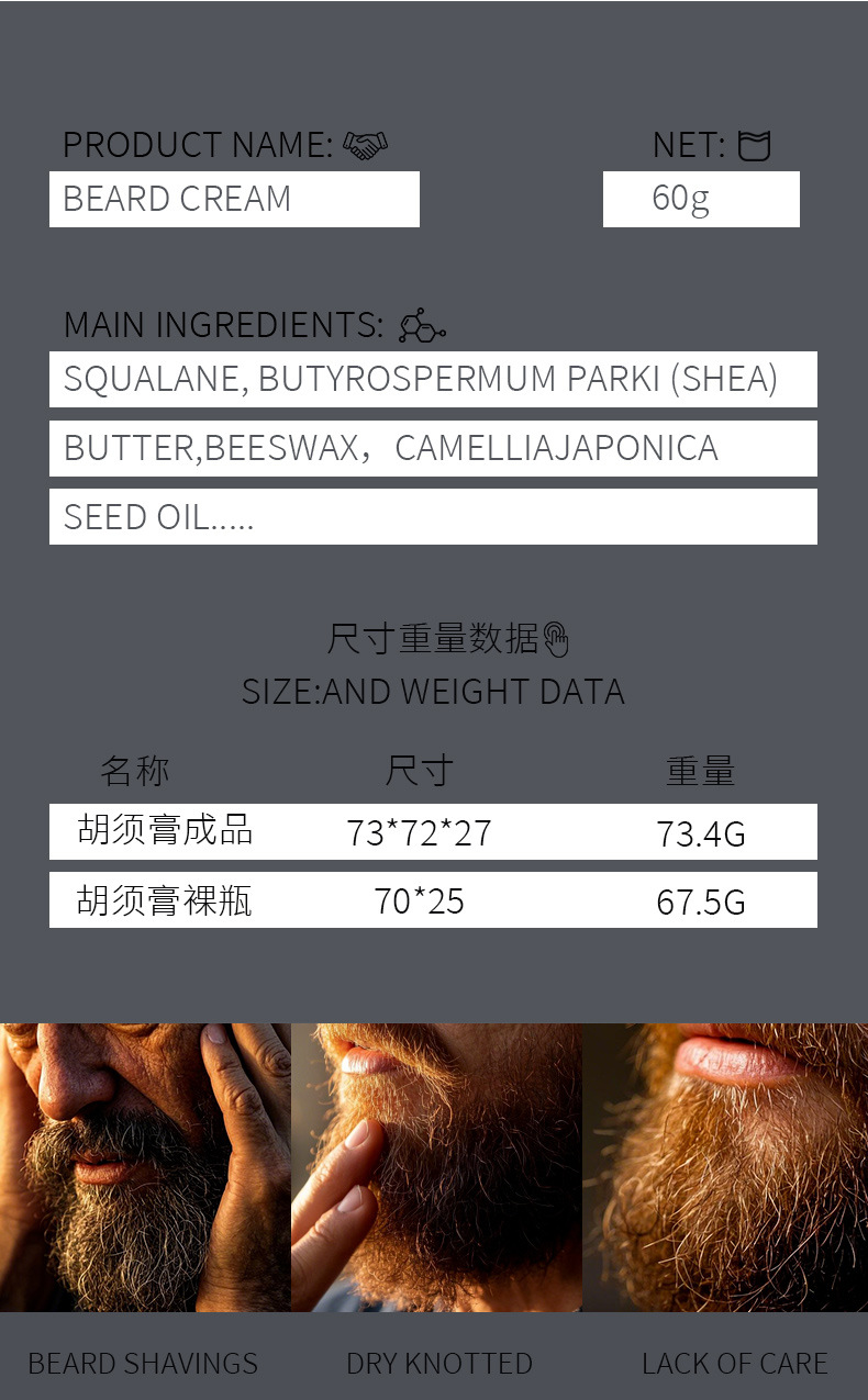 Крем для бороды 60г в наличии, кросс-бордерный мужской крем для смягчения бороды, стимуляции роста и ухода, крем для бороды, индивидуальный OEM