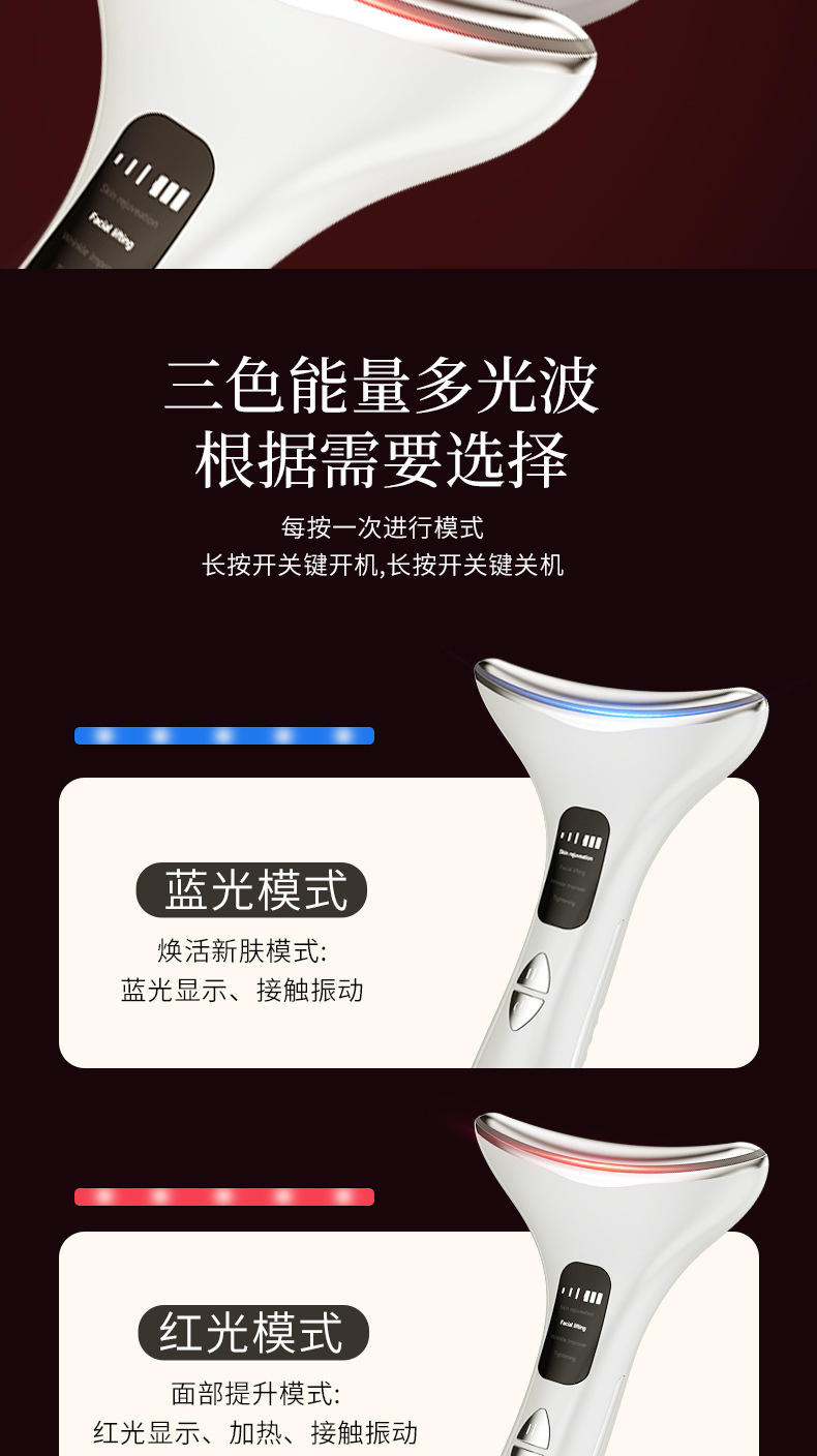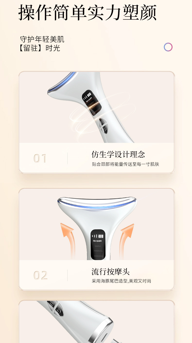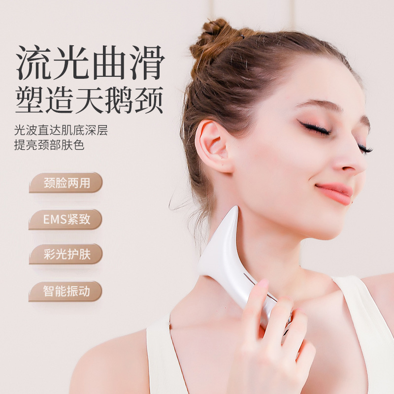 Трансграничная шея с цветным светом, прибор для поднятия красоты, микромассаж, ультразвуковой вибрационный инструмент для омоложения кожи, инструмент для глубокой очистки шеи