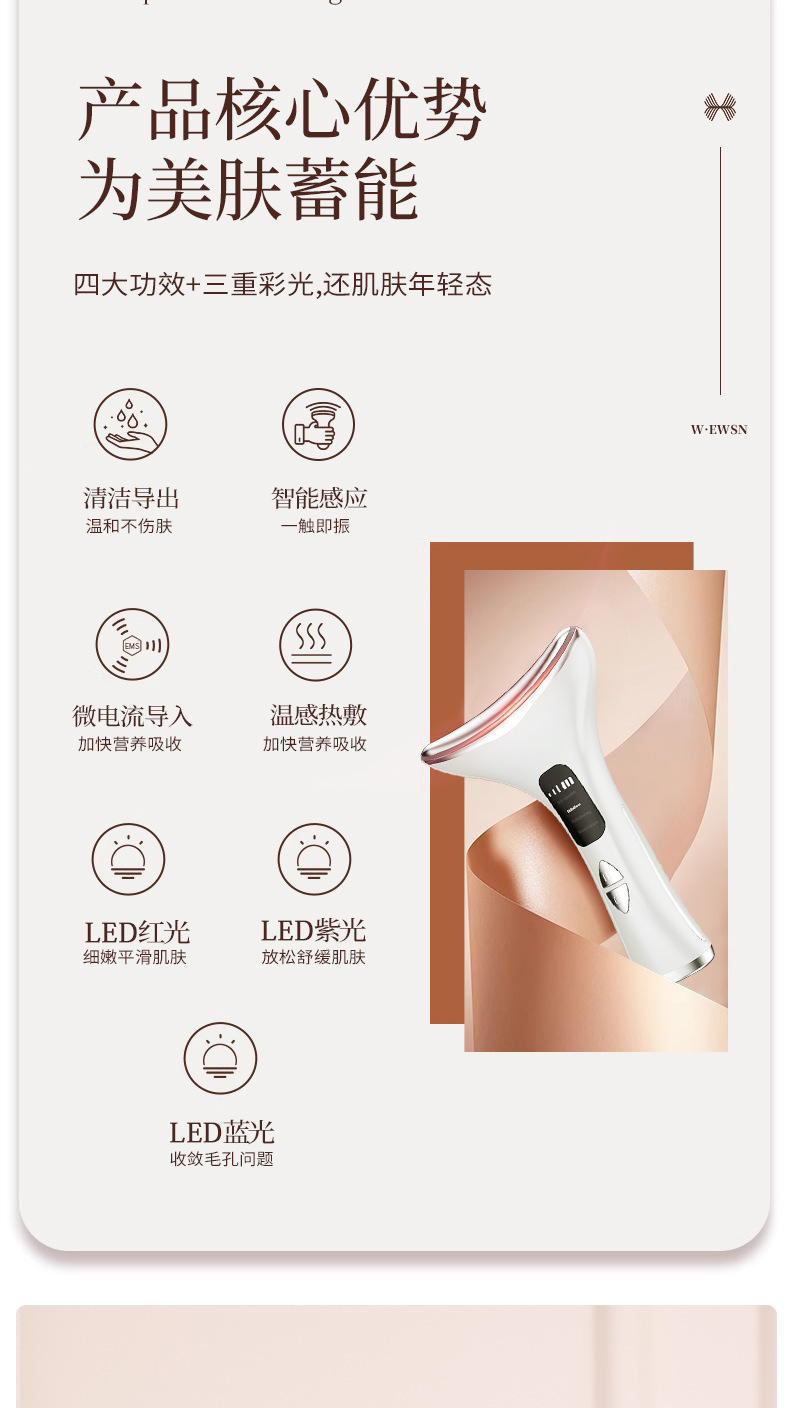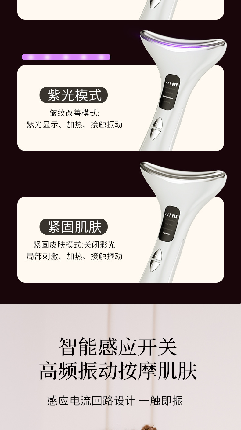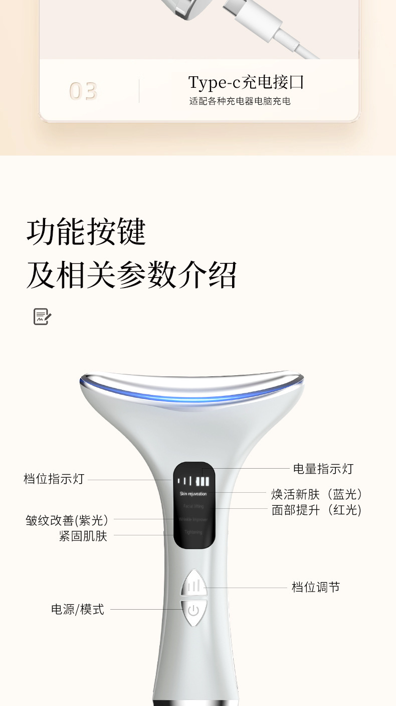 Трансграничная шея с цветным светом, прибор для поднятия красоты, микромассаж, ультразвуковой вибрационный инструмент для омоложения кожи, инструмент для глубокой очистки шеи