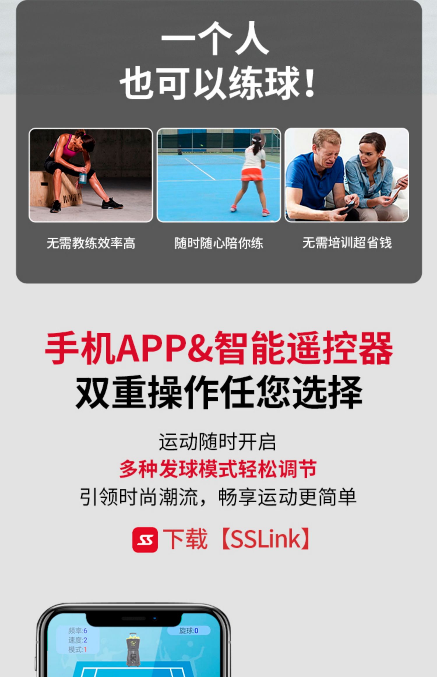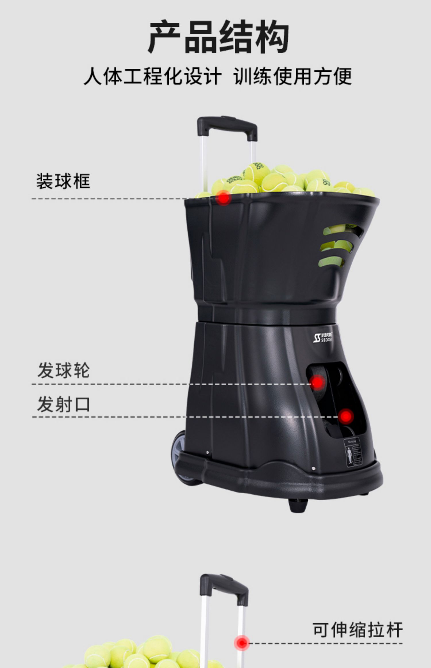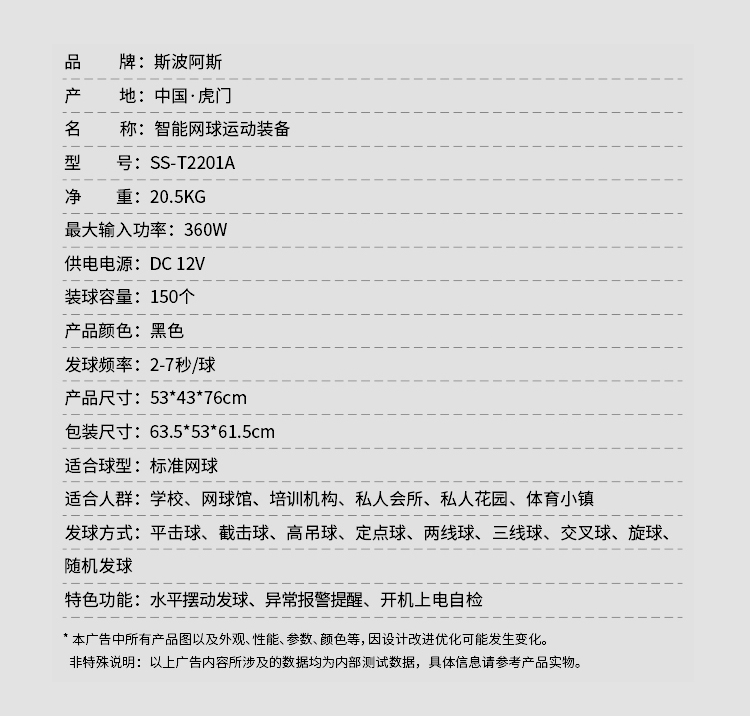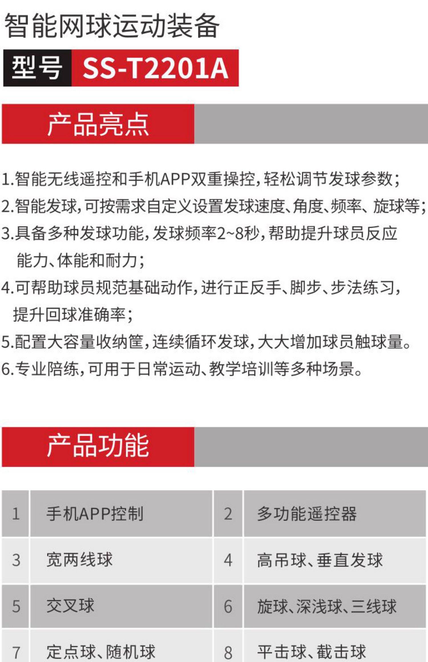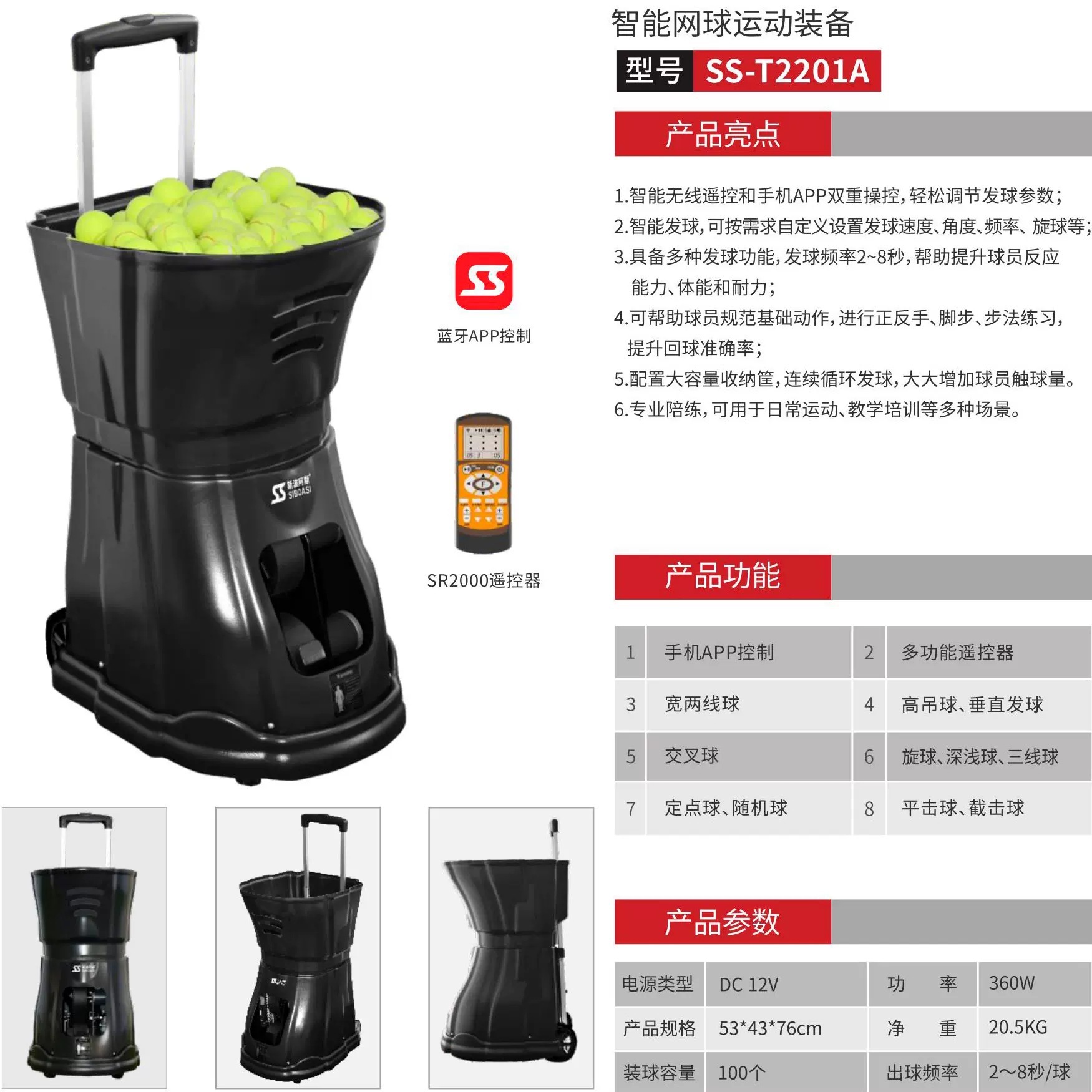 Автоматическая теннисная машина для тренировок Spores T2201A, для одного игрока, с функцией подачи и броска мячей.