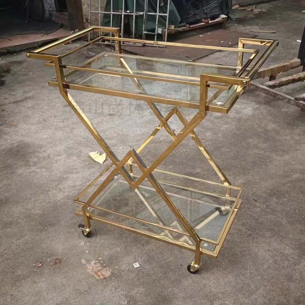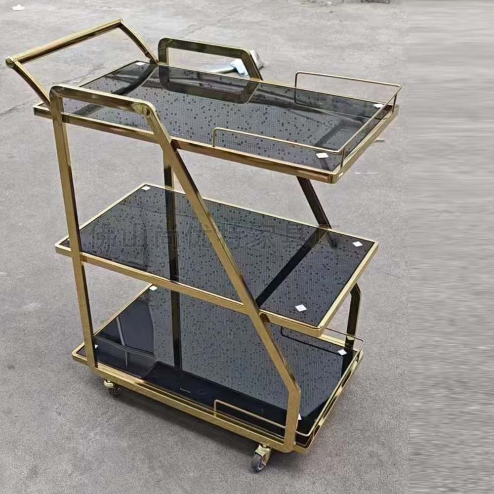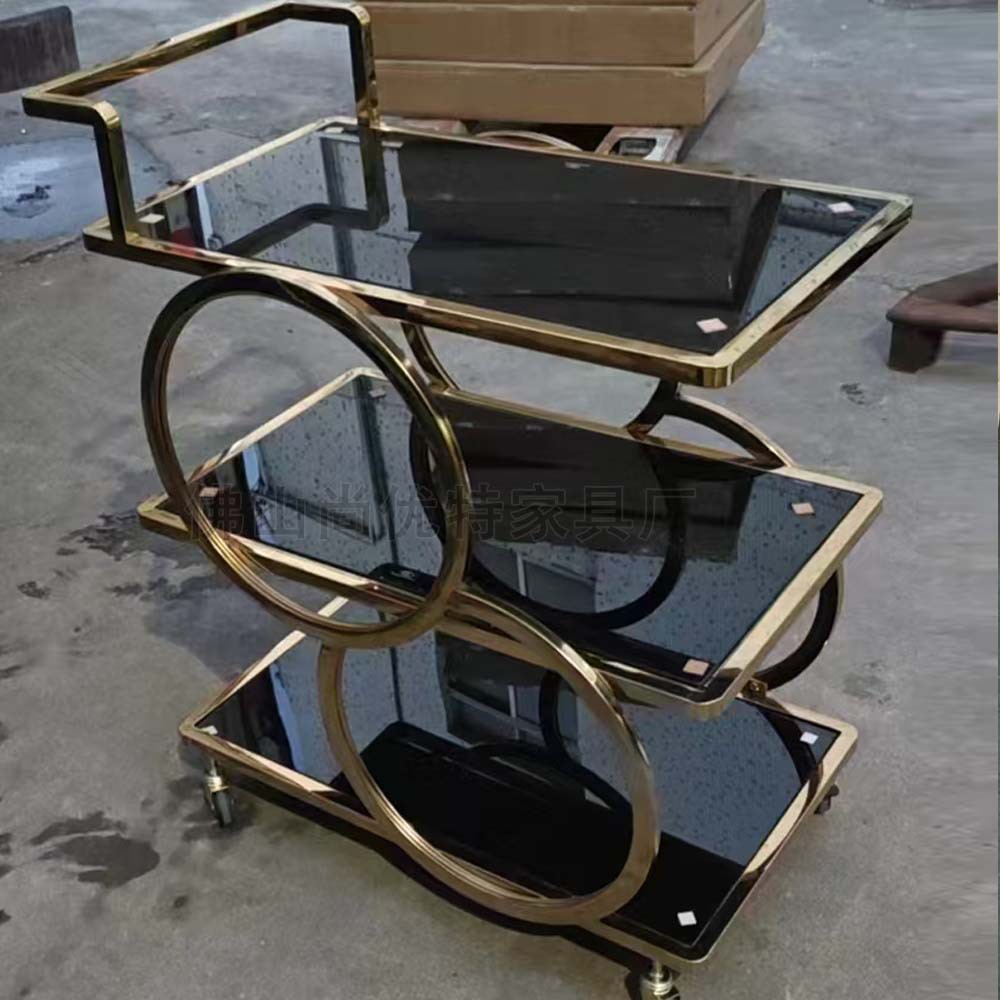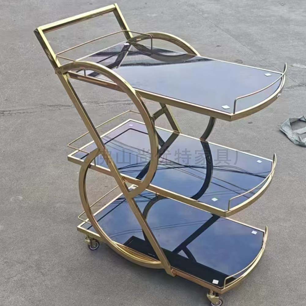 Трансграничная европейская нержавеющая сталь трехслойная винная тележка из закаленного стекла в гостиничном лобби