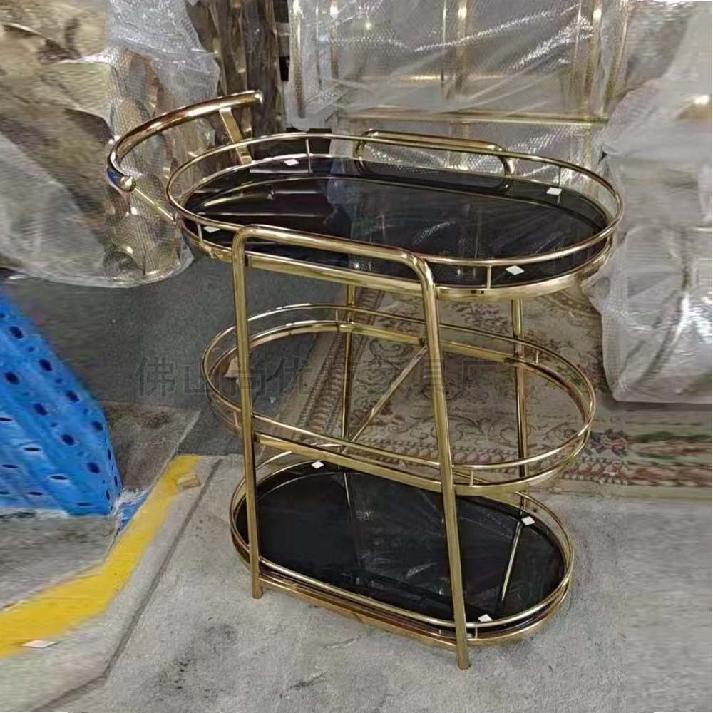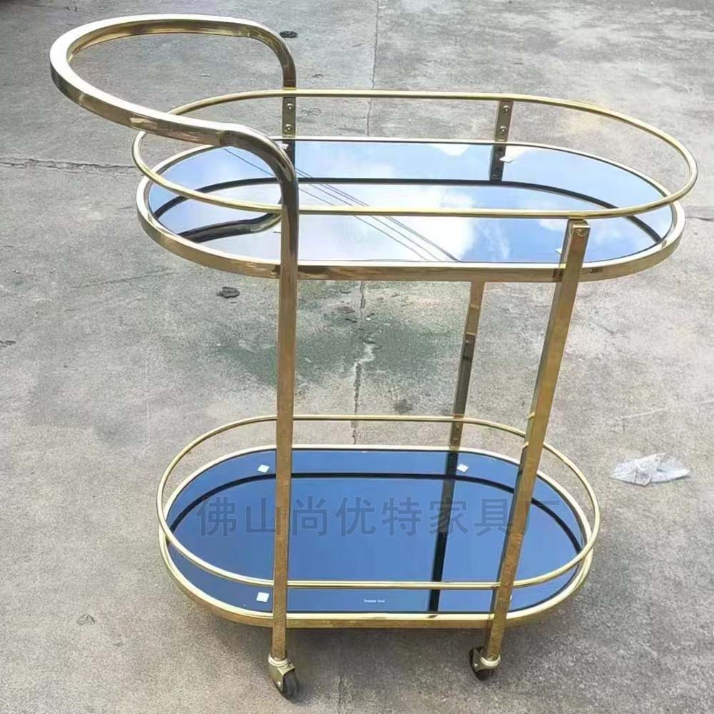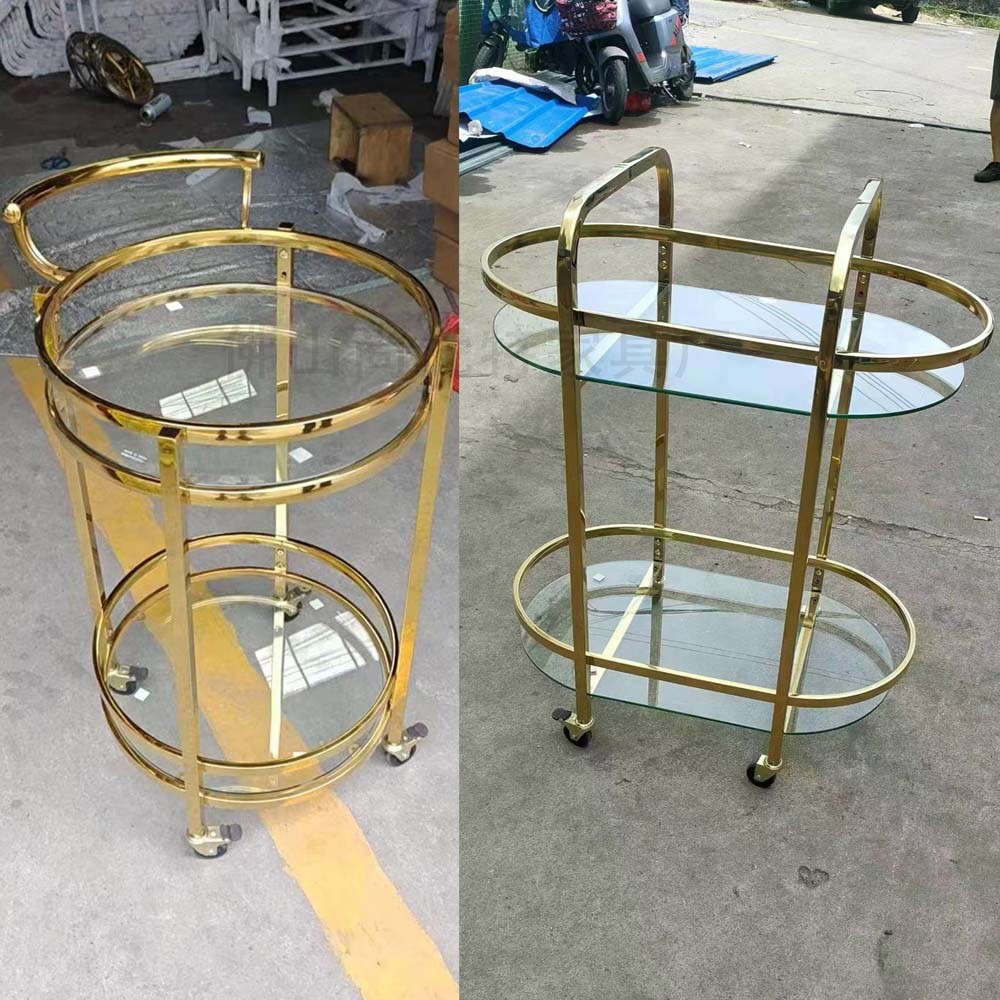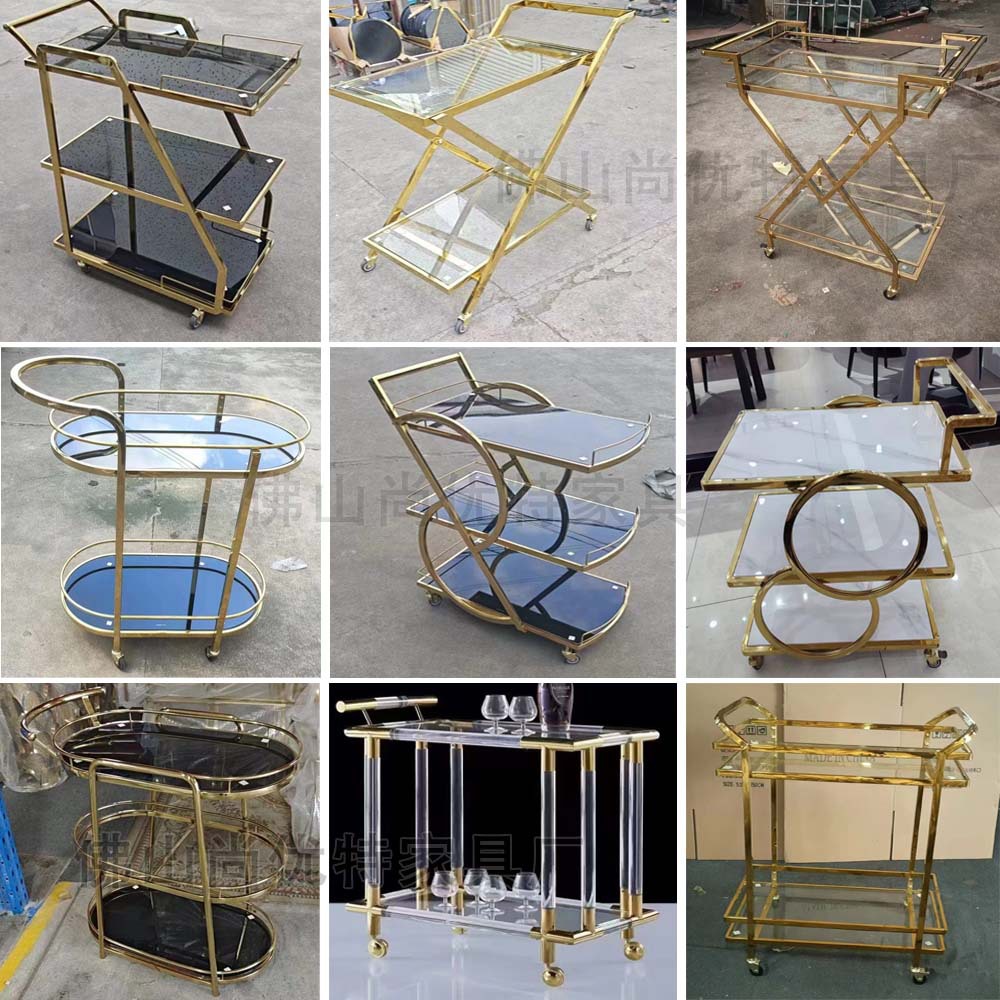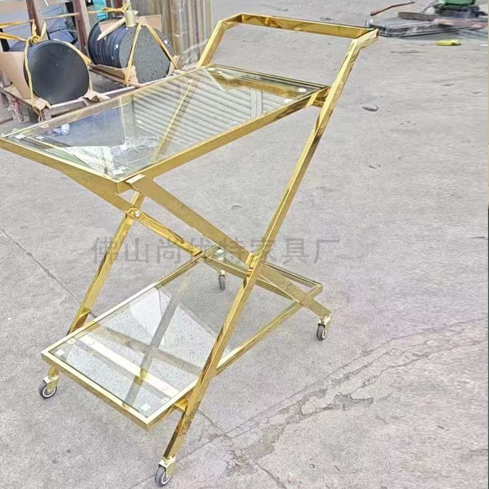 Трансграничная европейская нержавеющая сталь трехслойная винная тележка из закаленного стекла в гостиничном лобби