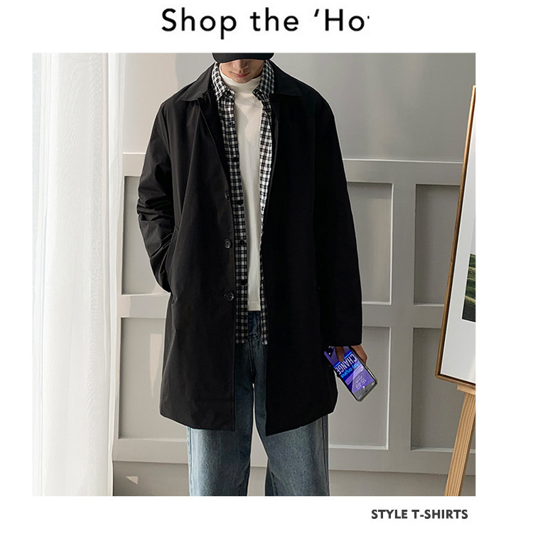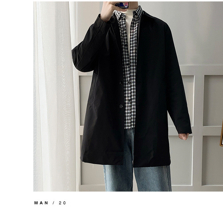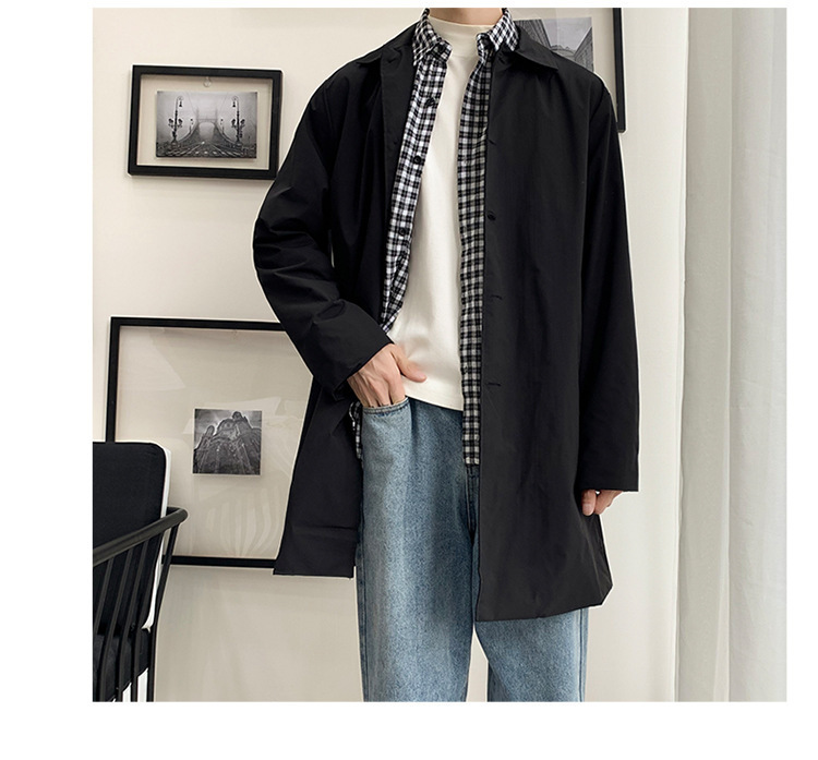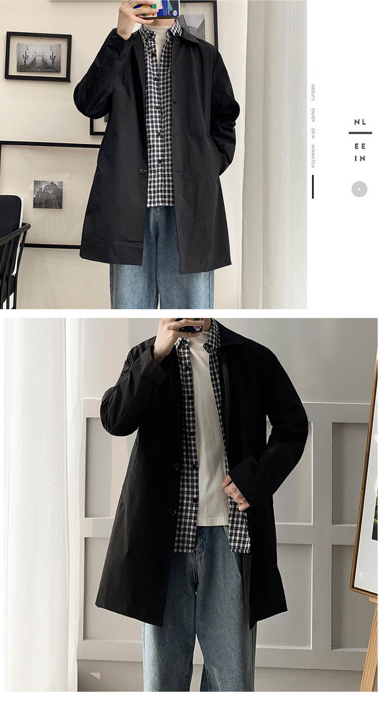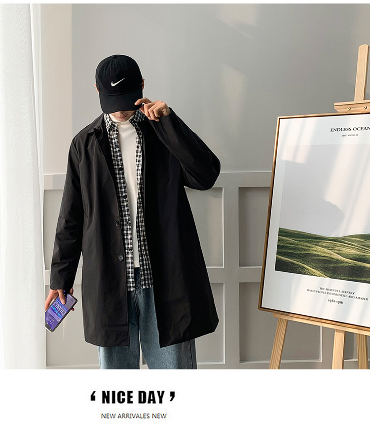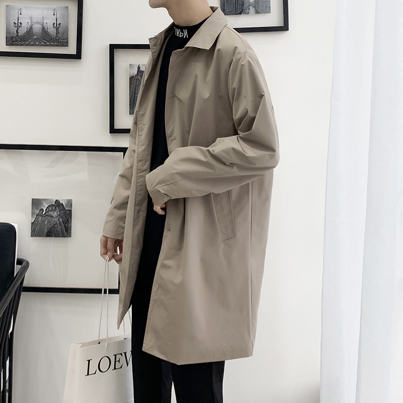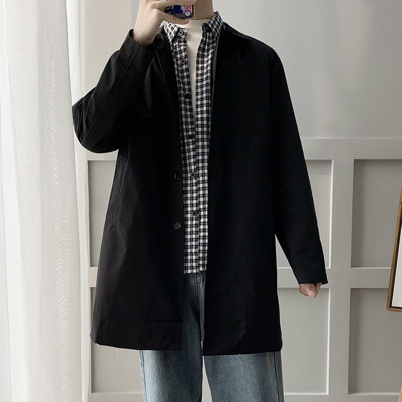 Азиатский мужской однобортный плащ средней длины, корейская версия, свободная однотонная универсальная молодежная куртка, весенне-осенний топ