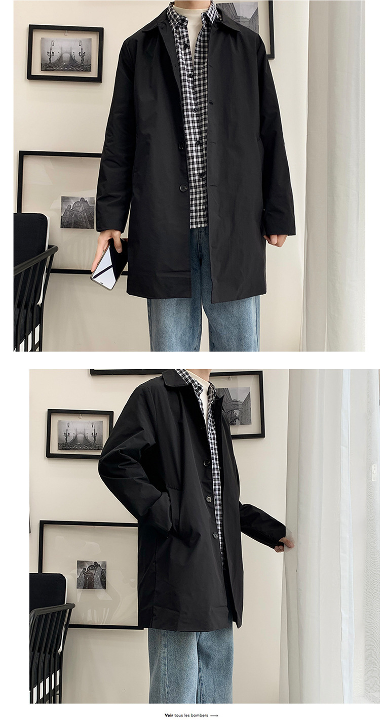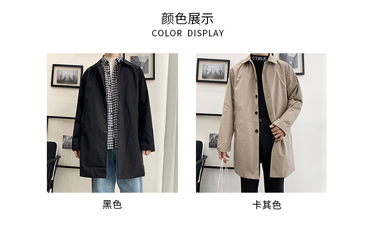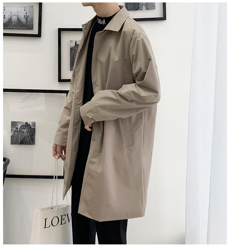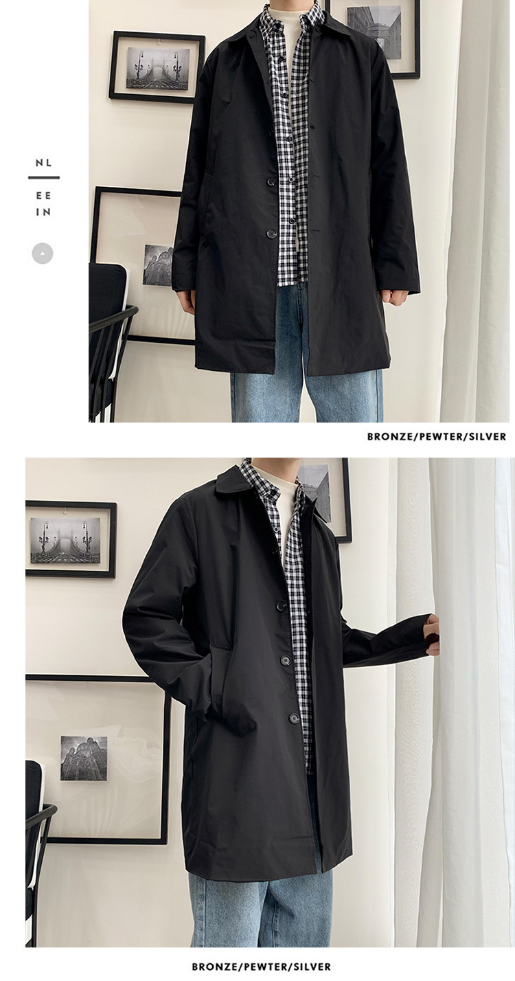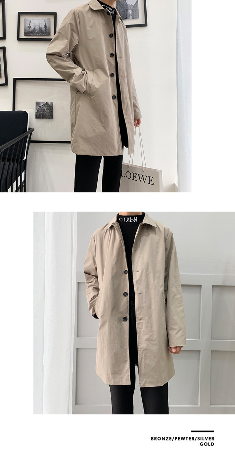 Азиатский мужской однобортный плащ средней длины, корейская версия, свободная однотонная универсальная молодежная куртка, весенне-осенний топ