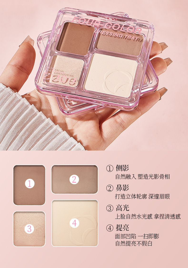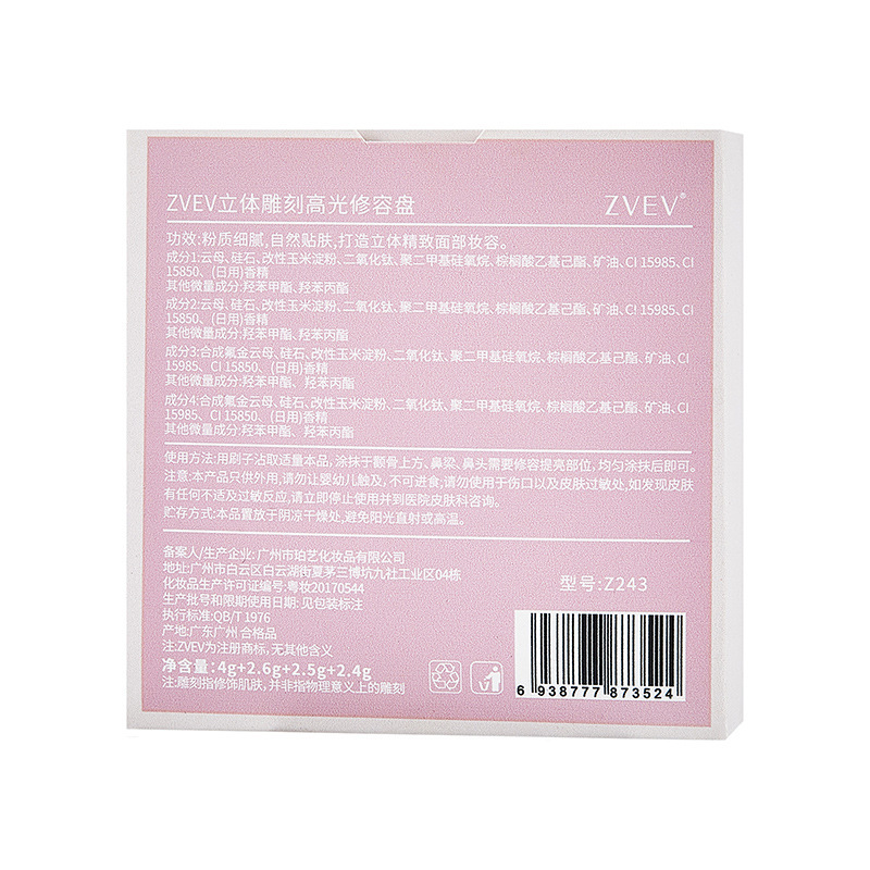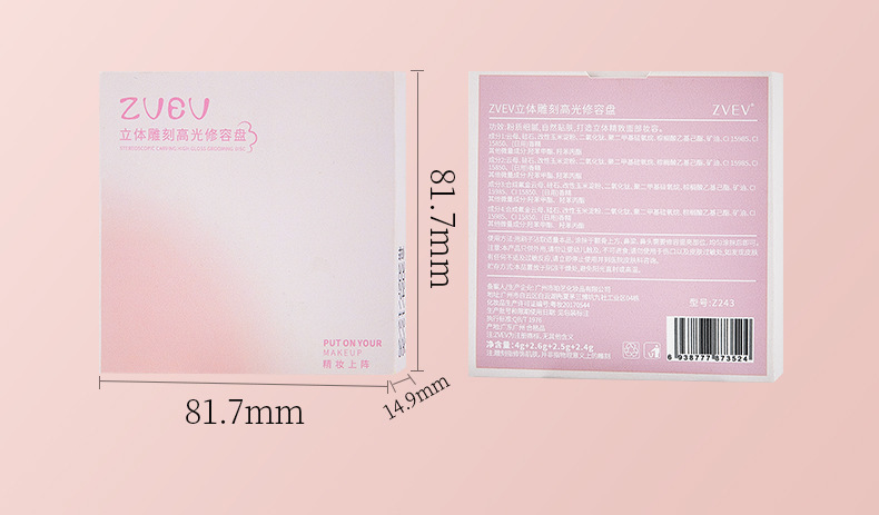 Высокоглянцевая контурная пудра ZVEV Stereo Carving тонкая и легко растушевывается, естественная и не выглядит грязной, водонепроницаемая, устойчивая к поту и прозрачная.