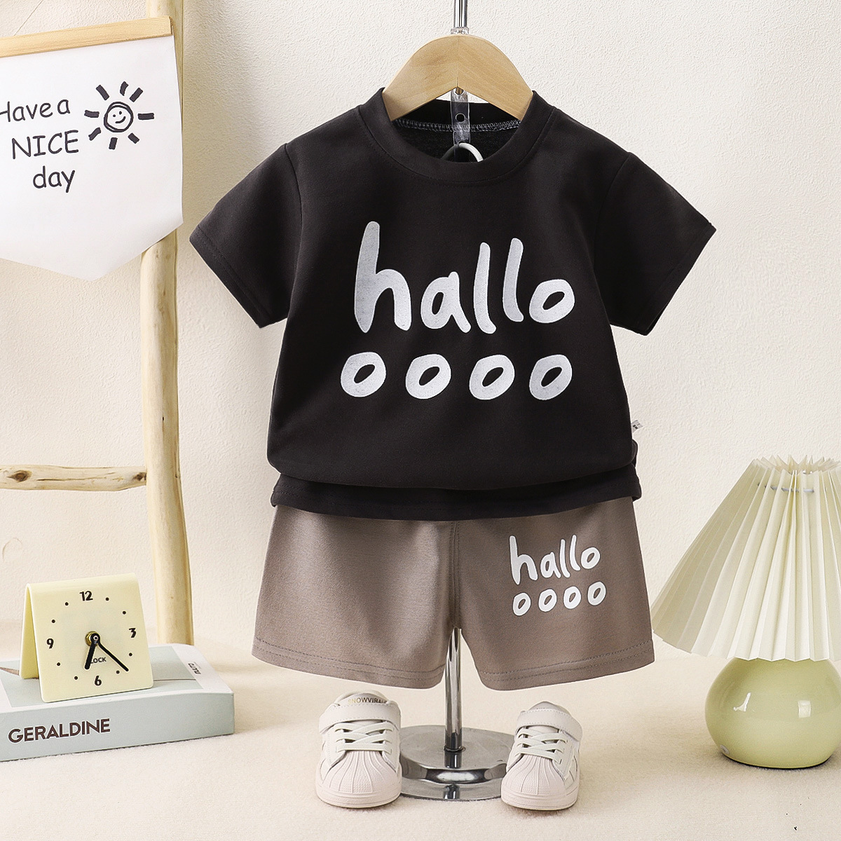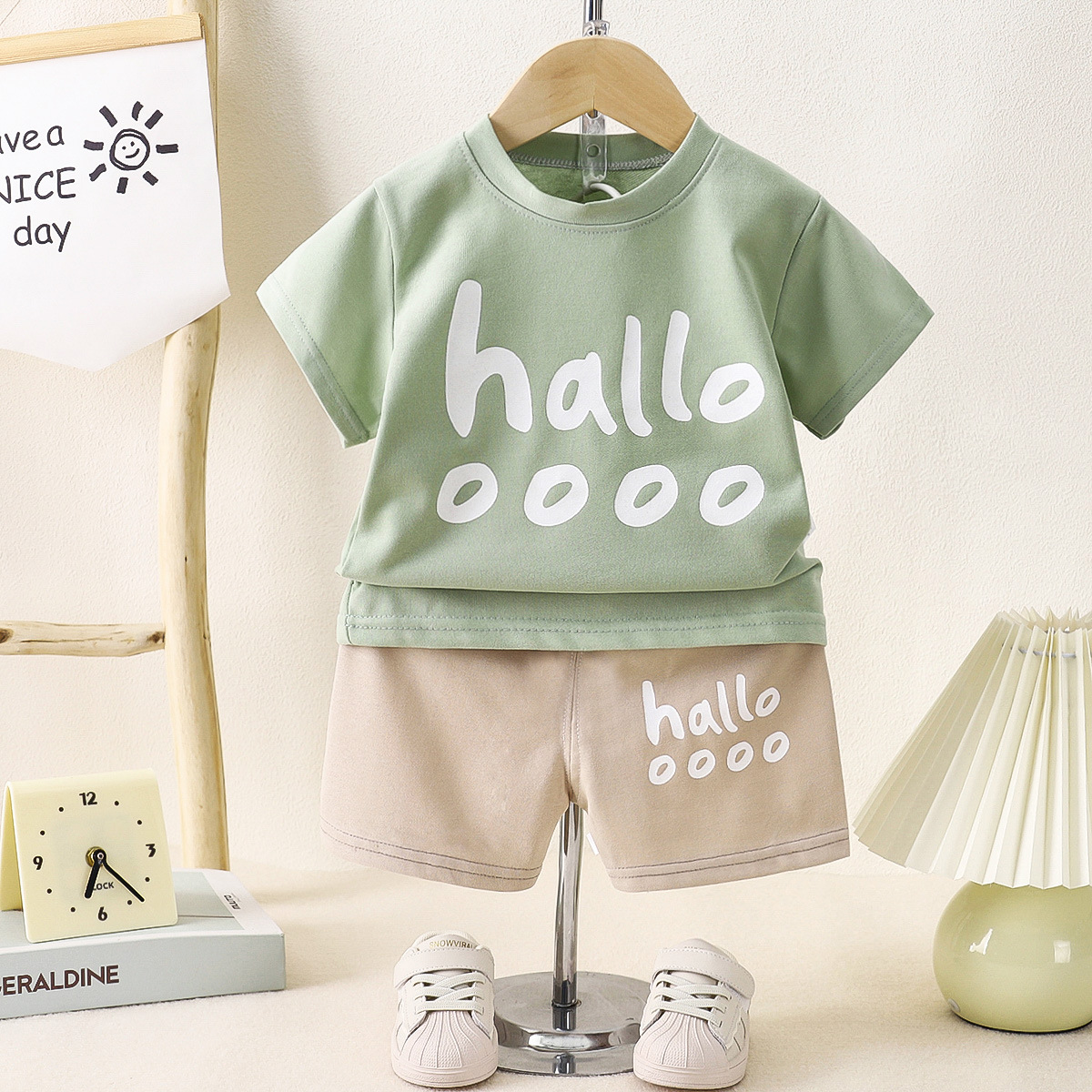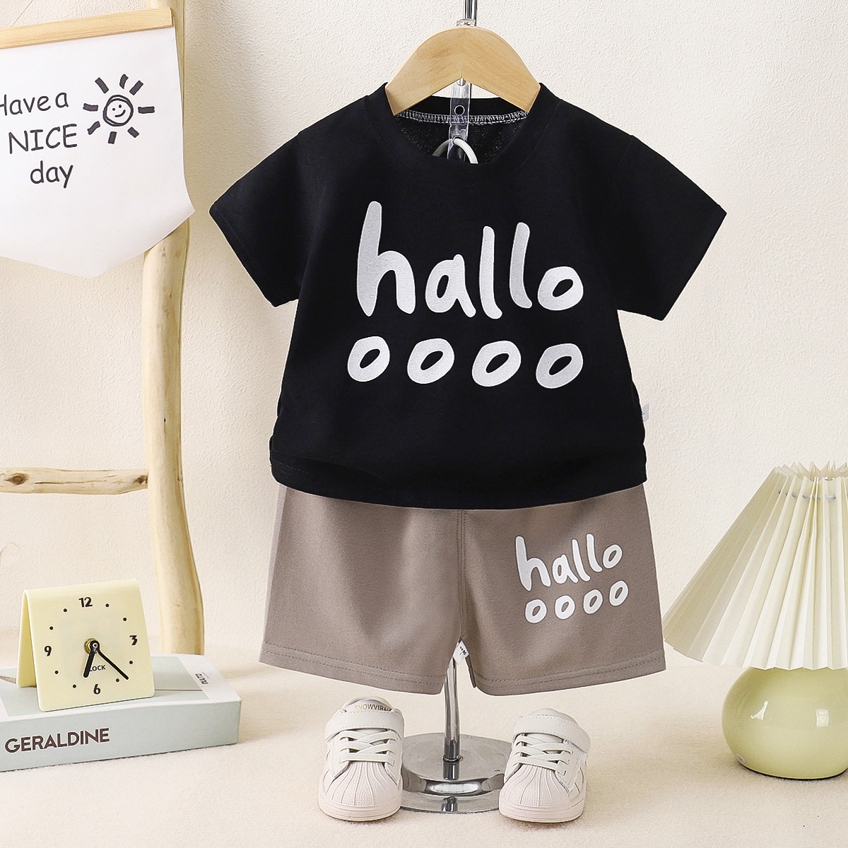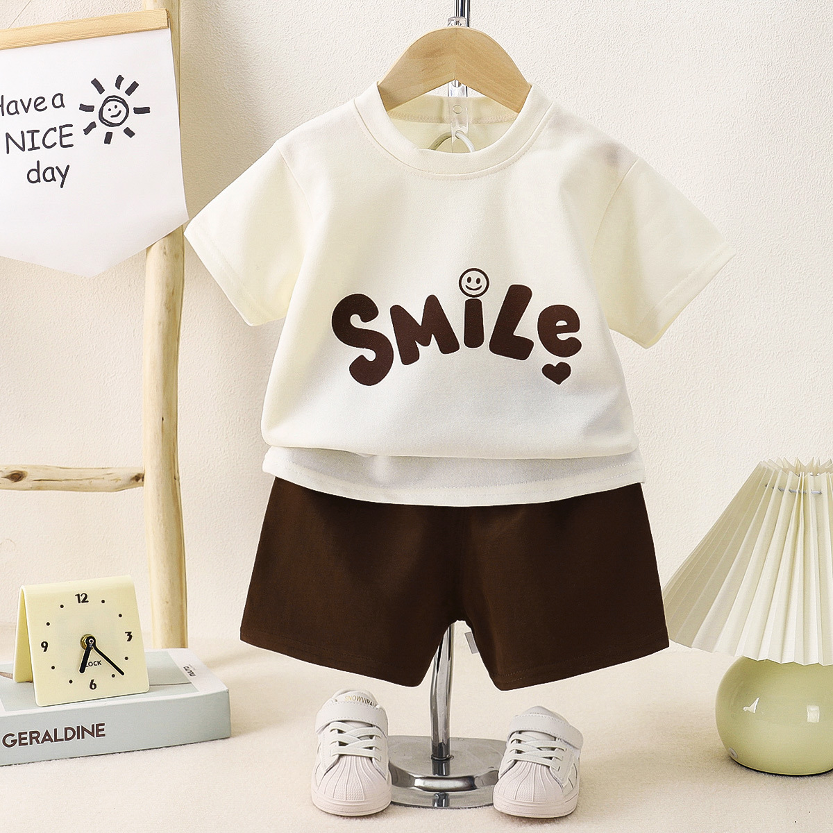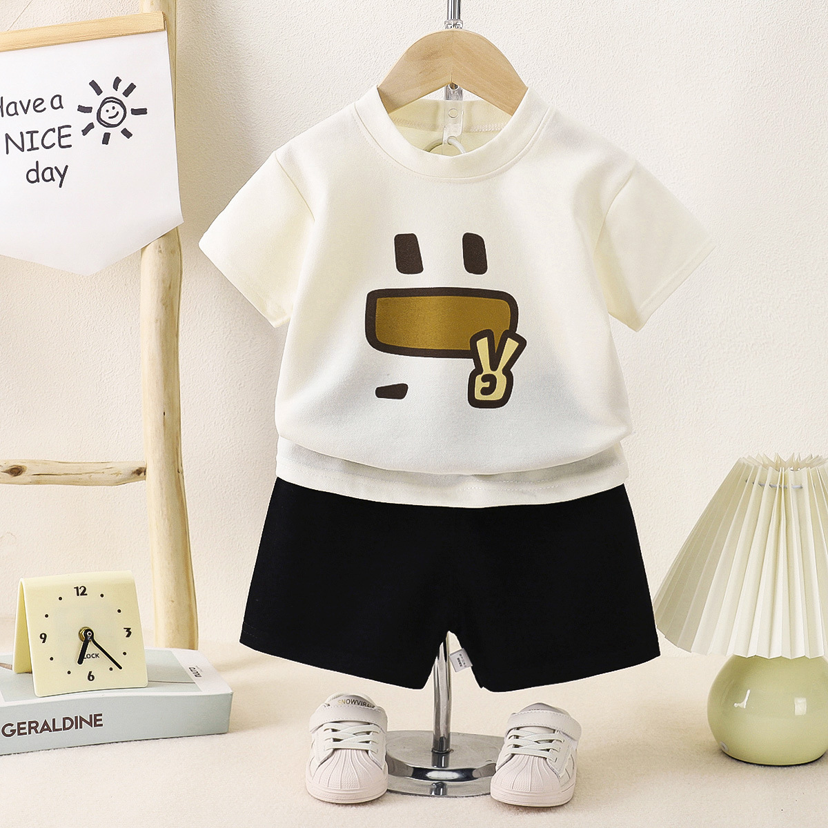 Летний костюм с короткими рукавами для детей Летний мальчик для девочек среднего и среднего возраста пятиборочные шорты набор домашней одежды из двух частей