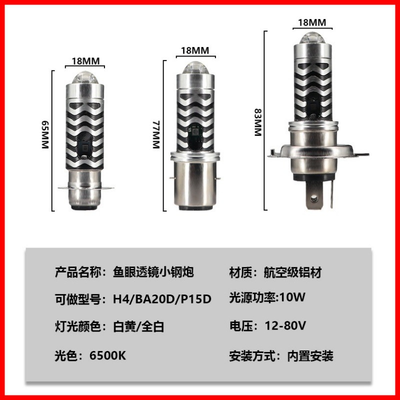 Кросс-бордерный бестселлер: двухцветная малая стальная пушка H4/P15D/BA20D, модифицированная светодиодная фара «рыбий глаз» для электромотоцикла