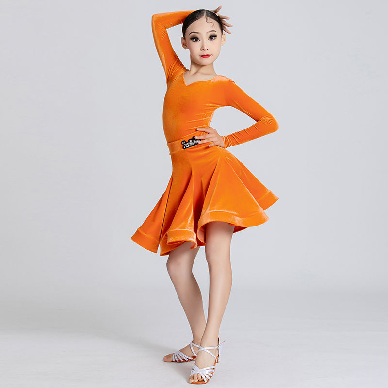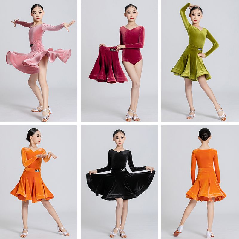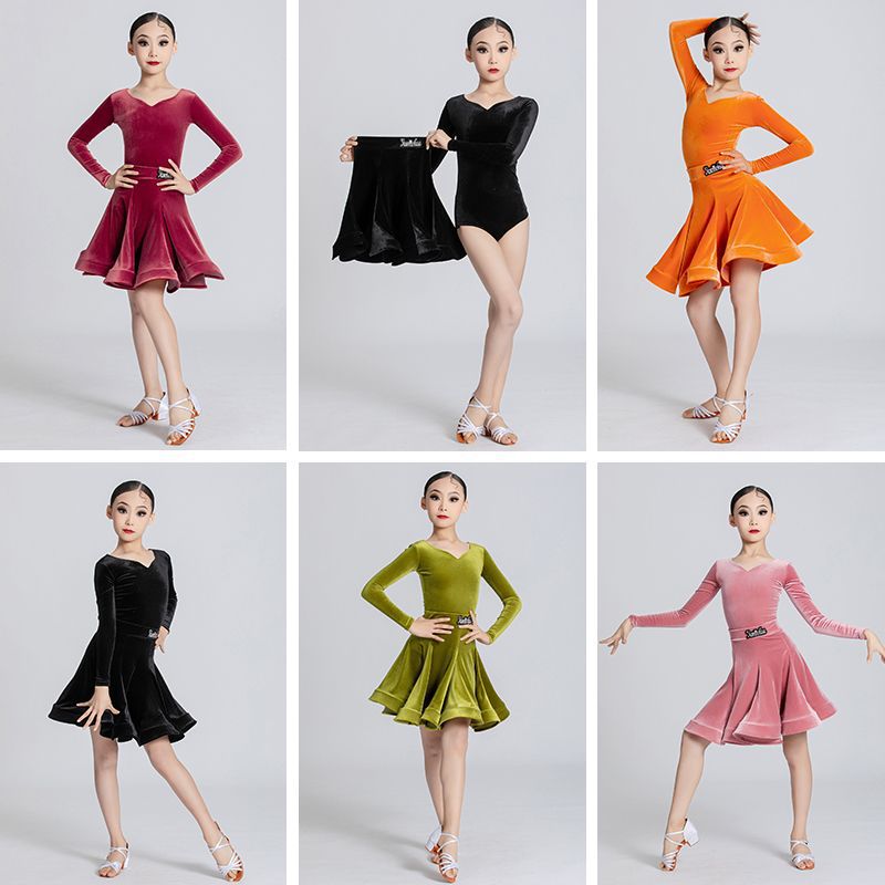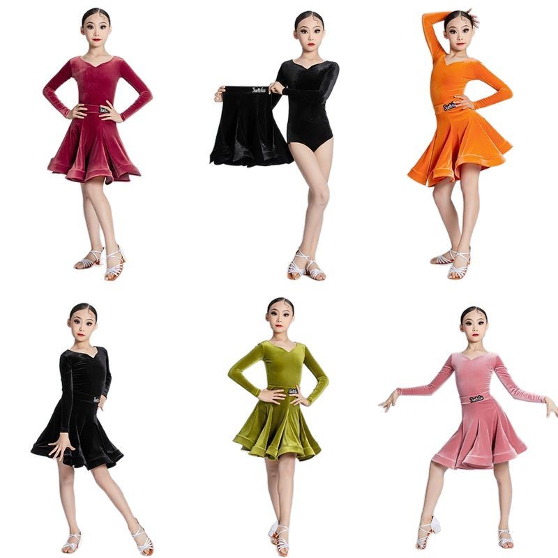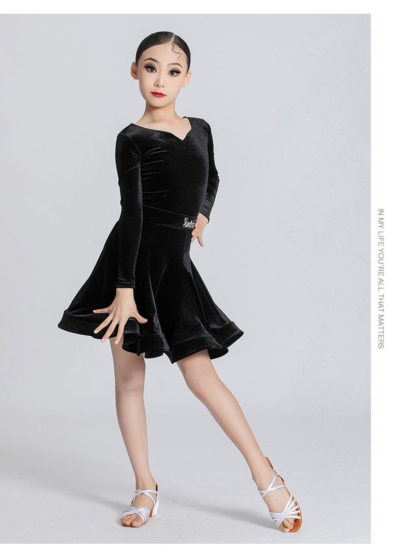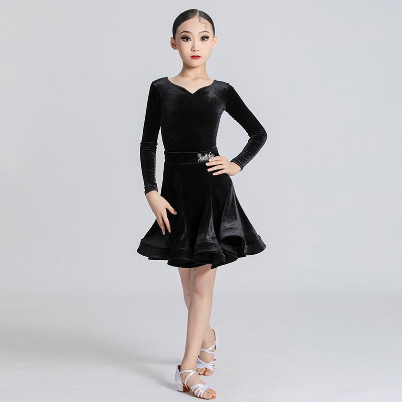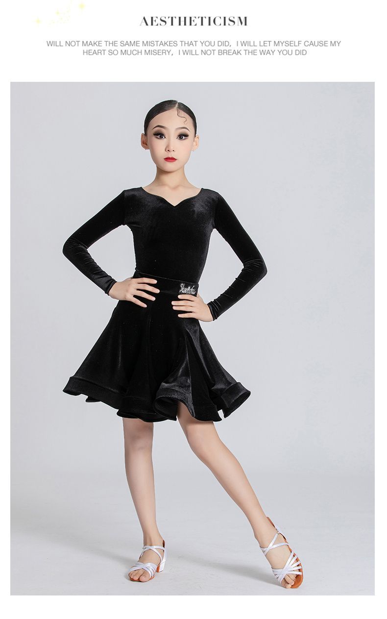 Элегантный костюм для латинских танцев для девочек с рисунком тушью на осень и зиму, новая модель для детских выступлений, стандартный костюм для соревнований.