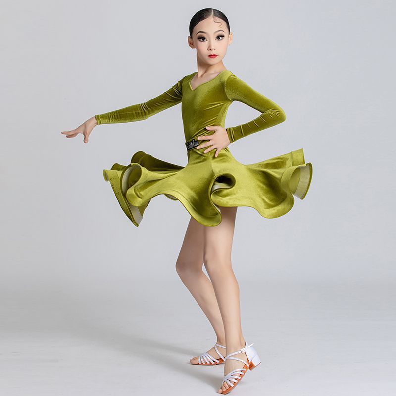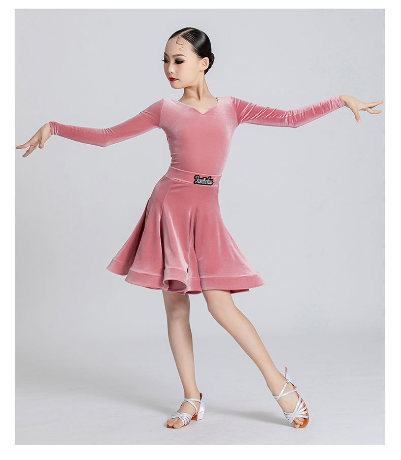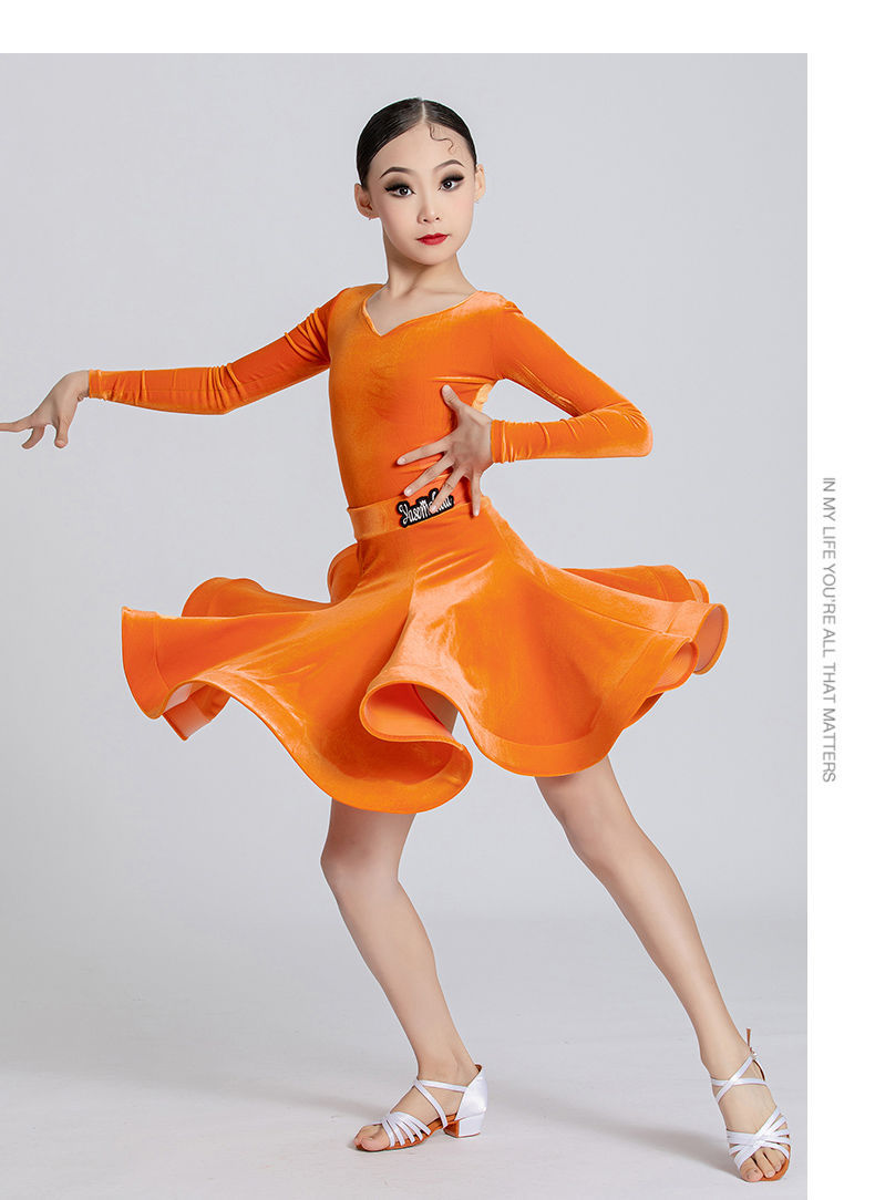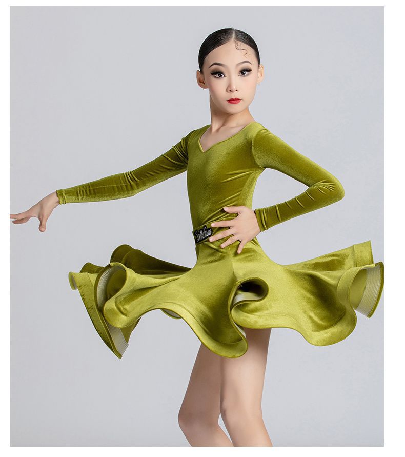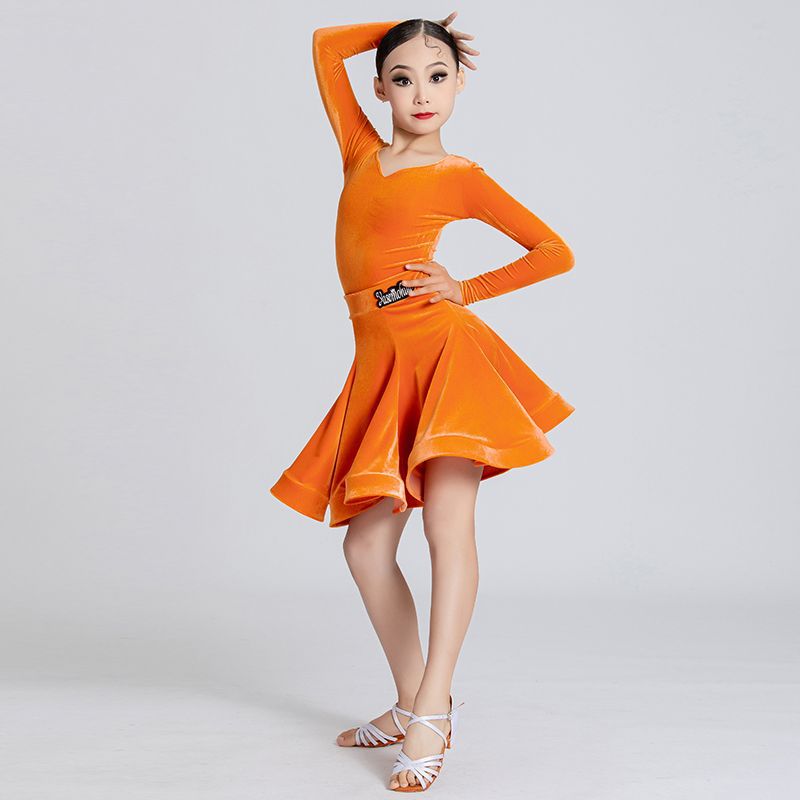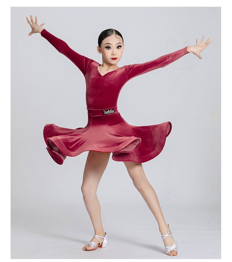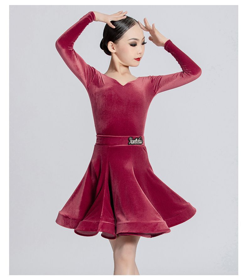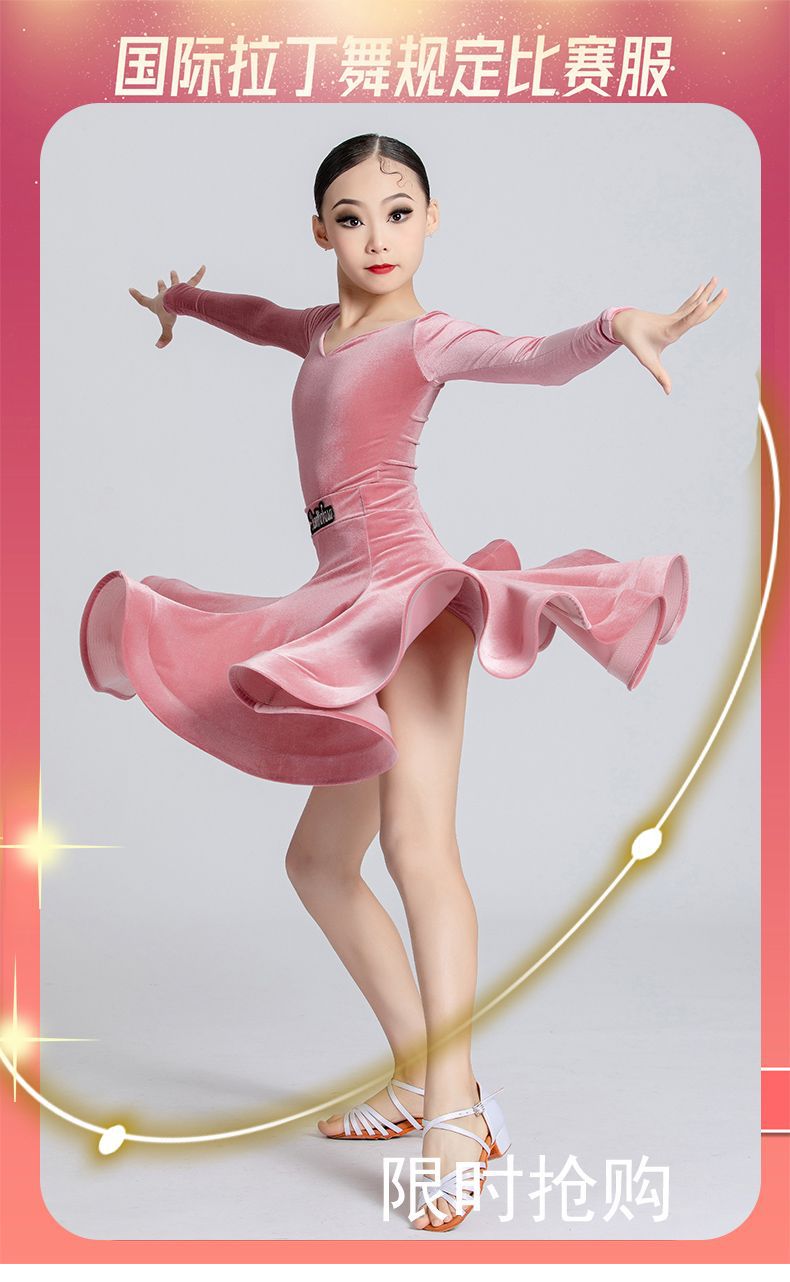 Элегантный костюм для латинских танцев для девочек с рисунком тушью на осень и зиму, новая модель для детских выступлений, стандартный костюм для соревнований.