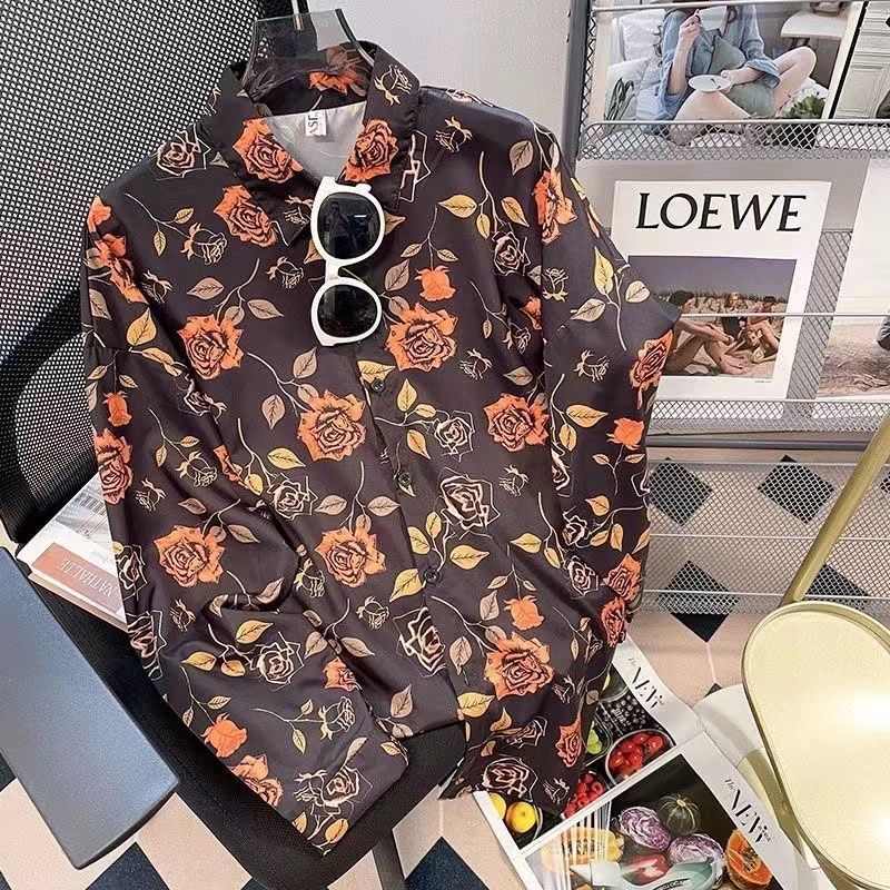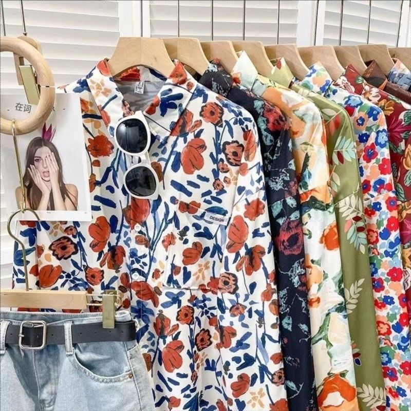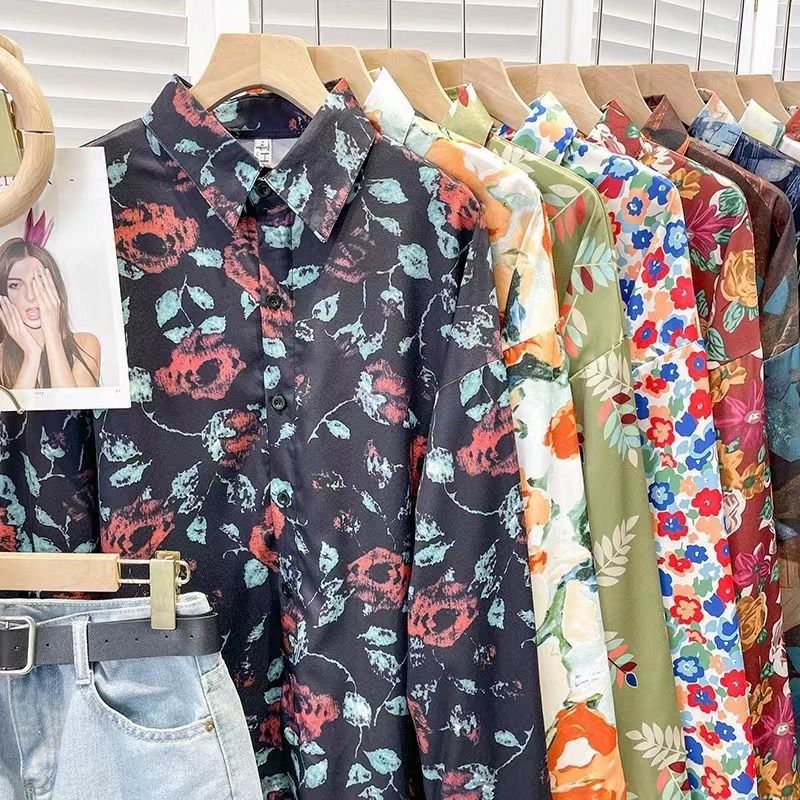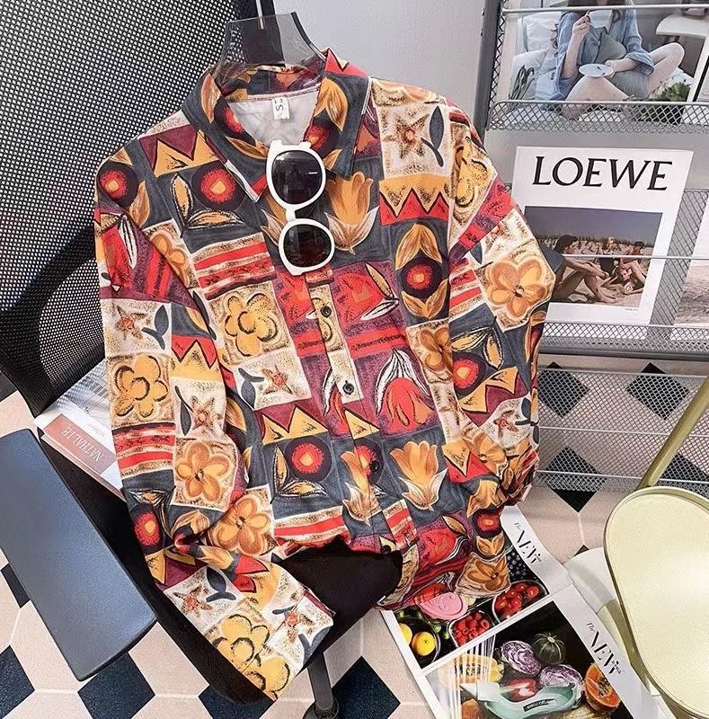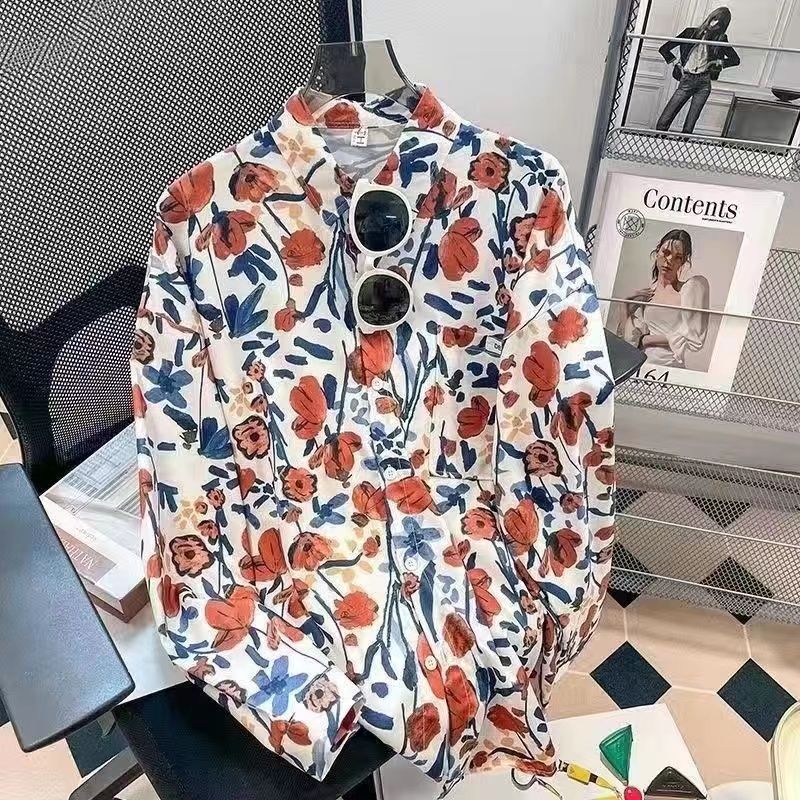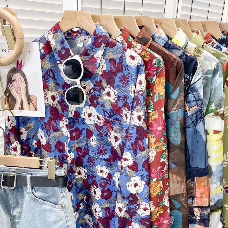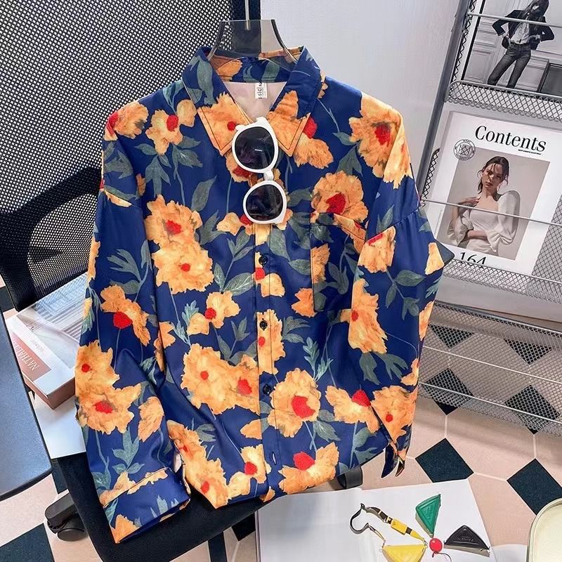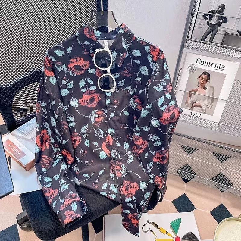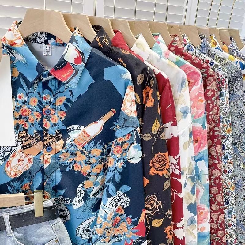 Новые рубашки с принтом для мужчин и женщин, мужские рубашки с воротником-поло в стиле ретро с цветочным принтом, свободные топы с длинными рукавами для похудения.