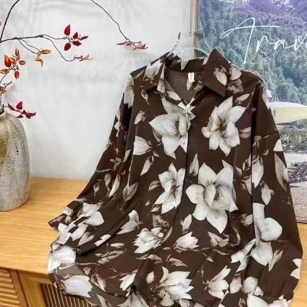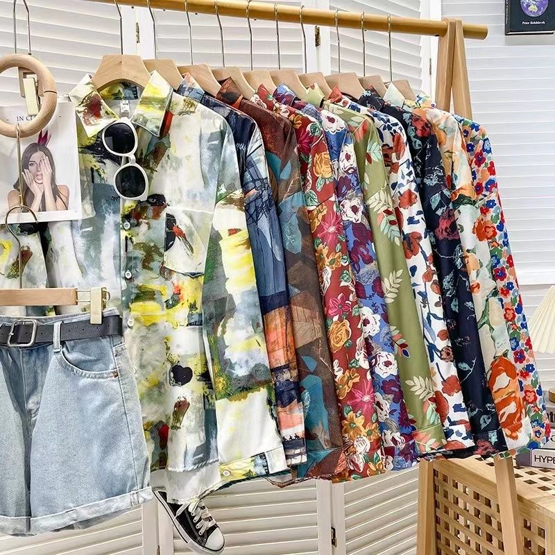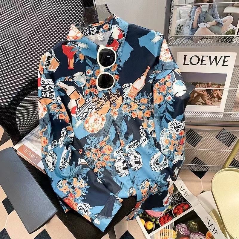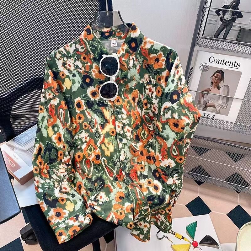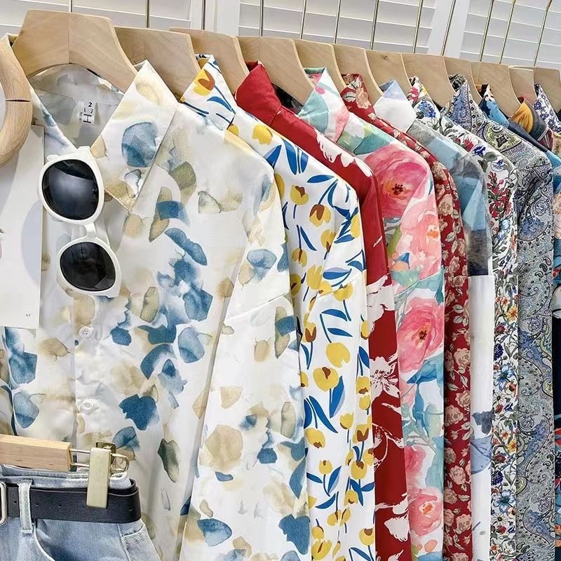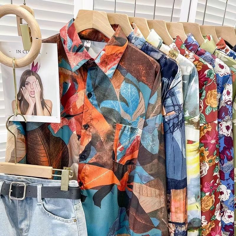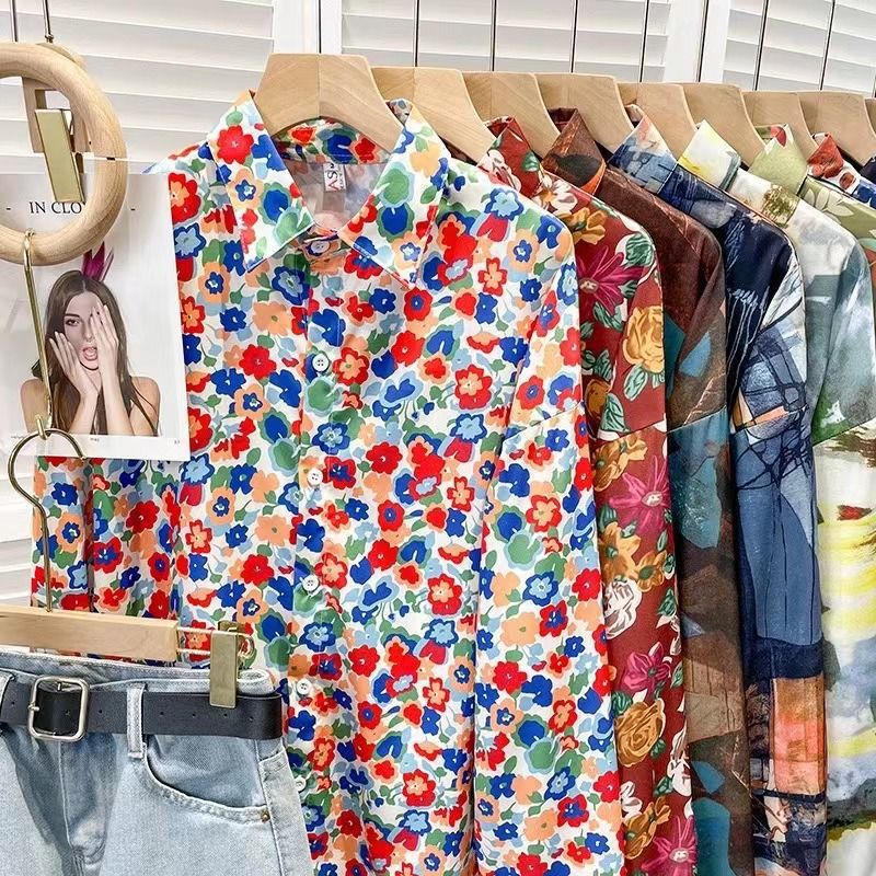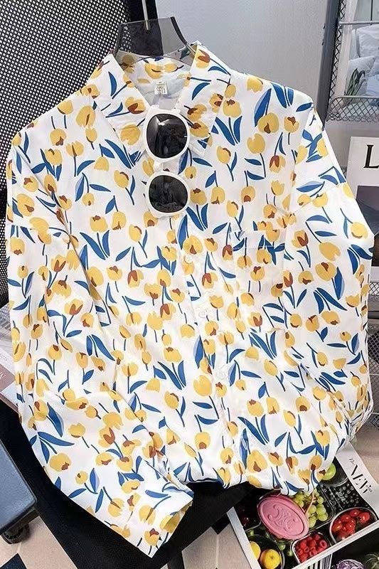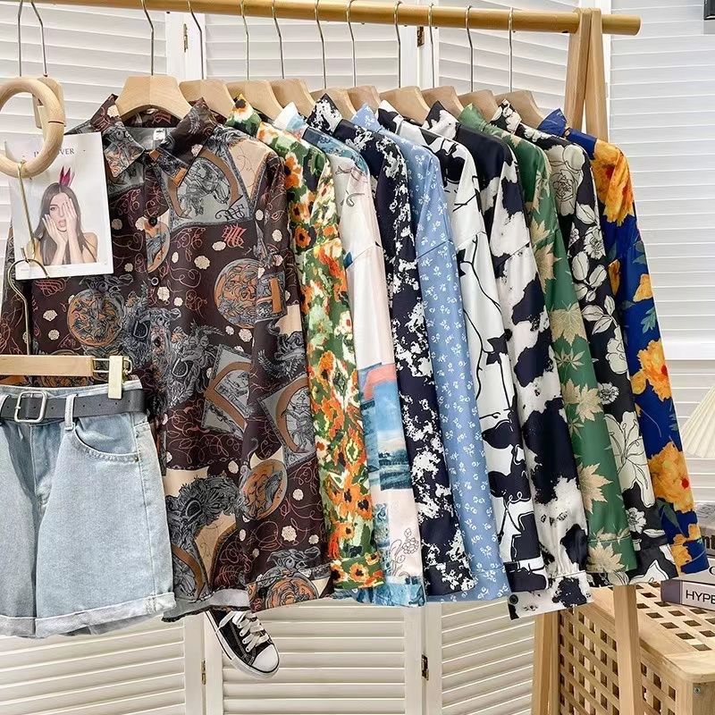 Новые рубашки с принтом для мужчин и женщин, мужские рубашки с воротником-поло в стиле ретро с цветочным принтом, свободные топы с длинными рукавами для похудения.