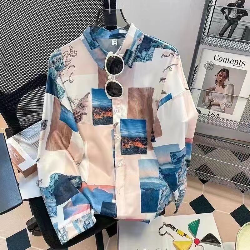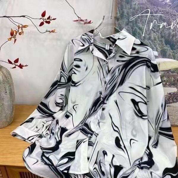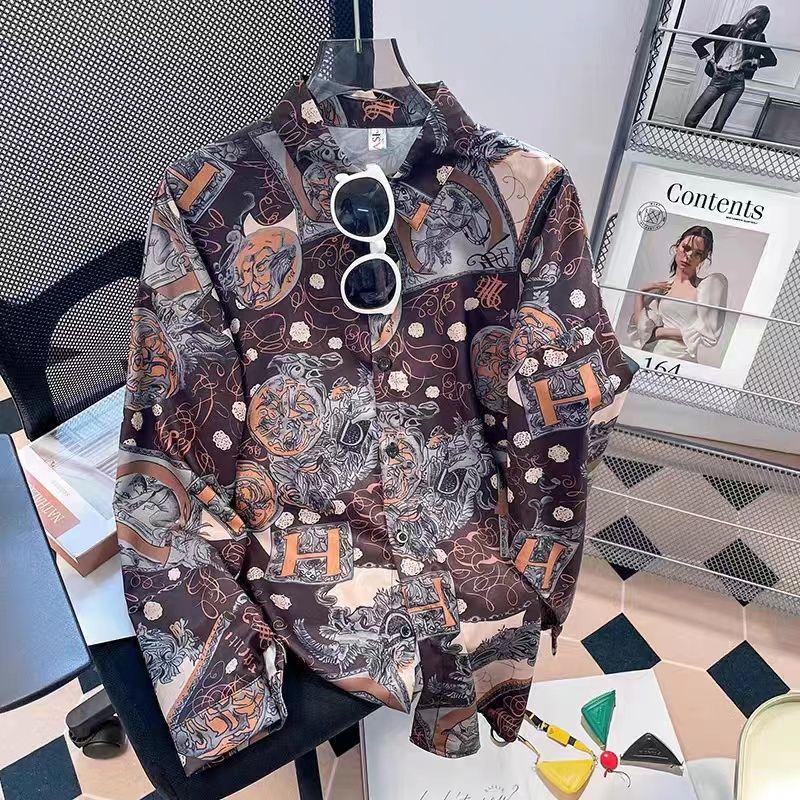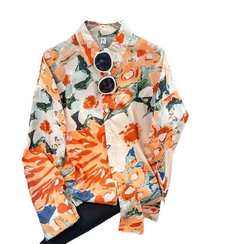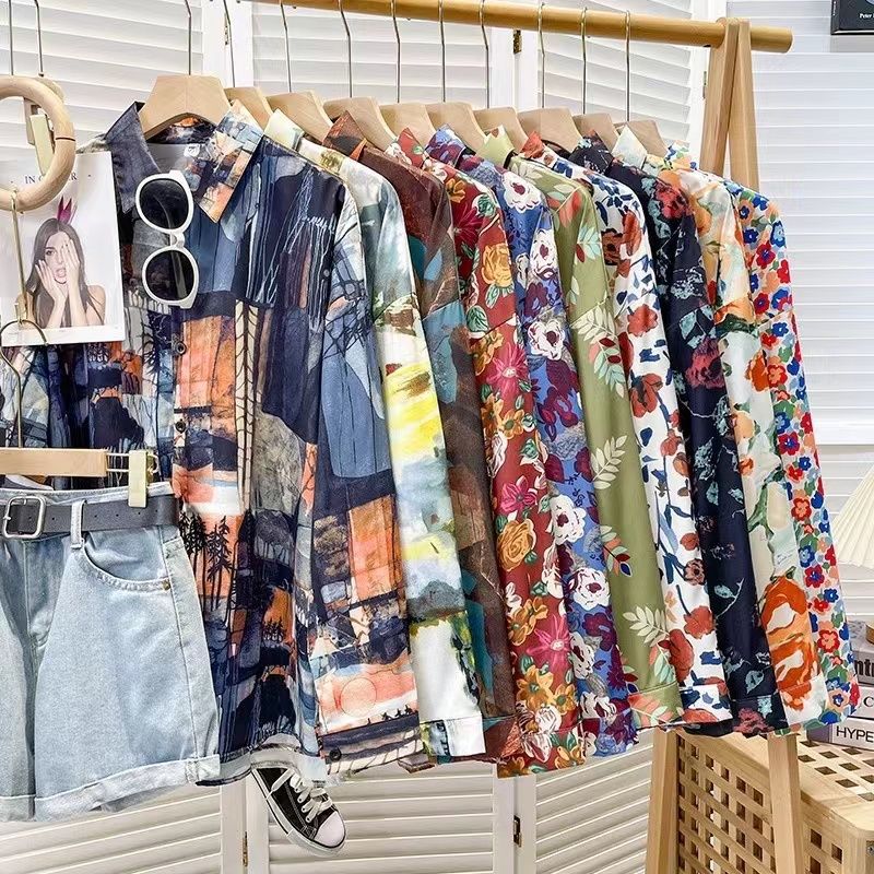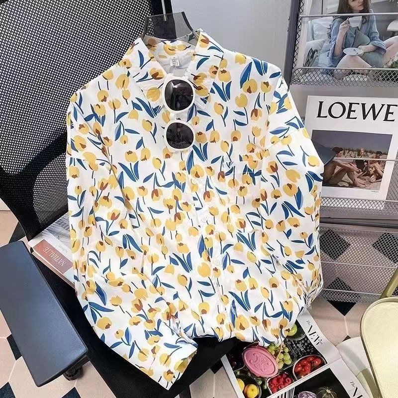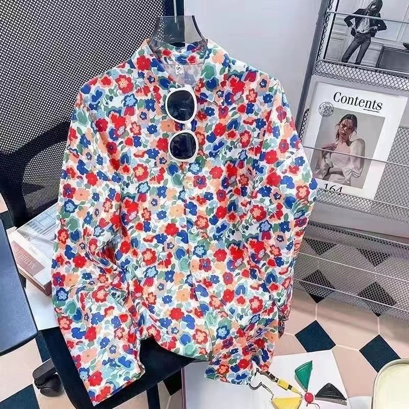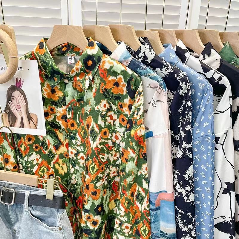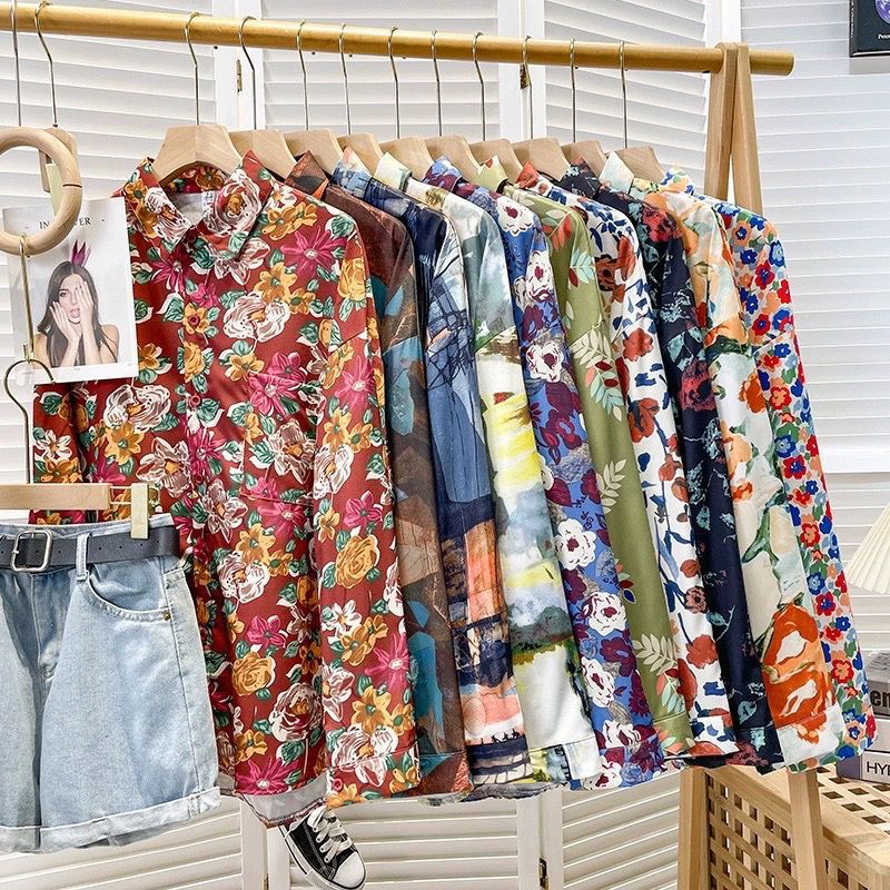 Новые рубашки с принтом для мужчин и женщин, мужские рубашки с воротником-поло в стиле ретро с цветочным принтом, свободные топы с длинными рукавами для похудения.