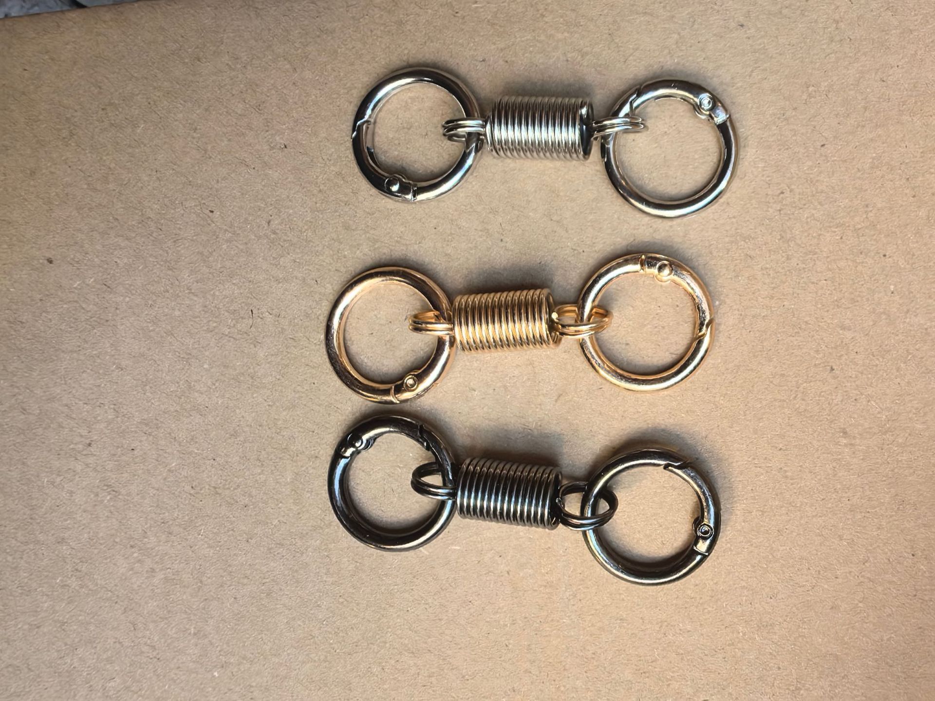 Черный (пустая упаковка + небольшой брелок) — оптовая упаковка; Белый (пустая упаковка + небольшой брелок) — оптовая упаковка; Черный + белый (2 пустых пакета + 2 маленьких брелока); Черный (пустая упаковка + большой брелок) — оптовая упаковка; Белый (пустая упаковка + большой брелок) — оптовая упаковка; Черный (пустая упаковка, без брелока) — оптовая упаковка; Белый (пустая упаковка, без брелока) — оптовая упаковка; Черный + белый (2 пустых пакета + 2 больших брелока); Белый наряд с маленькой пряжкой телесного цвета; Черный наряд с маленькой пряжкой телесного цвета; Белый наряд с крупной пряжкой в телесном цвете; Черный наряд с крупной пряжкой телесного цвета; Брелок с двойной спиральной пружиной, отделка цвета «оружейная сталь», оптовая упаковка; Брелок с двойной спиральной пружиной, серебристый, оптовая упаковка; Брелок с двойной спиральной пружиной, золотое покрытие, оптовая упаковка; Черная сумка (пустая сумка + двойной пружинный брелок с серебряной петлей) - оптовая упаковка; Белая сумка (пустая сумка + двойной пружинный брелок с серебряной петлей) - оптовая упаковка