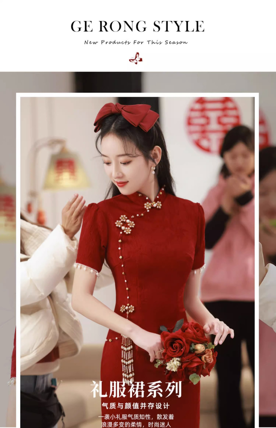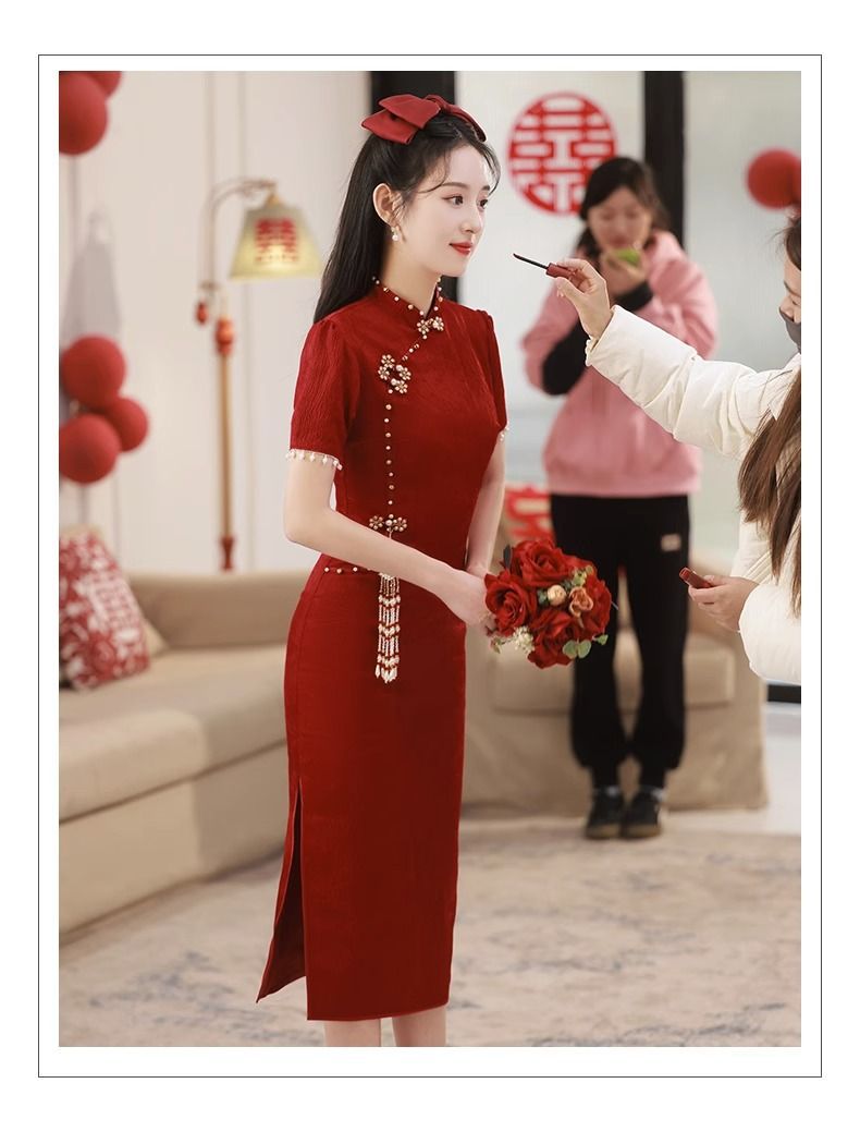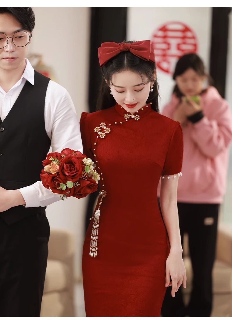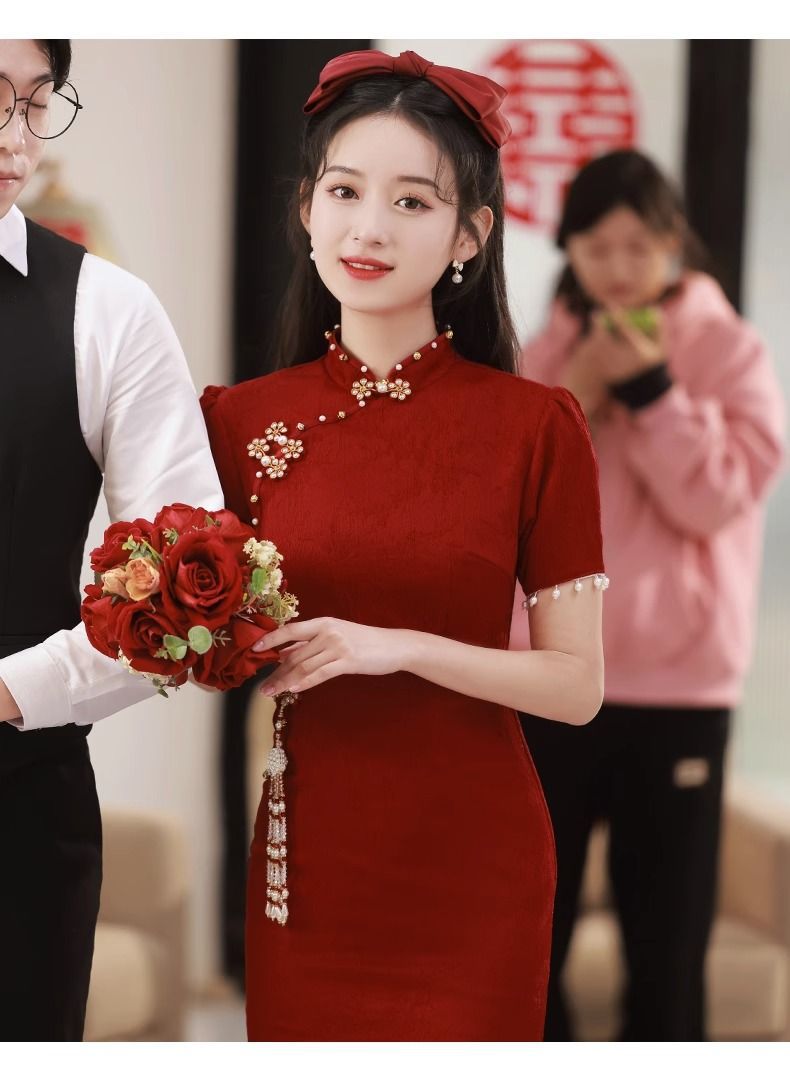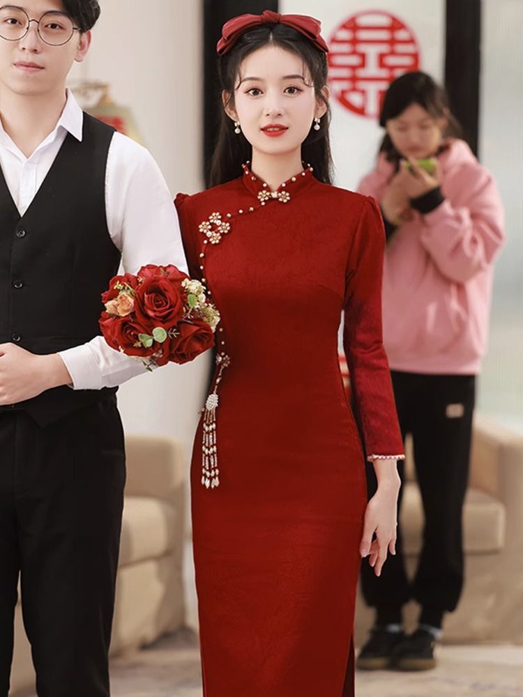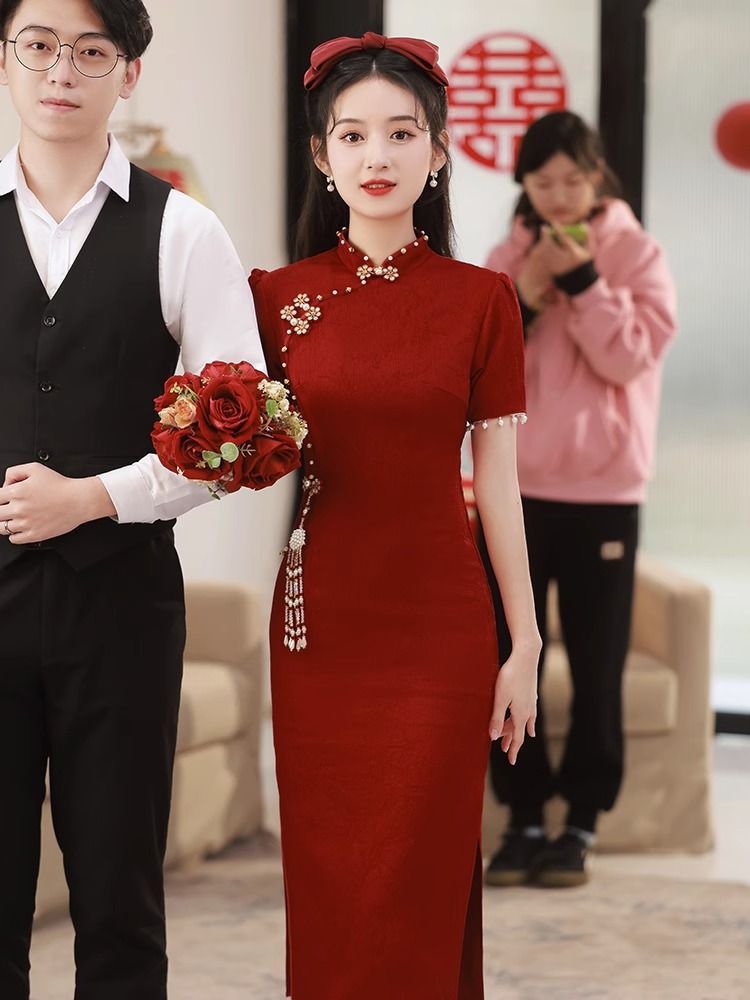 Новое свадебное платье в китайском стиле для помолвки и торжеств, платье невесты для встречи с родственниками, длинное платье, чонсам, элегантное и изящное.