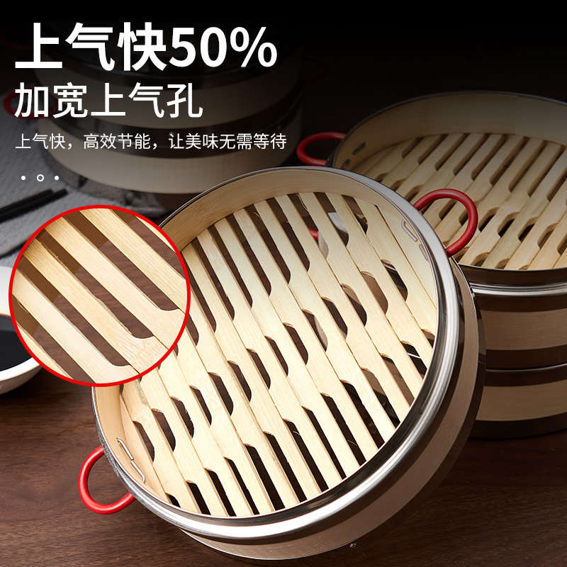竹子编家用竹制点心蒸格不锈钢竹蒸屉蒸包子笼笼屉商用小笼包蒸笼