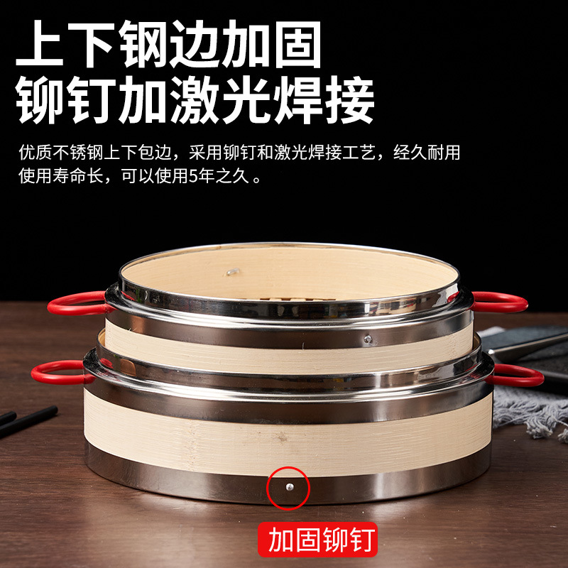 Маленькая бамбуковая клетка для пельменей на пару с кромкой из стали 304, 18 см; Край из стали 304, бамбуковая крышка Сяолунбао, 18 см.; Маленькая бамбуковая клетка для пельменей на пару с кромкой из стали 304, 20 см; Край из стали 304, бамбуковая крышка Сяолунбао, 20 см.