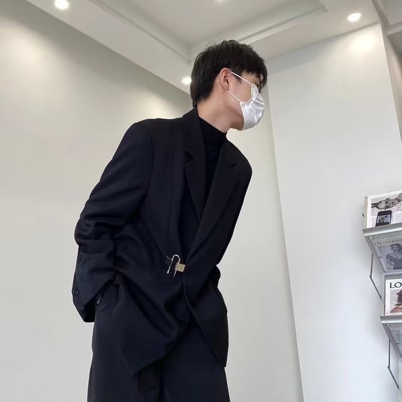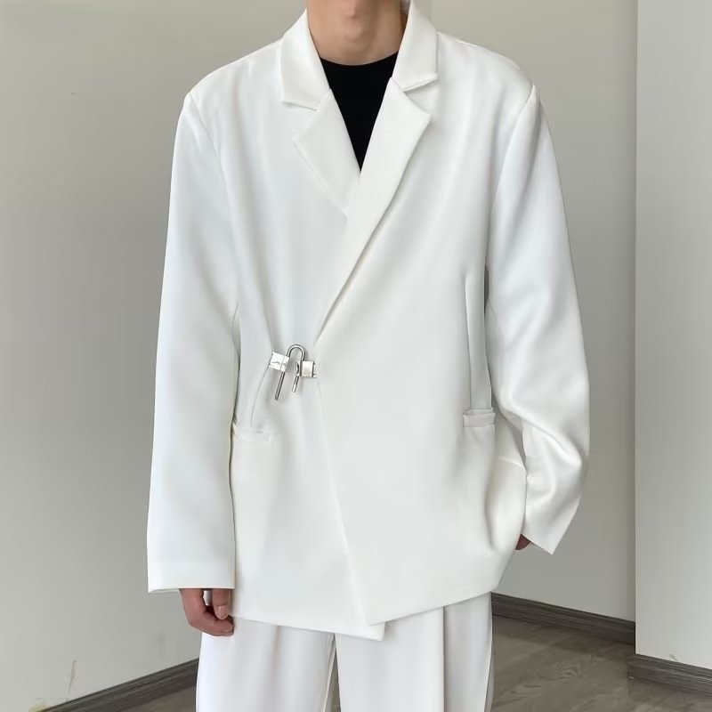 Уникальный оригинальный мужской блейзер с металлическими декоративными булавками, элитный весенний повседневный костюм, белый модный бренд.