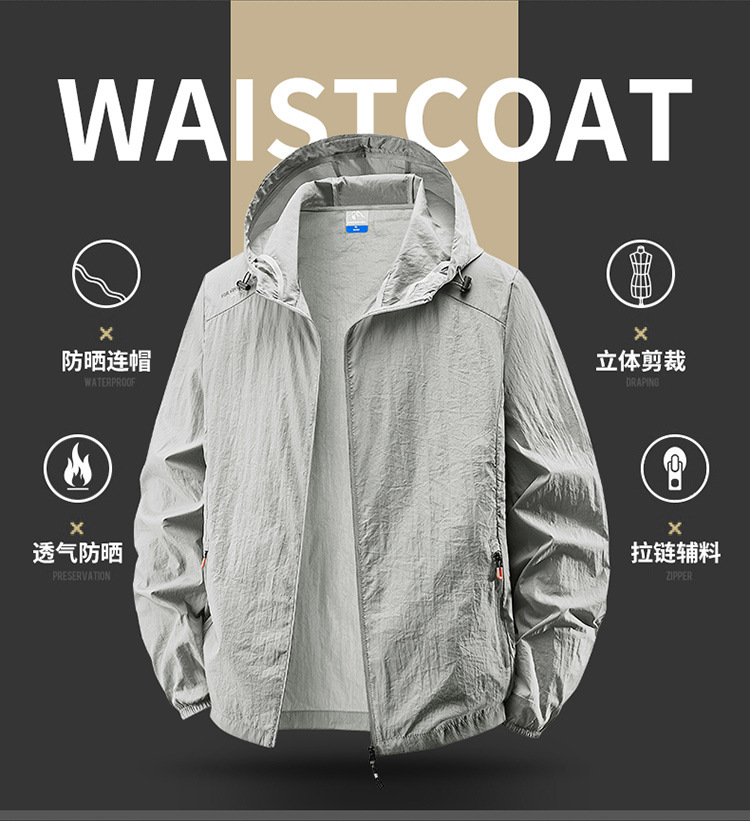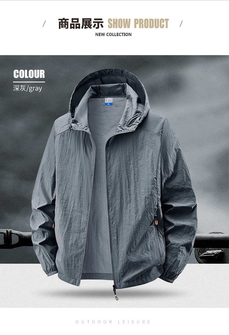 Ледяной шелк солнцезащитный крем для мужчин летом тонкий простой цвет на открытом воздухе свободный большой размер с капюшоном солнцезащитный крем куртка