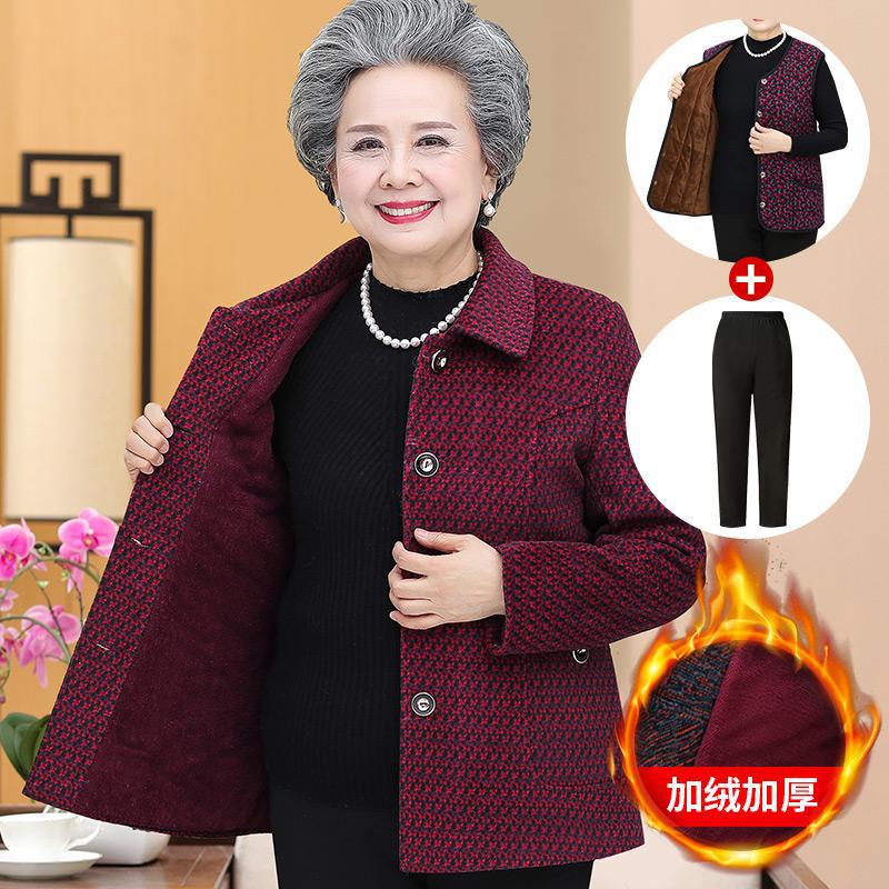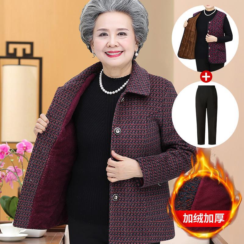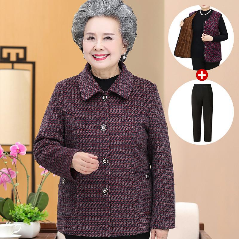 Верхняя одежда бабушки, весна и осень, 60 лет, 70 лет, женщина 80 лет, зимняя одежда среднего и пожилого возраста, женская бархатная верхняя одежда из утолщенного хлопка, верхняя одежда для мамы.