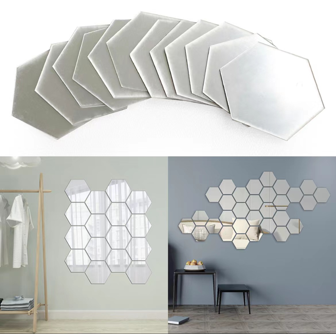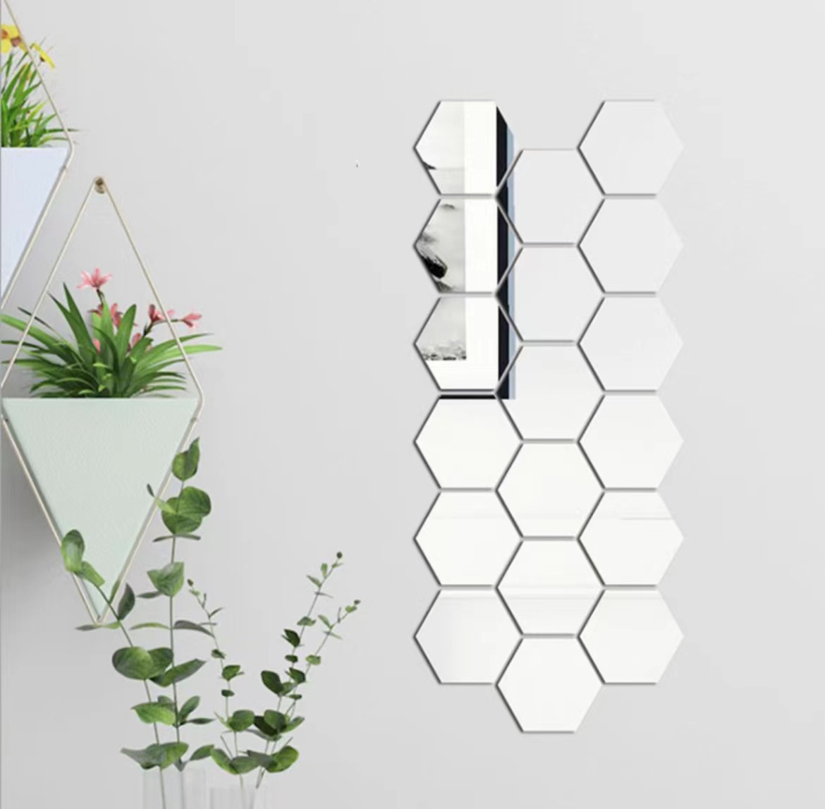 Экологически чистые акриловые наклейки на стену, 3D стерео декоративные зеркальные наклейки, трансграничные популярные асимметричные шестиугольные зеркальные плитки