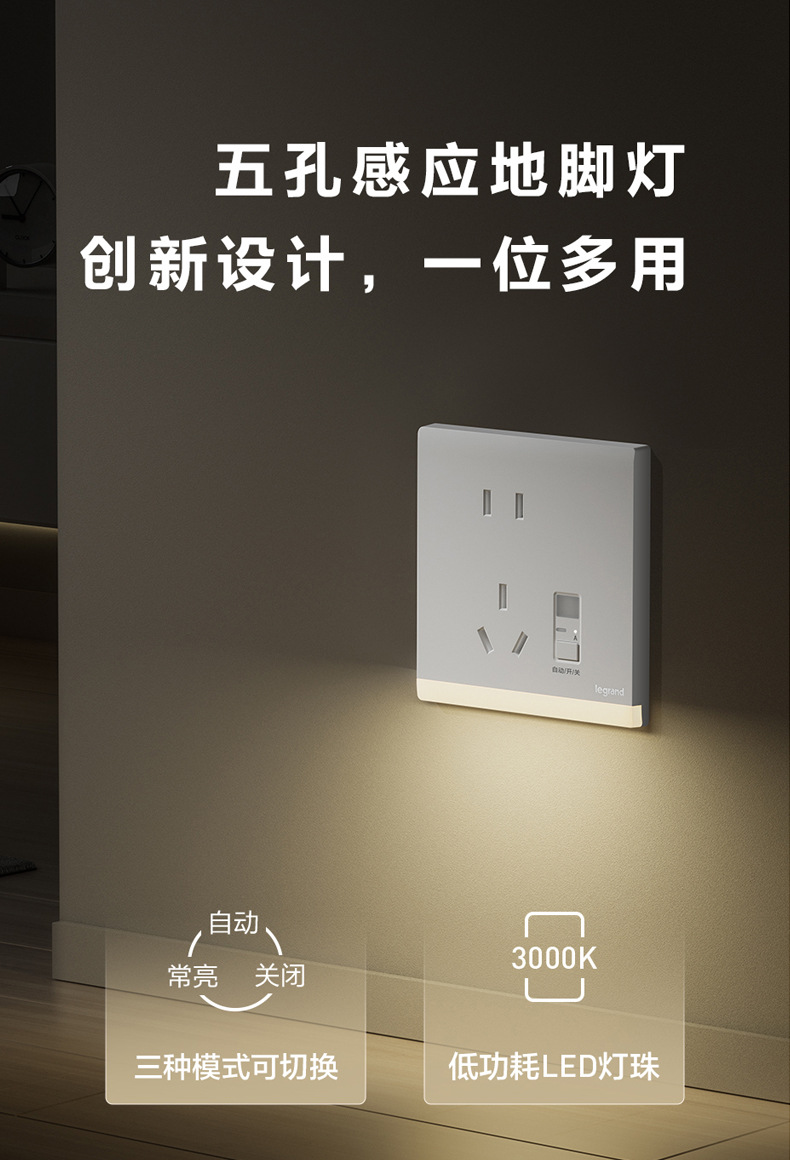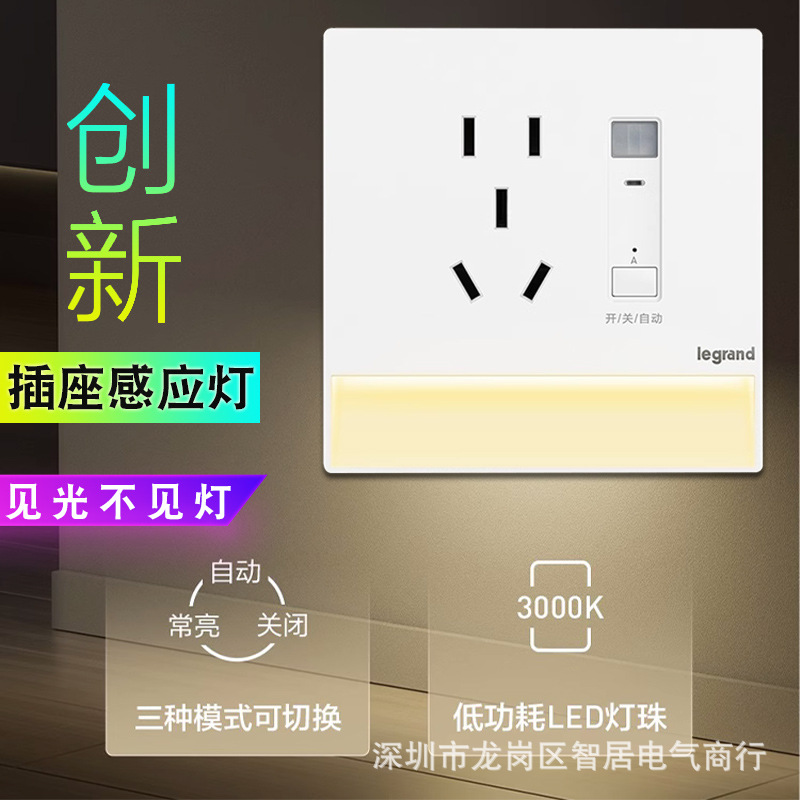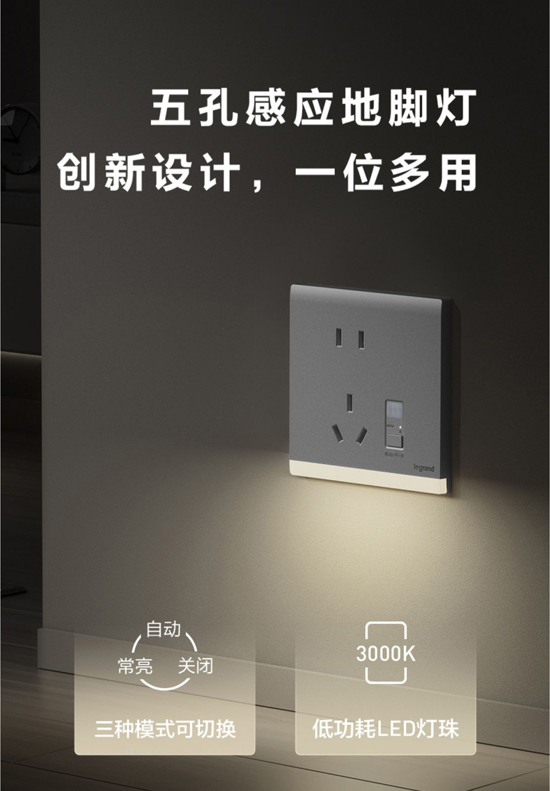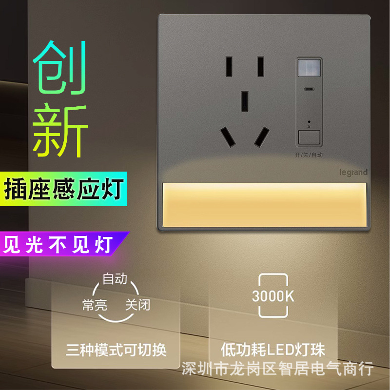 Legrand бытовой тип 86, лампа для ног с датчиком человеческого тела и вилкой с пятью отверстиями, инфракрасный встроенный ночник для лестничного коридора